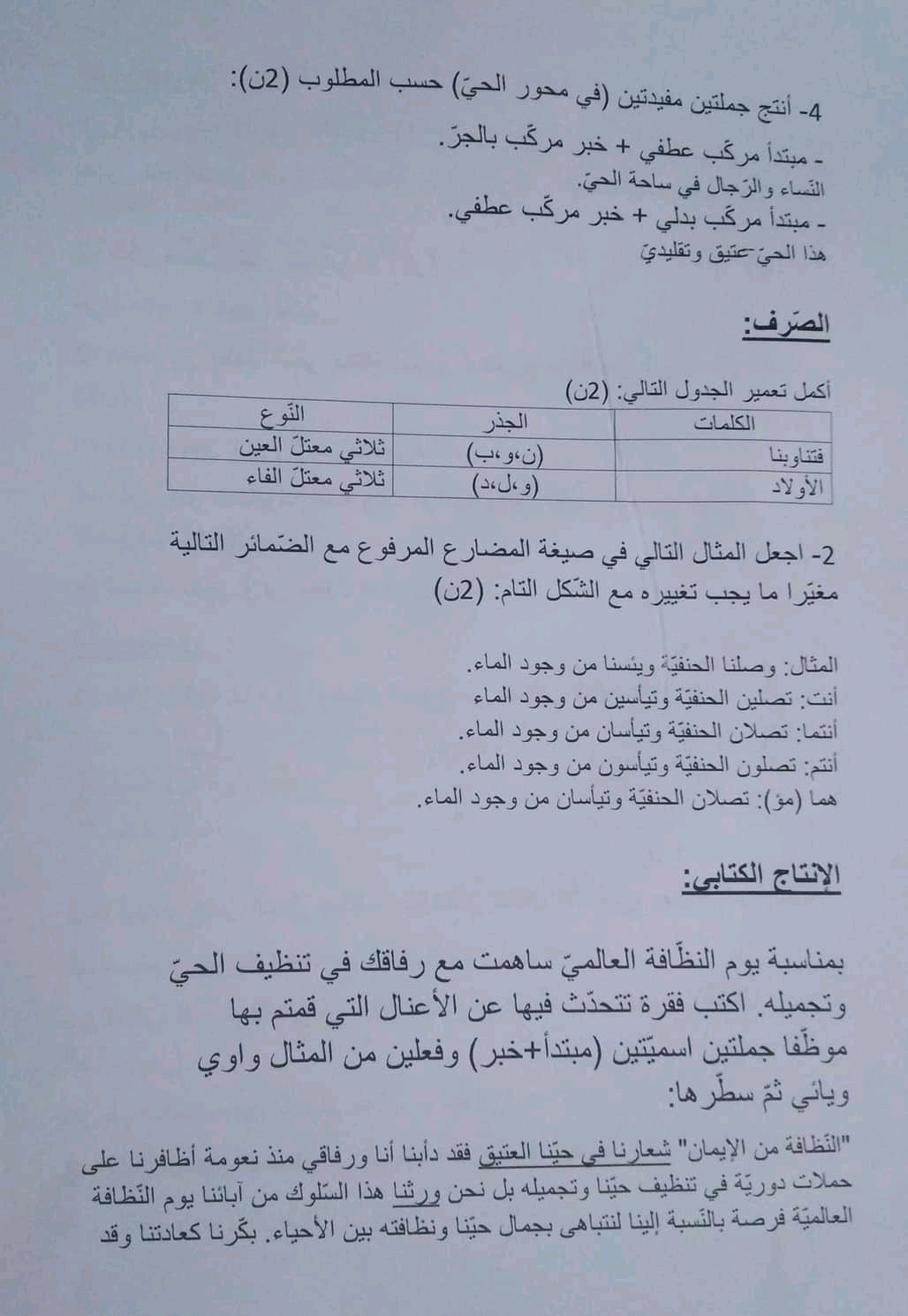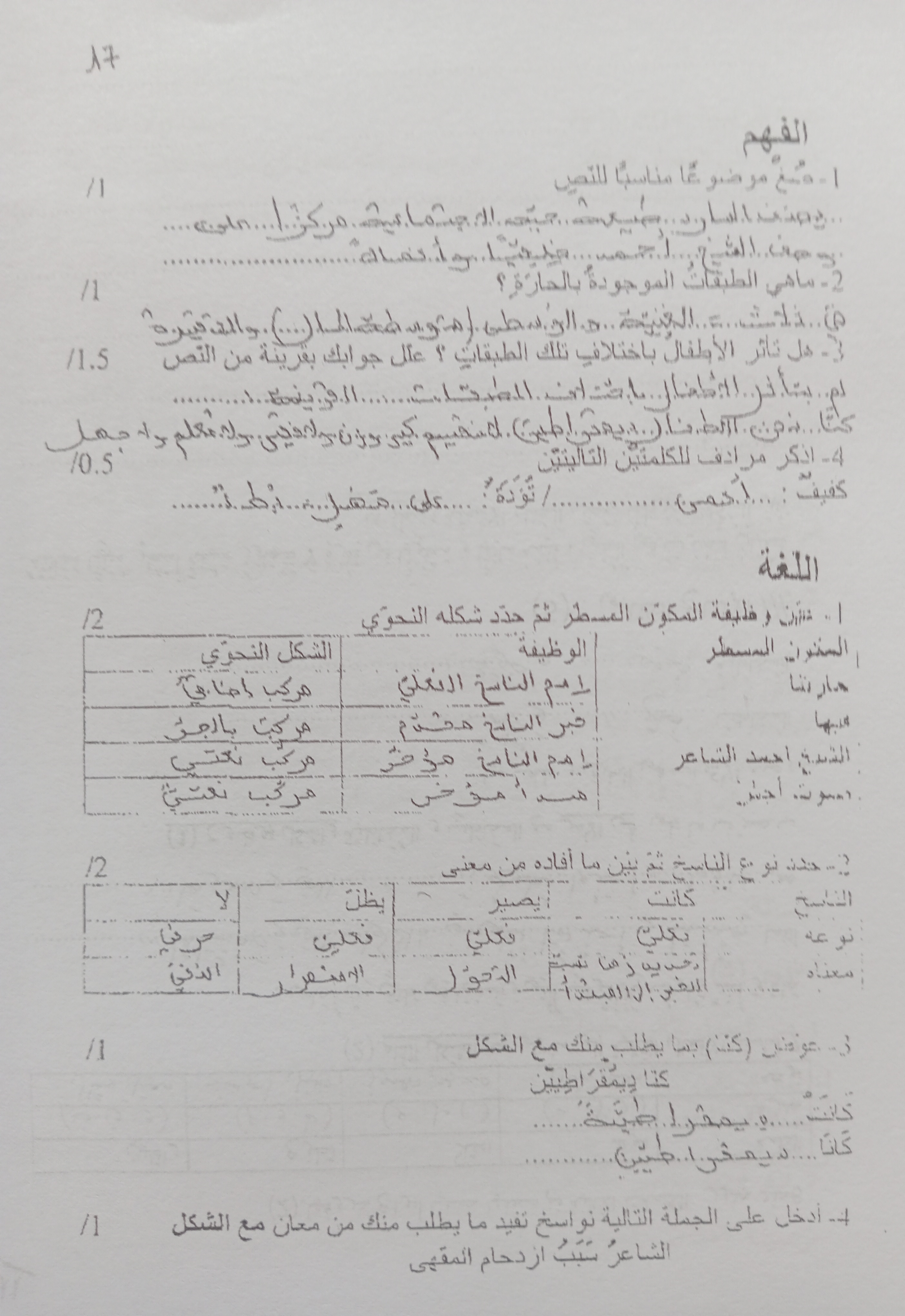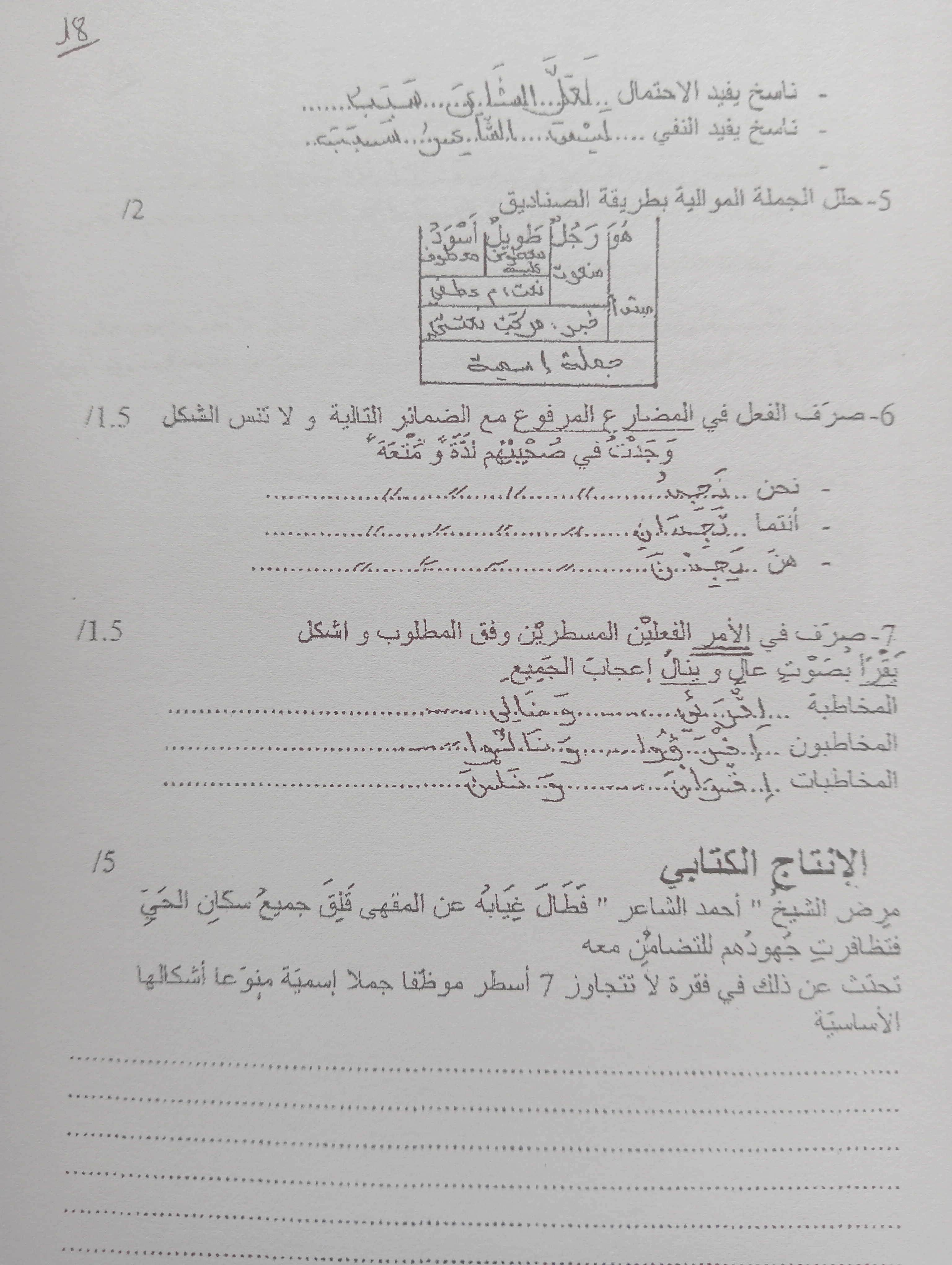 فرض مراقبة عدد 2 في مادة دراسة النص بالاصلاح