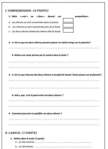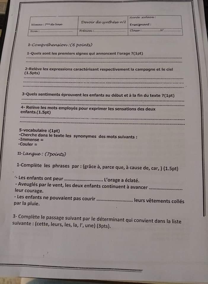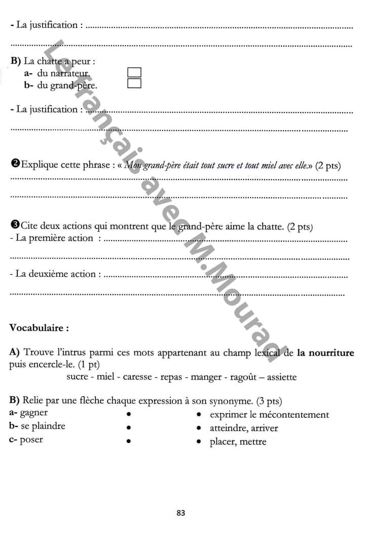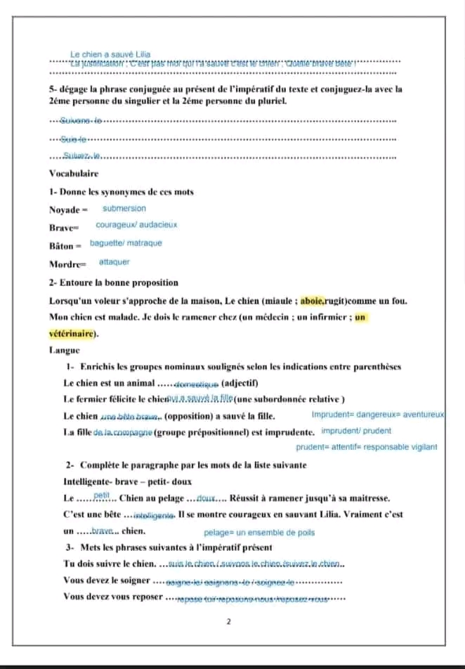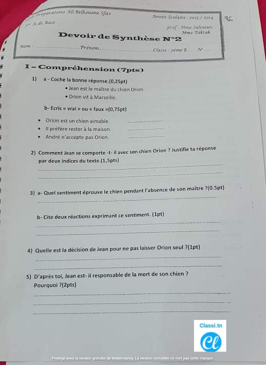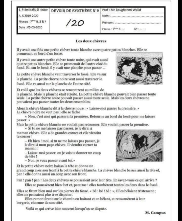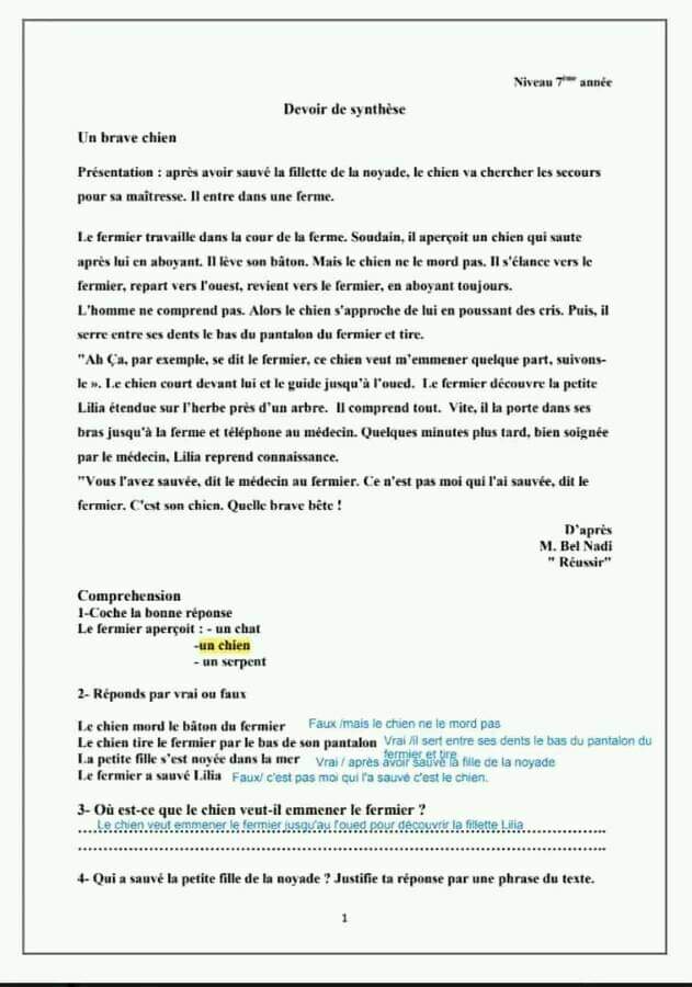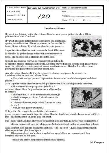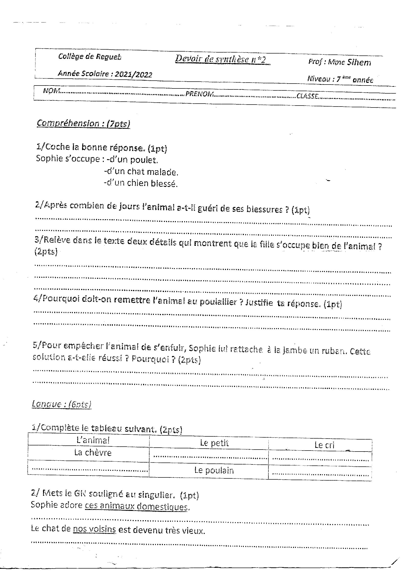 __ 7ème B__ Devoir de synthèse N°2 + corrigé __nos amis les animaux _