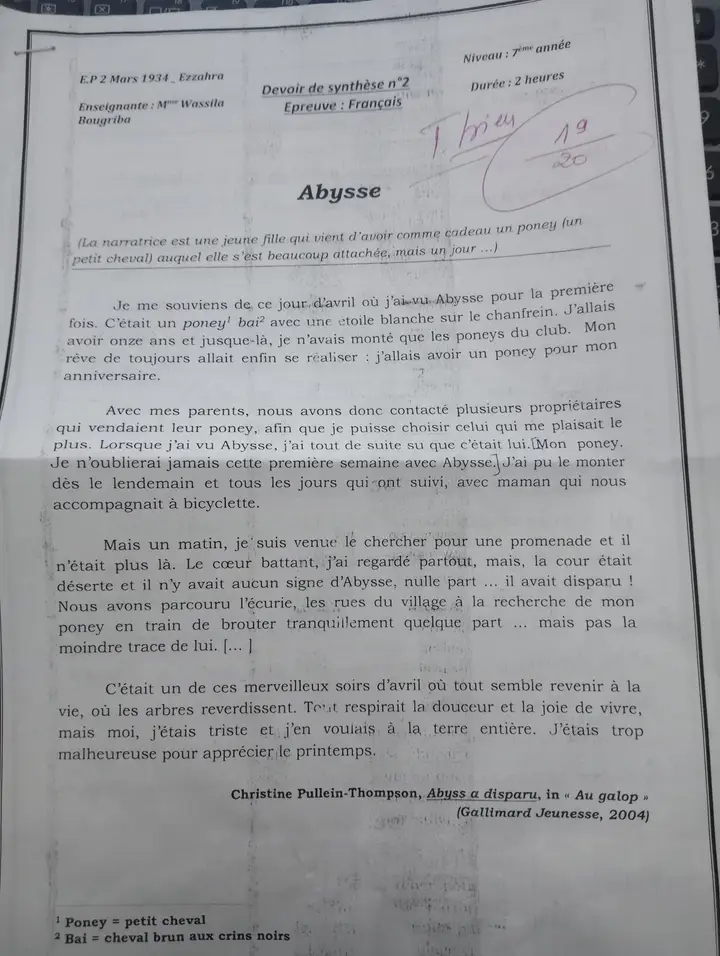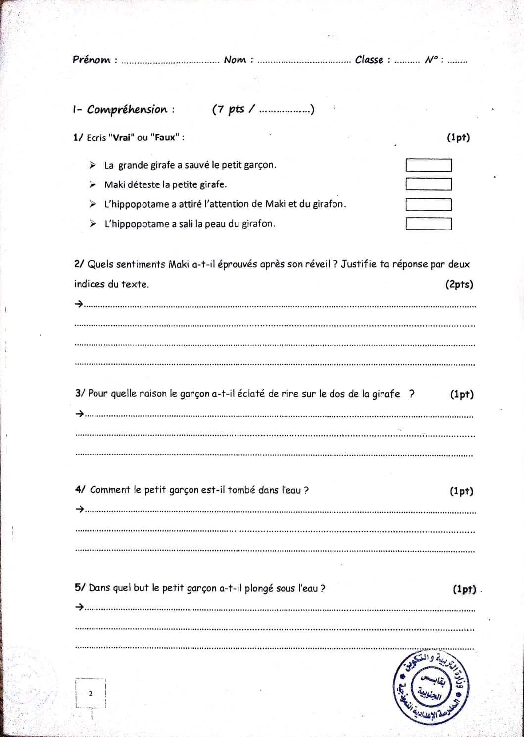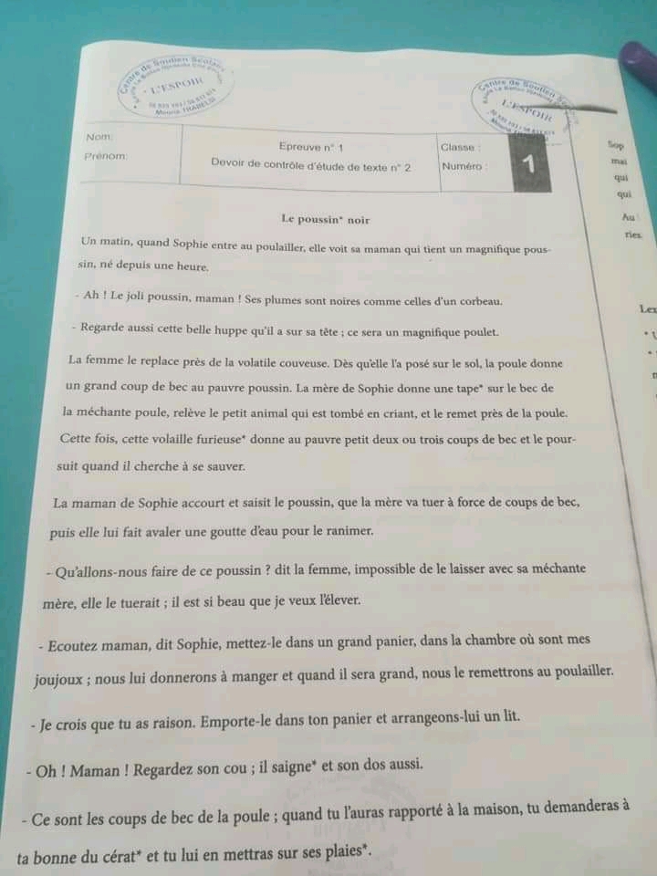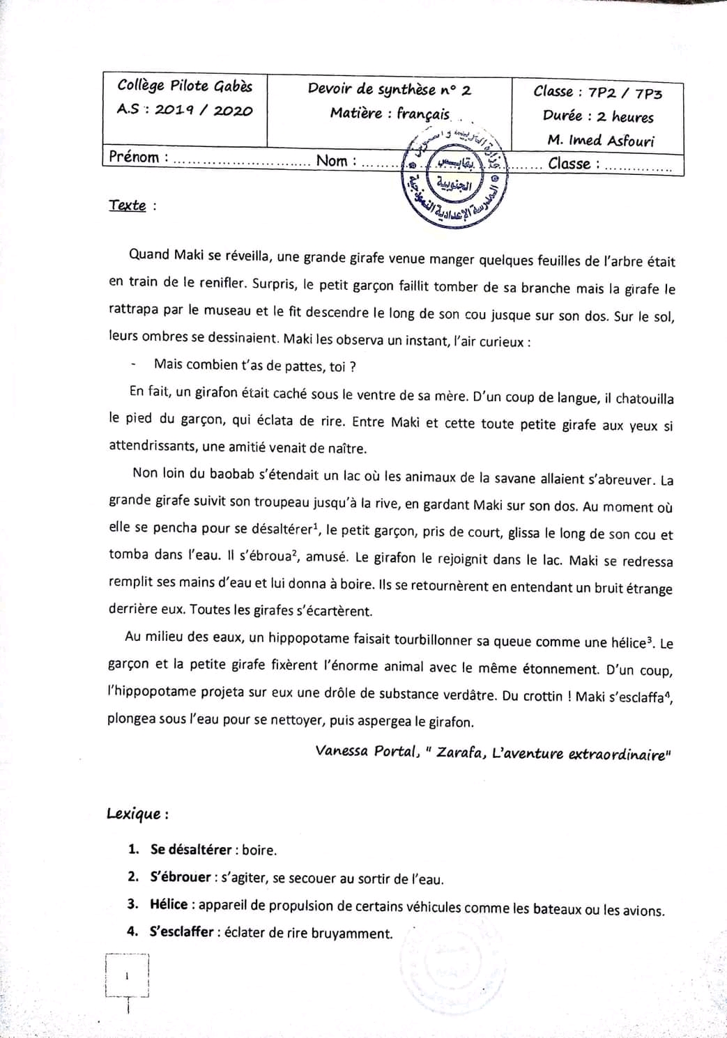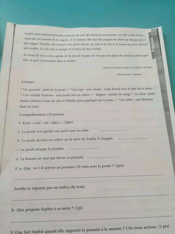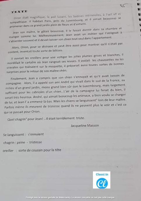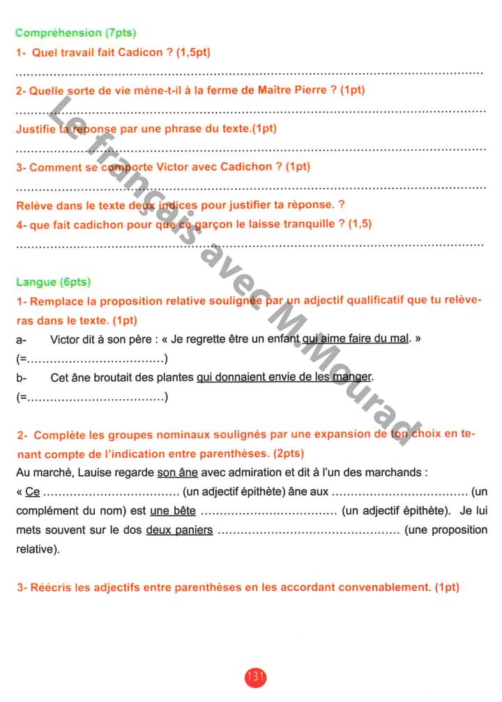 __ 7ème B__ Devoir de synthèse N°2 + corrigé __nos amis les animaux _