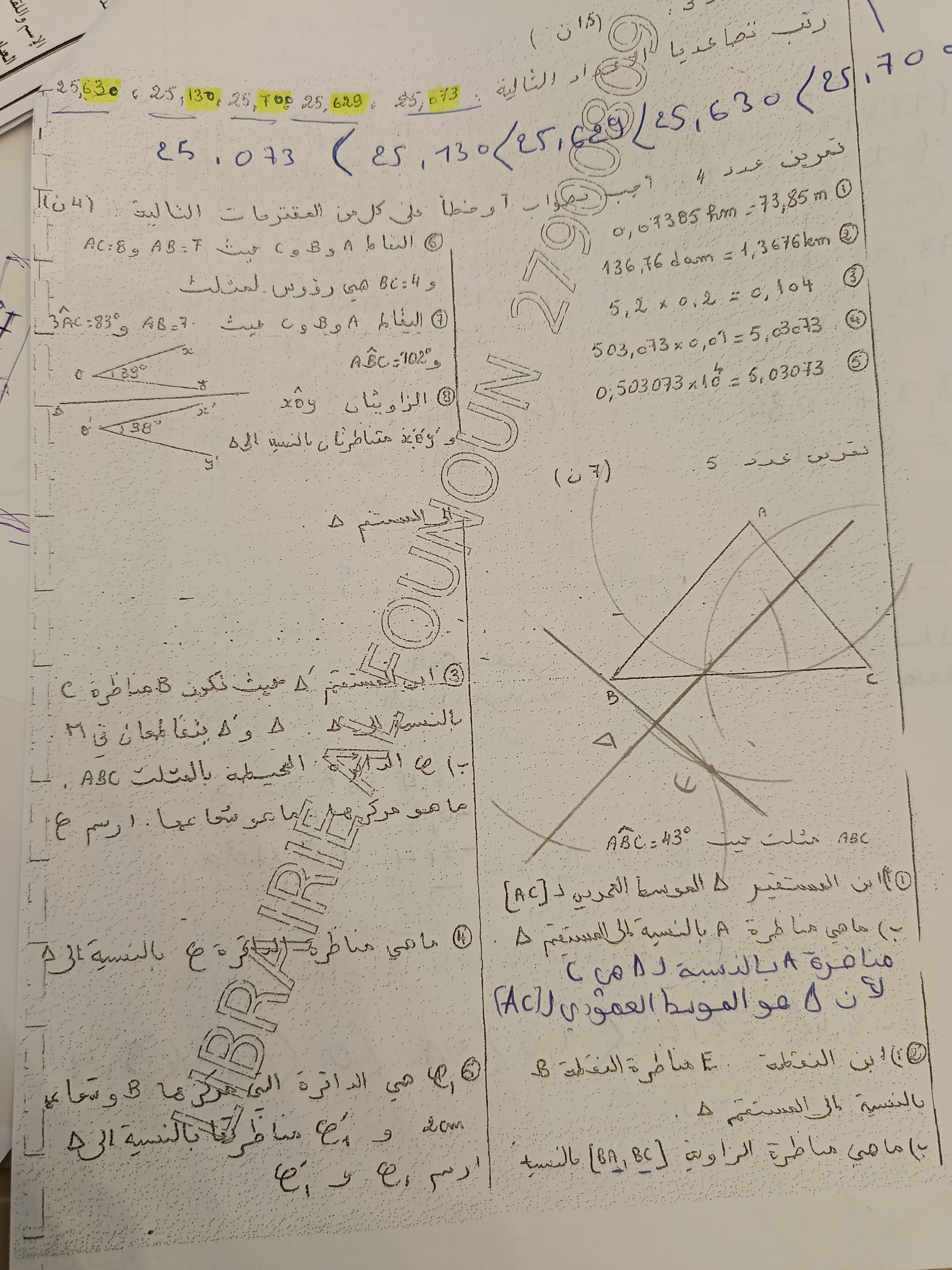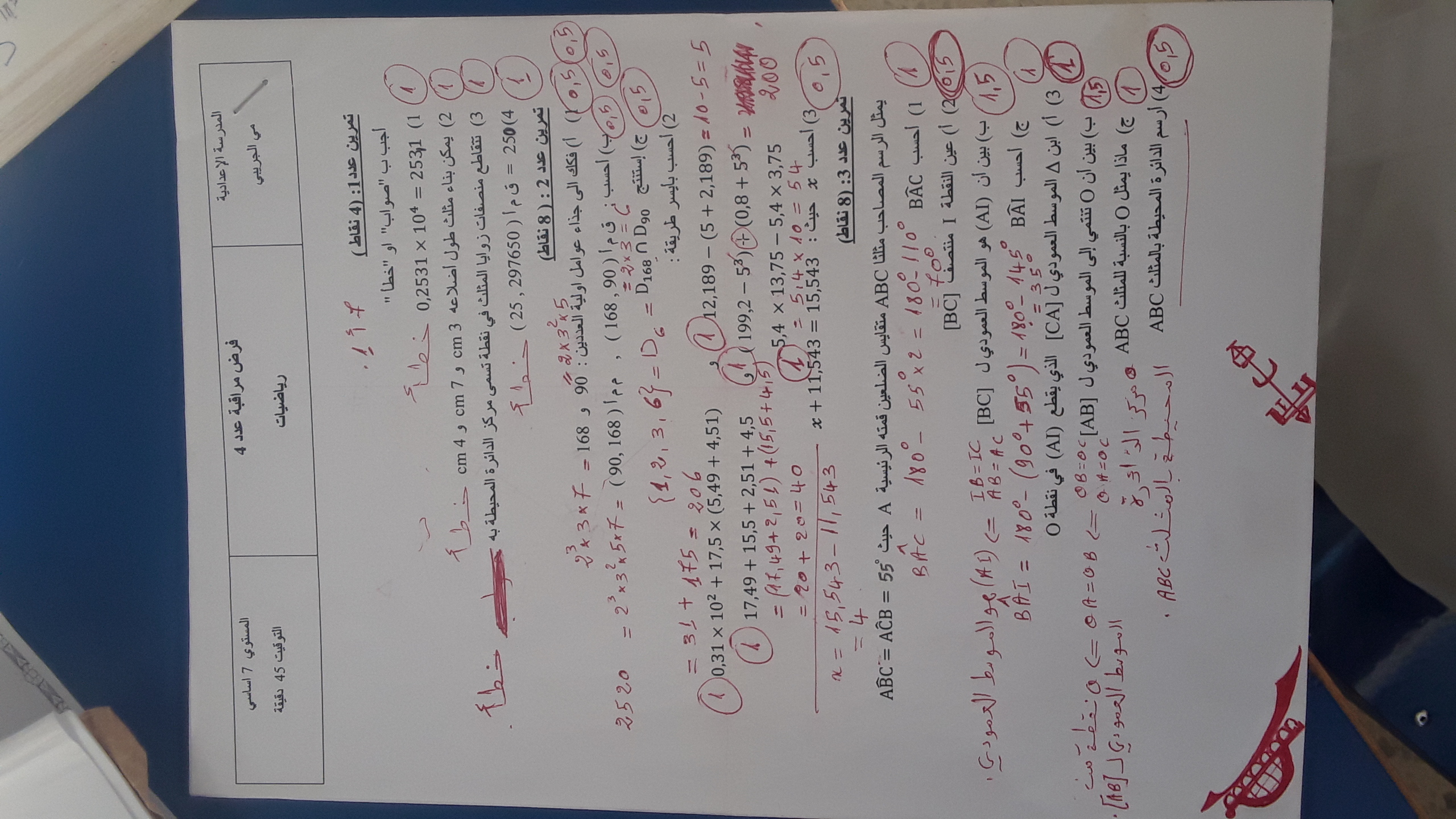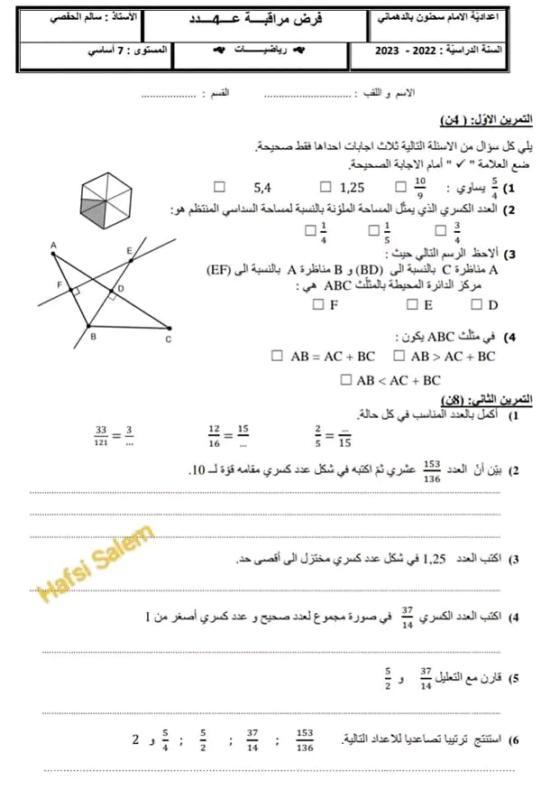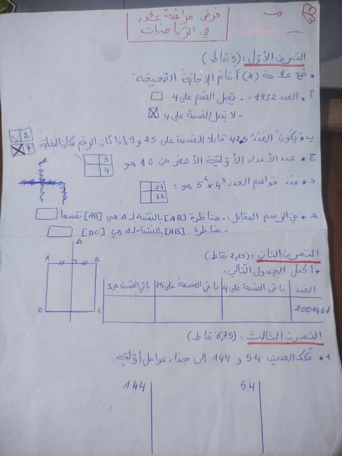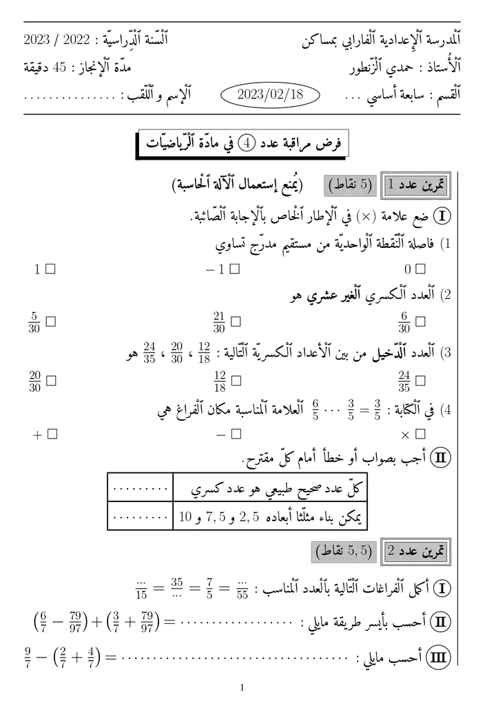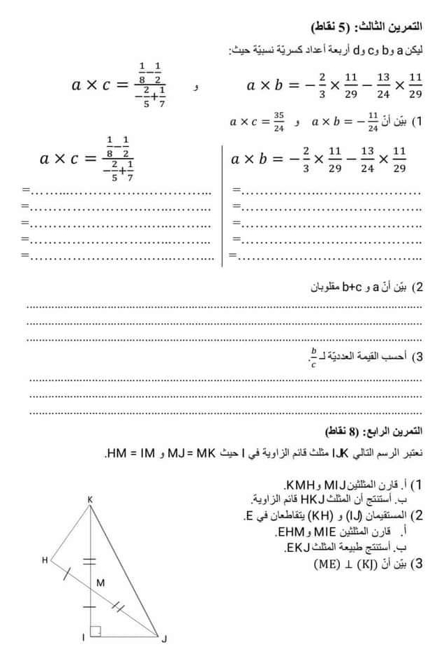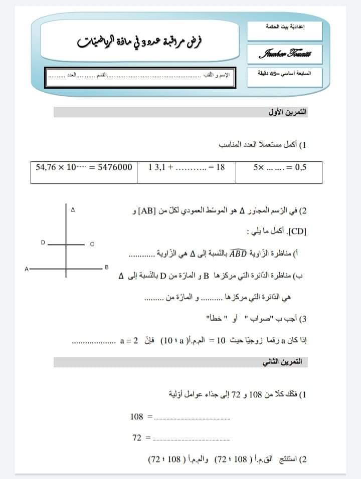 فروض مراقبة عدد 2 في مادة الرياضيات بالاصلاح