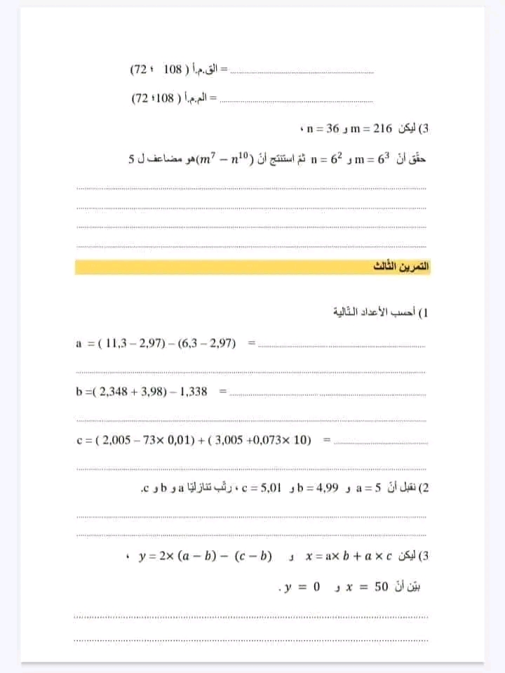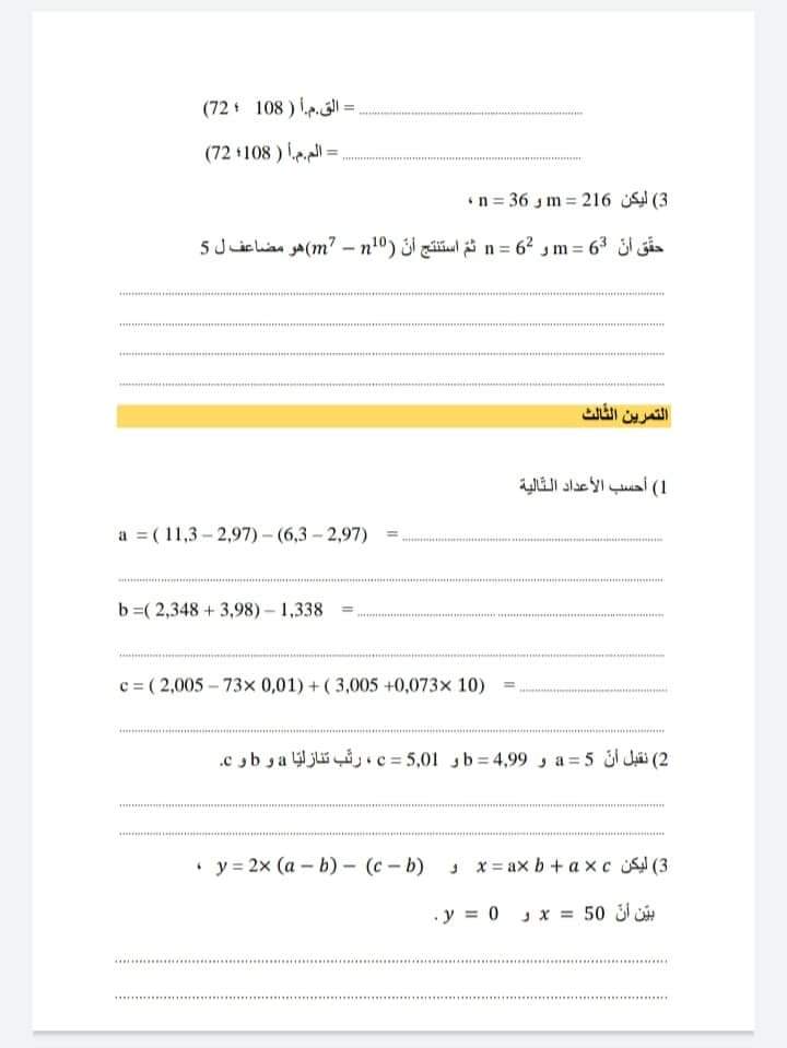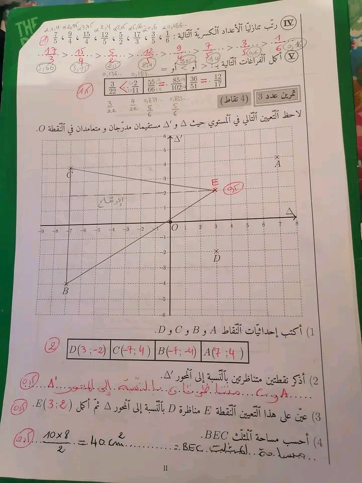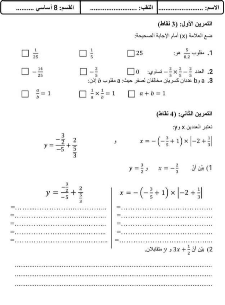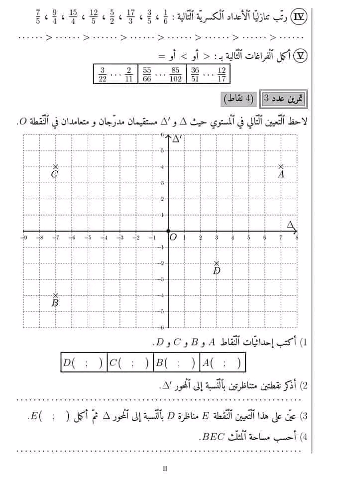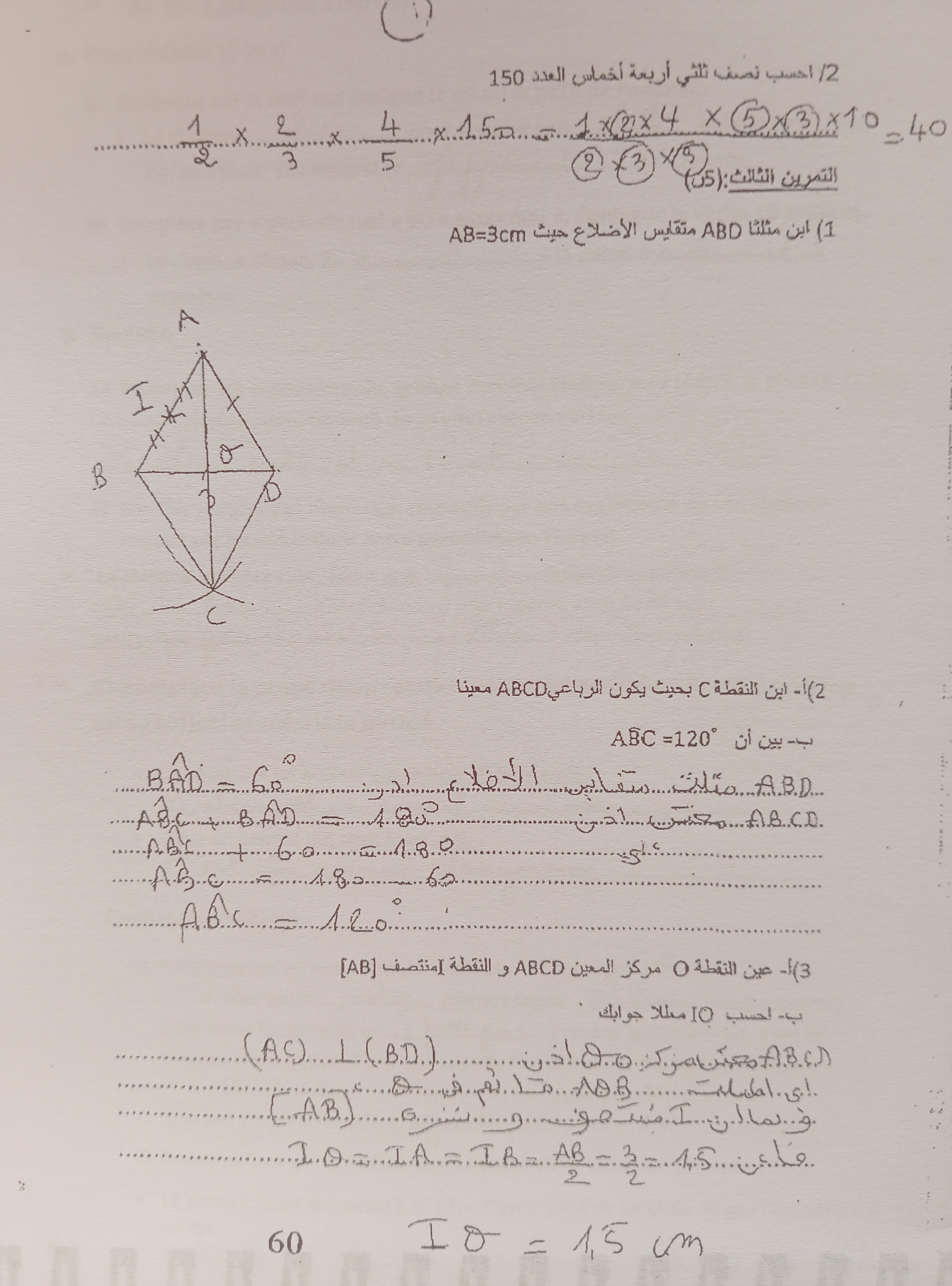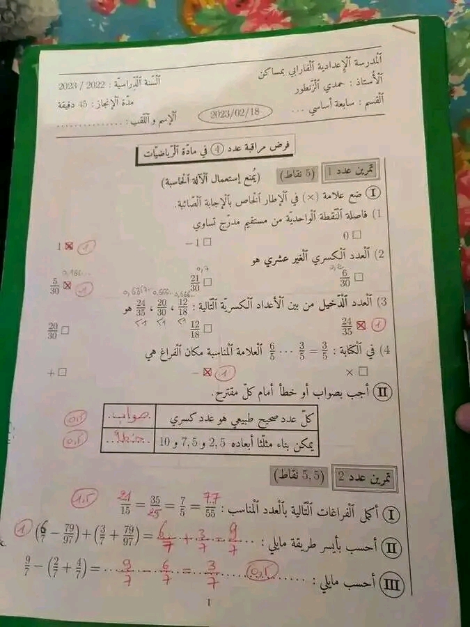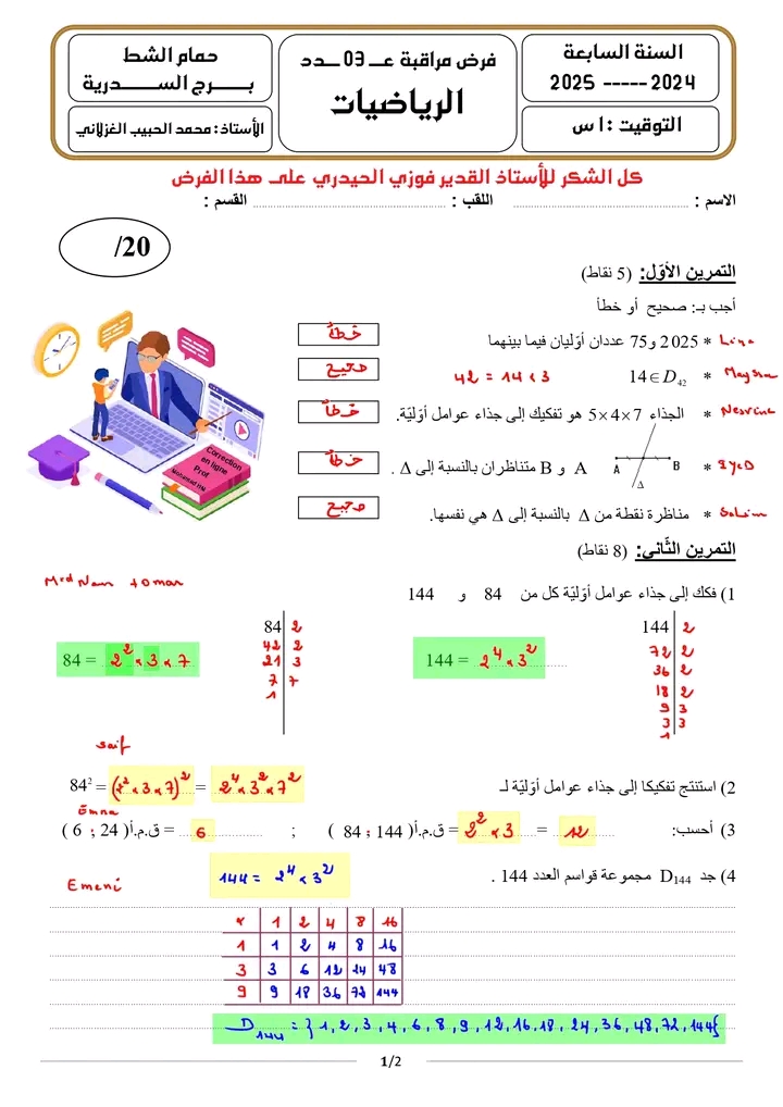 فروض مراقبة عدد 2 في مادة الرياضيات بالاصلاح
