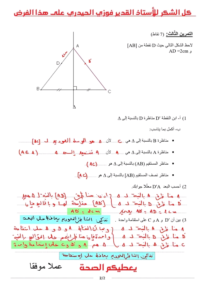 إصلاح فرض مراقبة عدد 03 للاستاذ : فوزي الحيدري