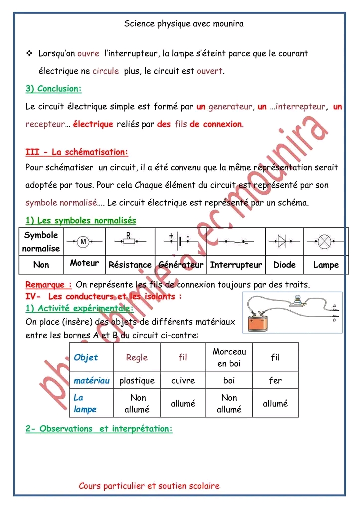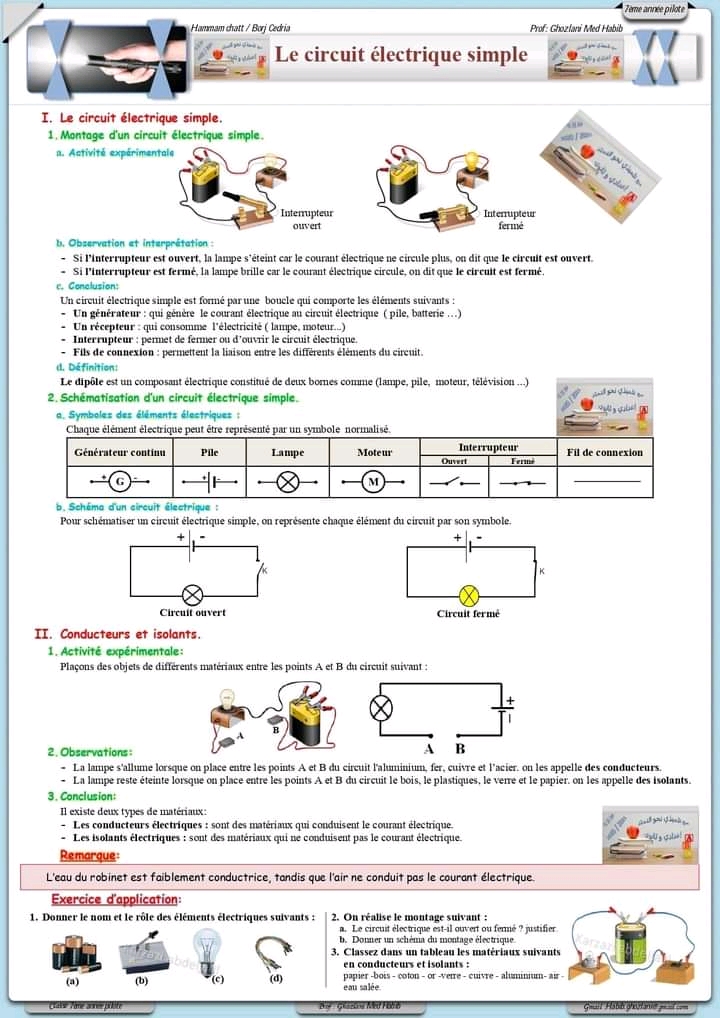 درس - قيس شدة التيار الكهربائي-7أساسي
