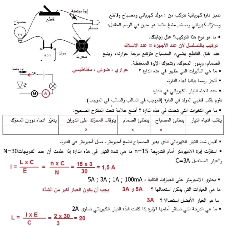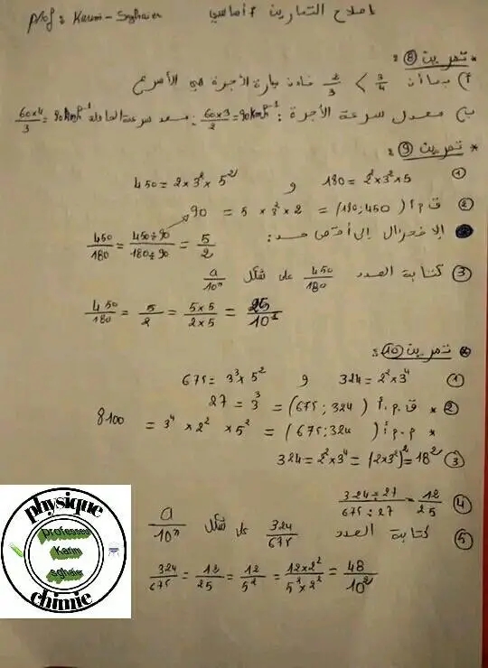 تمارين فيزياء مع الاصلاح