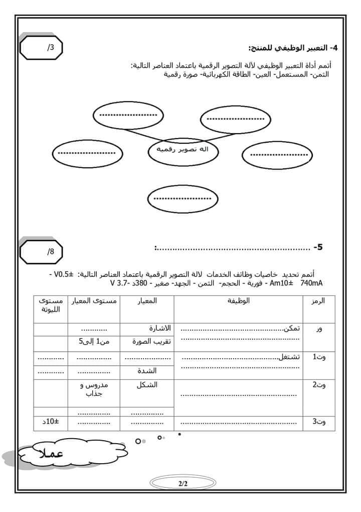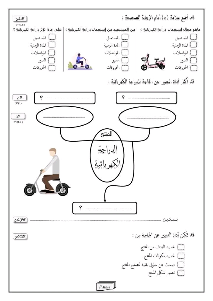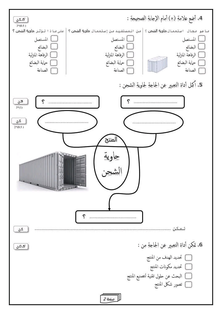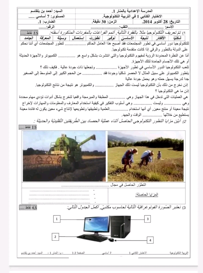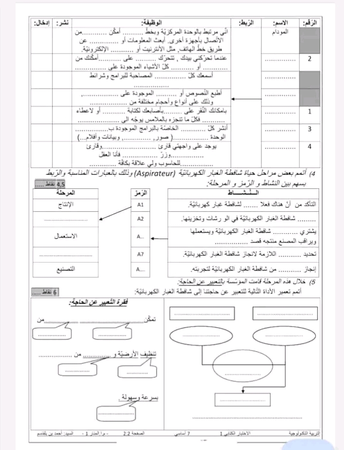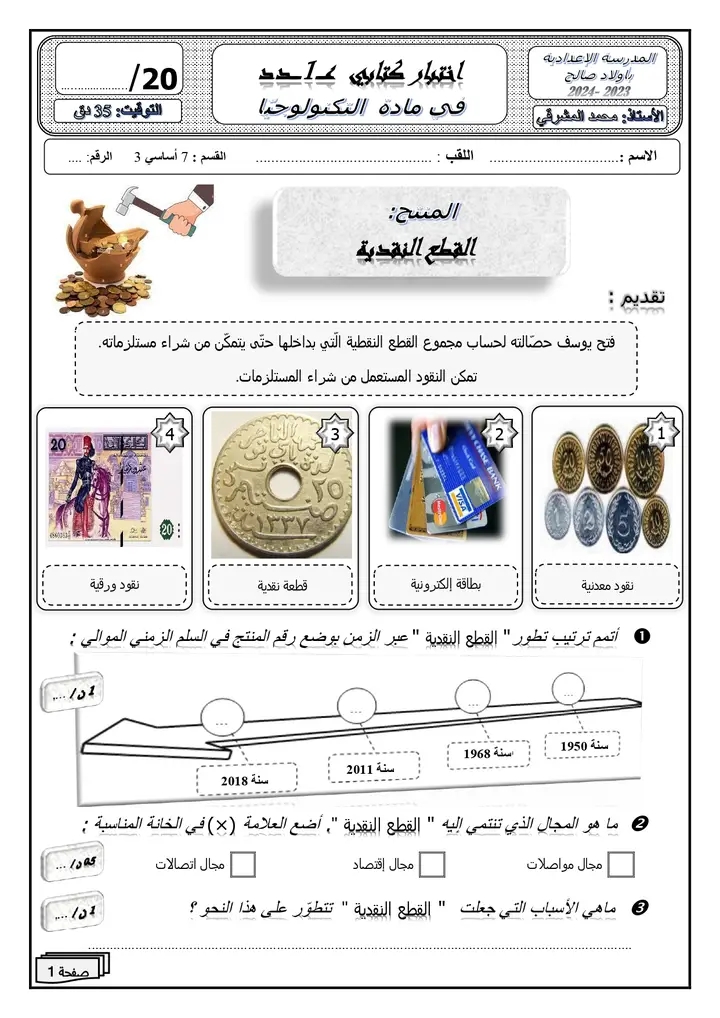 "إختبار كتابي عدد 1 لمادة التكنولوجيا"