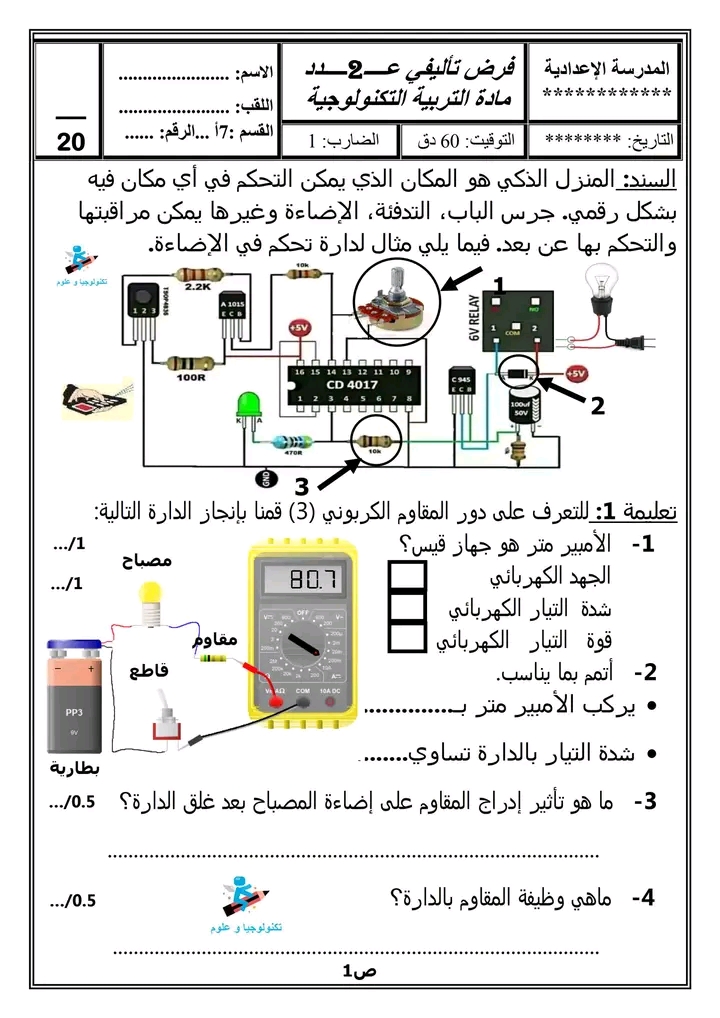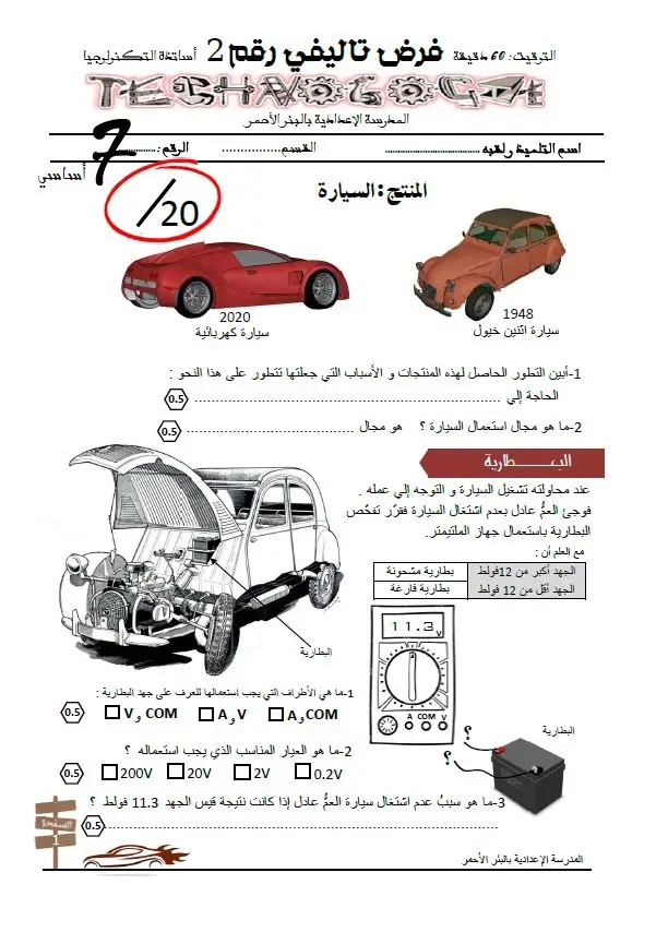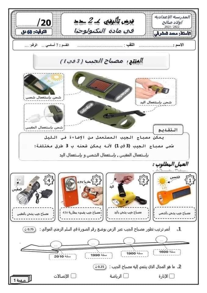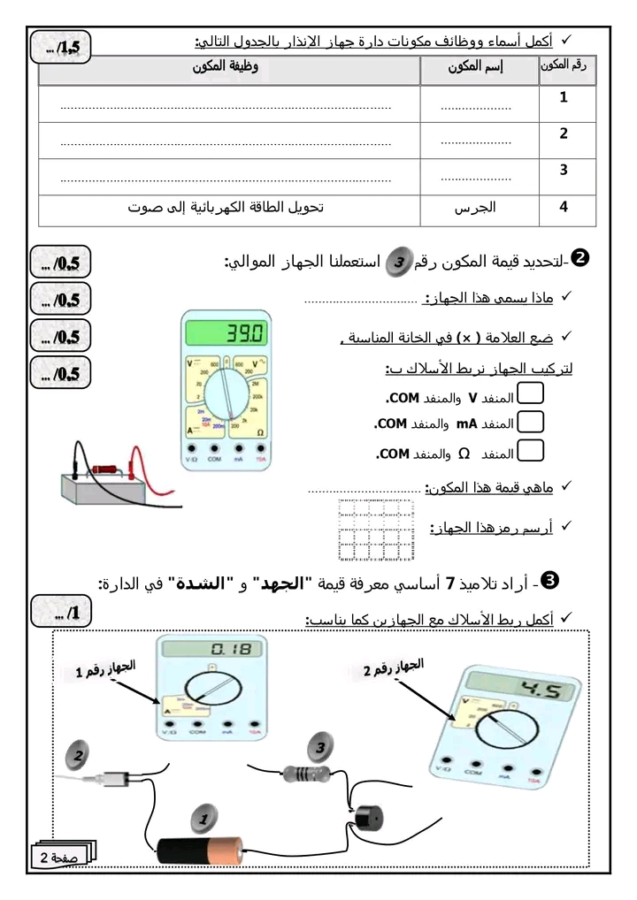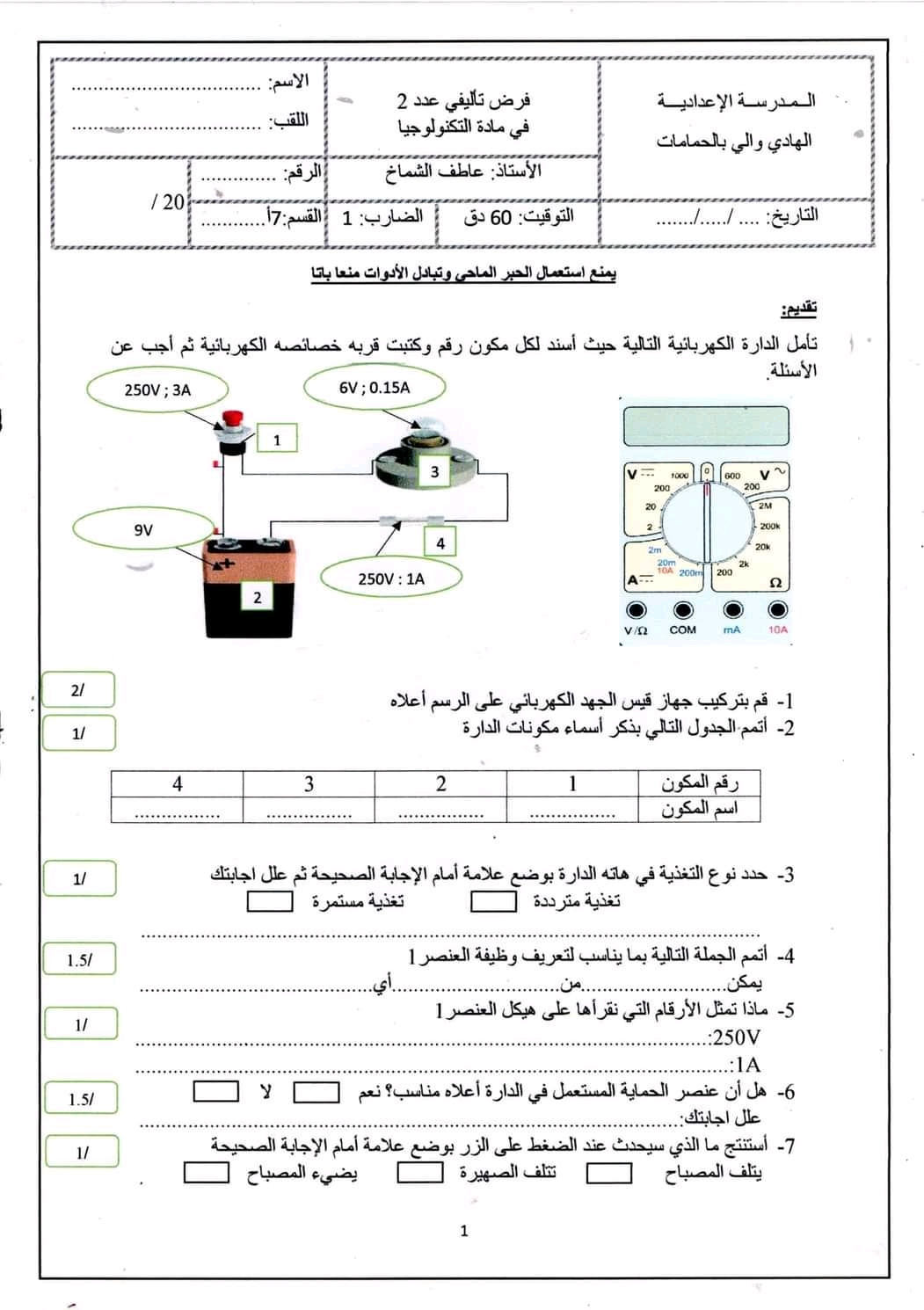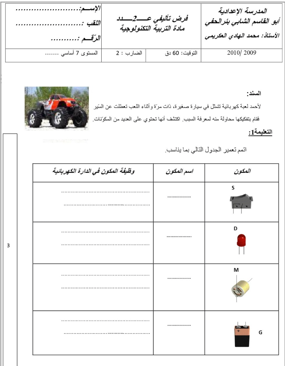 " فرض تأليفي عدد 2 لمستوى 7 أساسي "