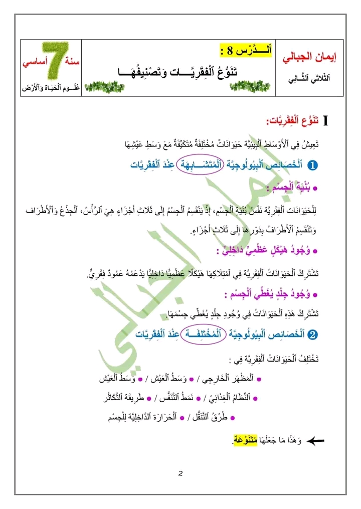 ملخص دروس الثلاثي2 السنة 7اساسي