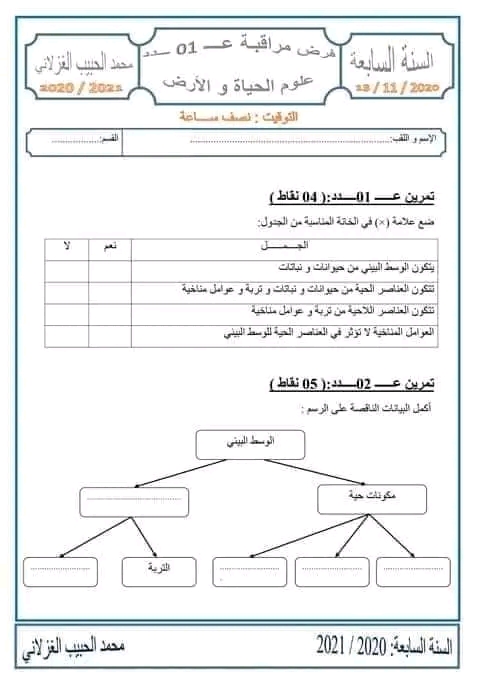 🌱 **فرض تأليفي عدد 1 في علوم الحياة والأرض – السنة السابعة أساسي مع الإصلاح الكامل** اختبر معلوماتك في أهمّ المحاور: ✅ التربة وعلاقتها بالكائنات الحيّة ✅ الماء ودوره في حياة... 🌱 **فرض تأليفي عدد 1 في علوم الحياة والأرض – السنة السابعة أساسي مع الإصلاح الكامل** اختبر معلوماتك في أهمّ المحاور: ✅ التربة وعلاقتها بالكائنات الحيّة ✅ الماء ودوره في حياة الكائنات ✅ التجارب العلمية والظواهر الطبيعية صاحب العمل أكاديمية أنشتاينher la suiteAfficher moins