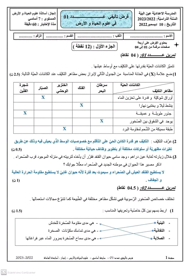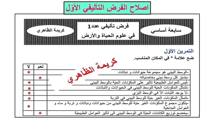 فرض تاليفي عدد 1 سنة سابعة علوم طبيعية مراجعة طيبة للجميع 🥰🤩😍🍓
