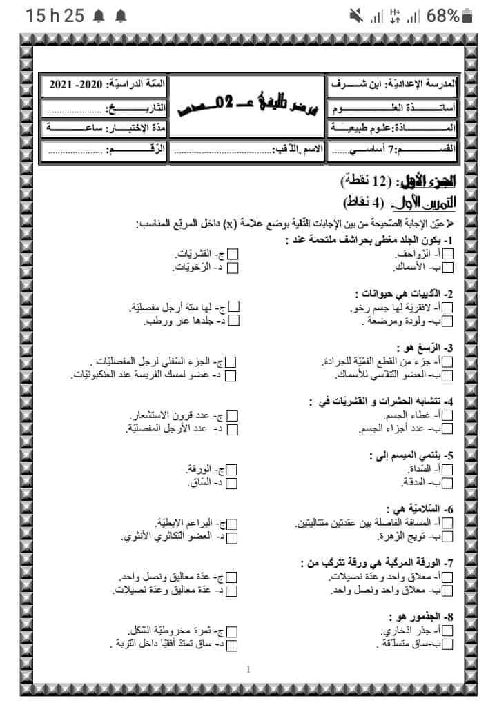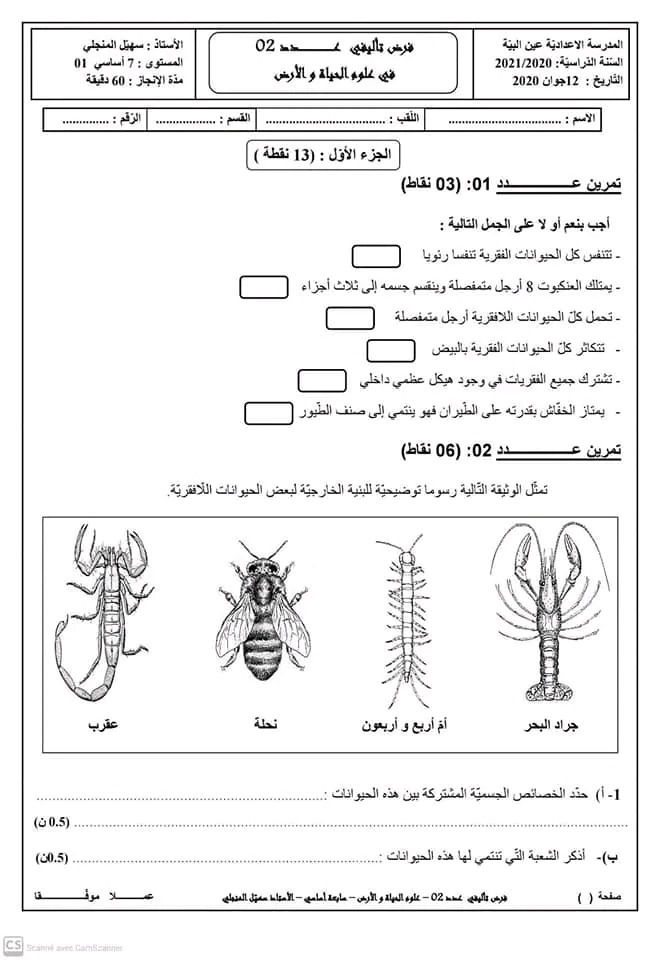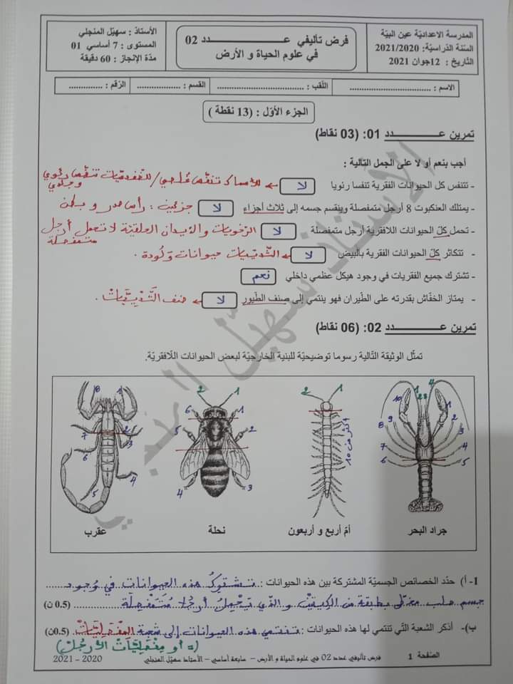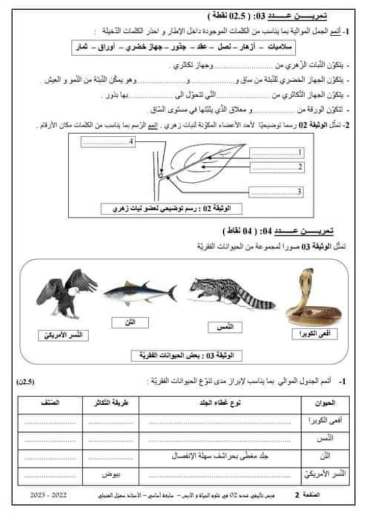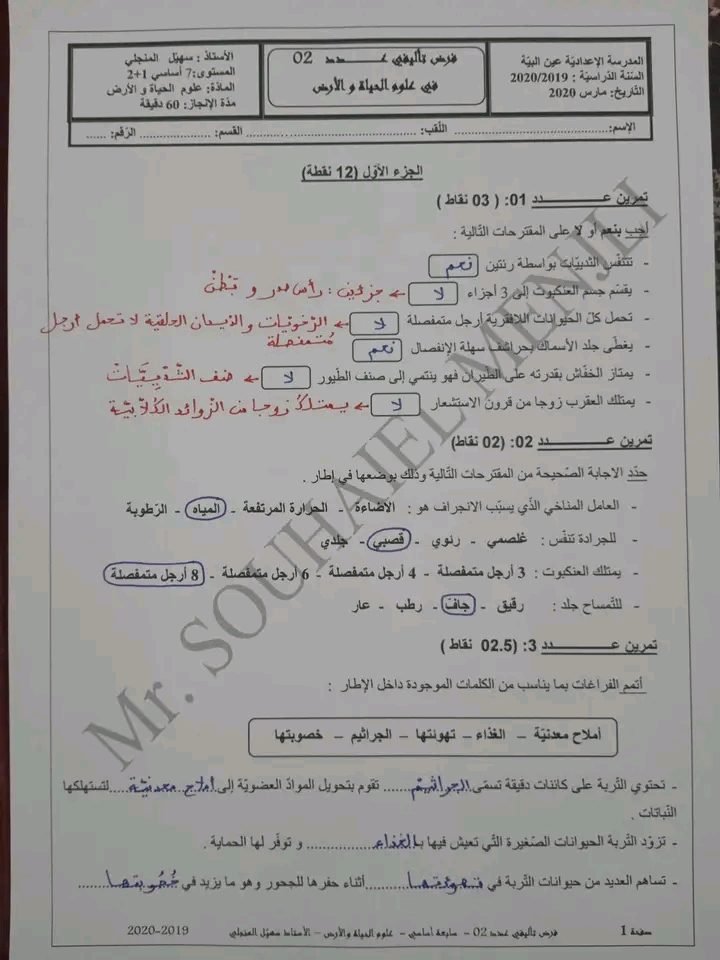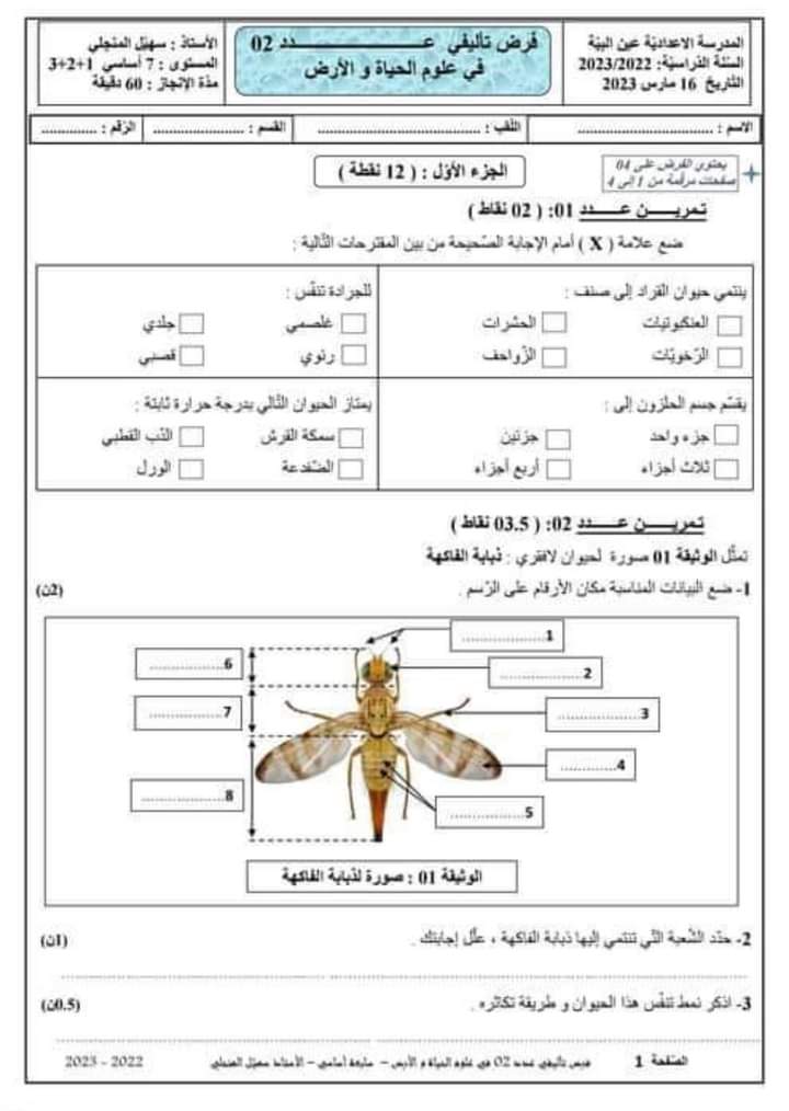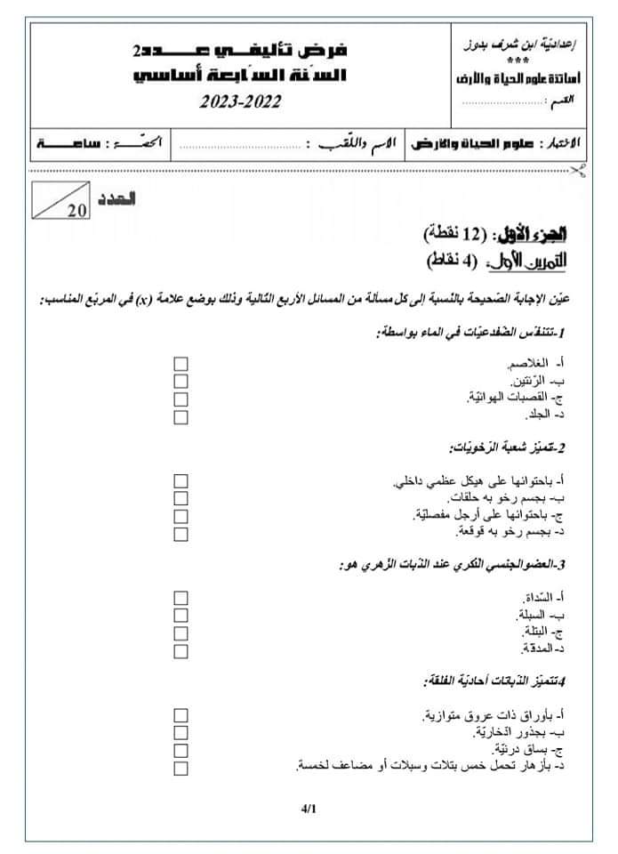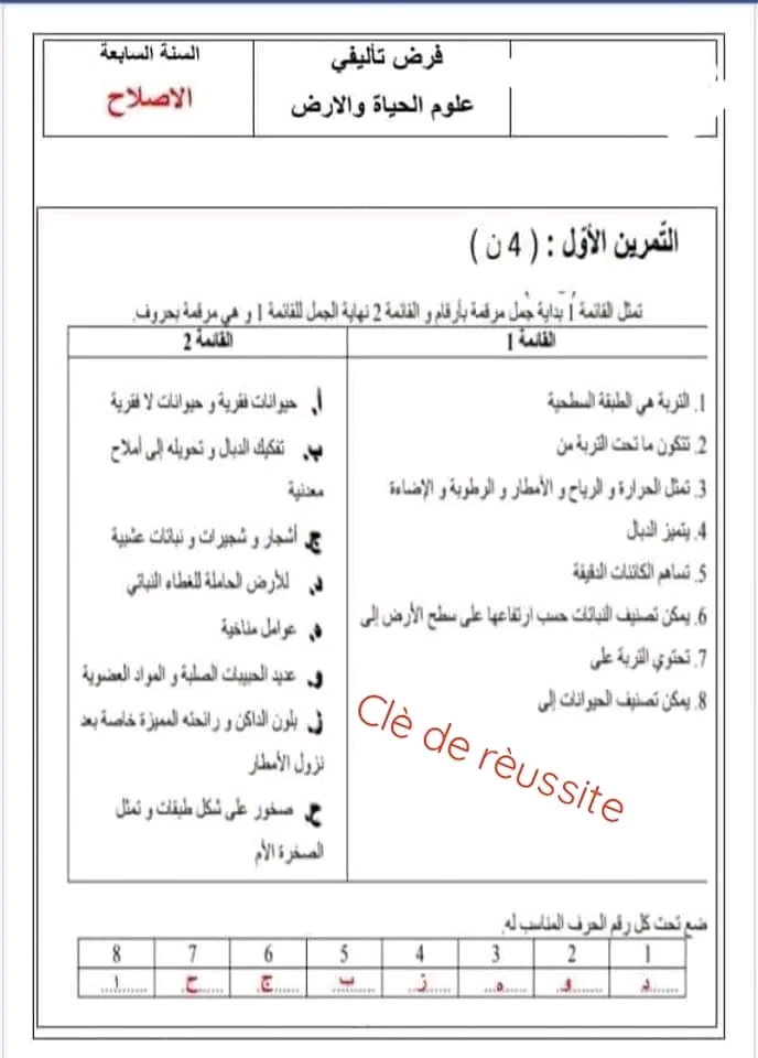 فرض تأليفي عدد 2 علوم الأرض والحياة بالاصلاح