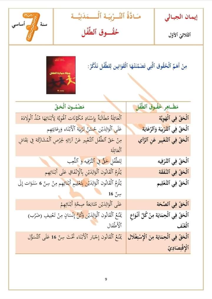 تلخيص قيم في مادة التربية المدنية سنة سابعة من انجاز ايمان الجبالي🌹🌹🌹