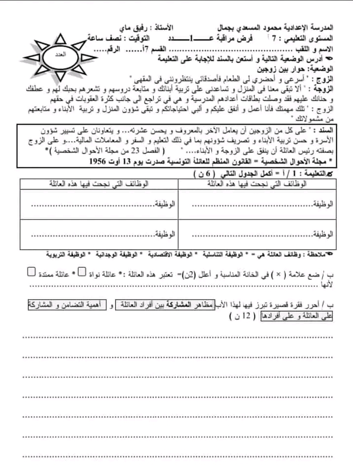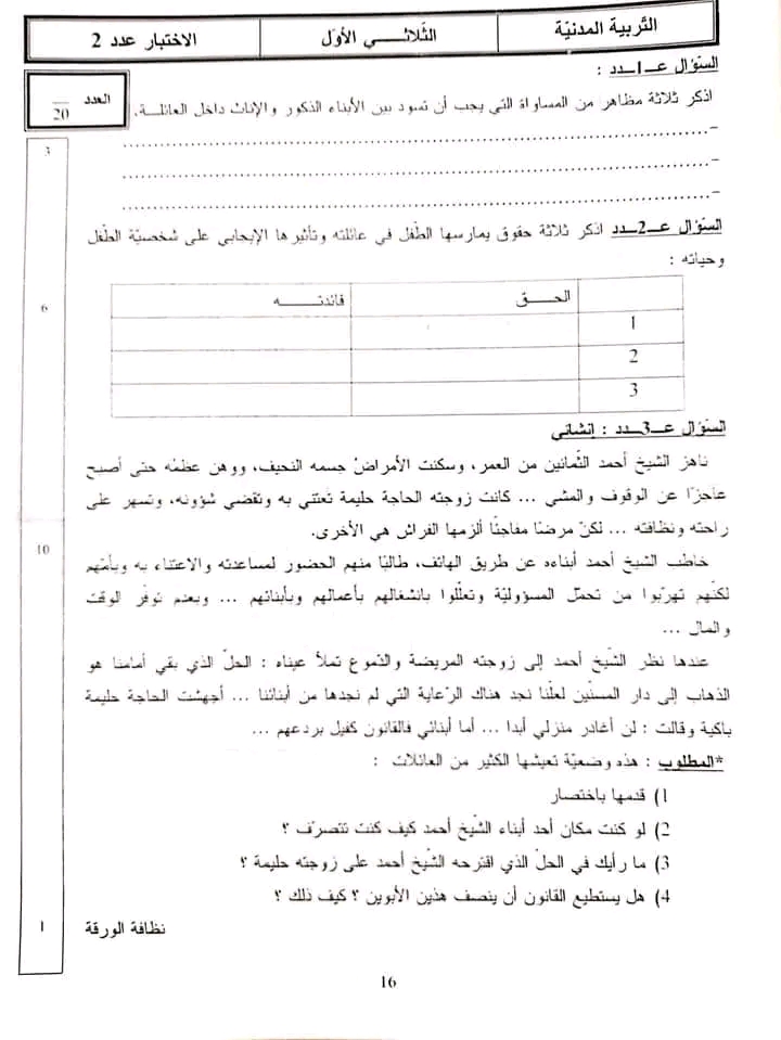سنة سابعة نماذج من فرض مراقبة تربية مدنية عدد1