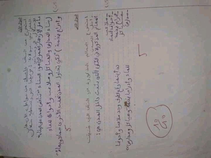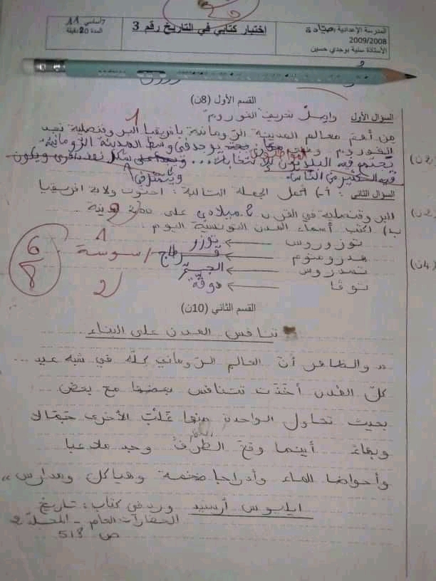 فرض مراقبة عدد 3 تاريخ لتلميذ متحصل على 19
