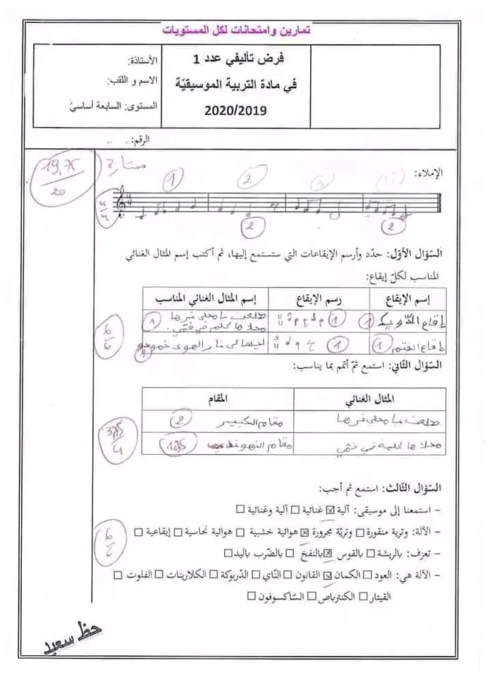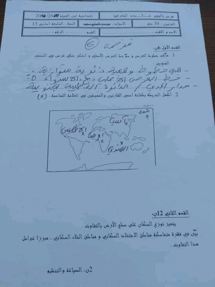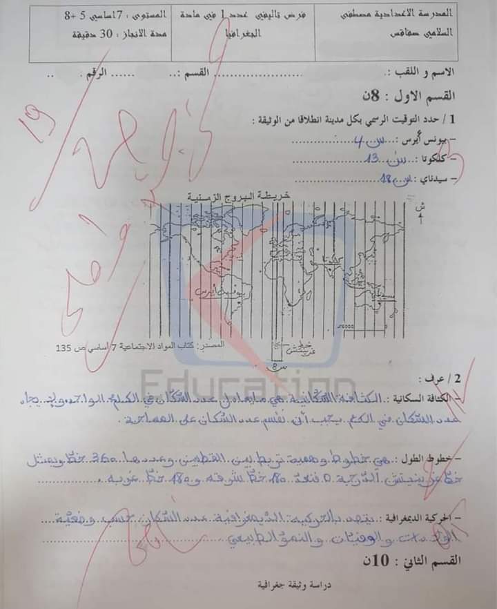 فرض تأليفي عدد 1 في الجغرافيا بالاصلاح سابعة أساسي