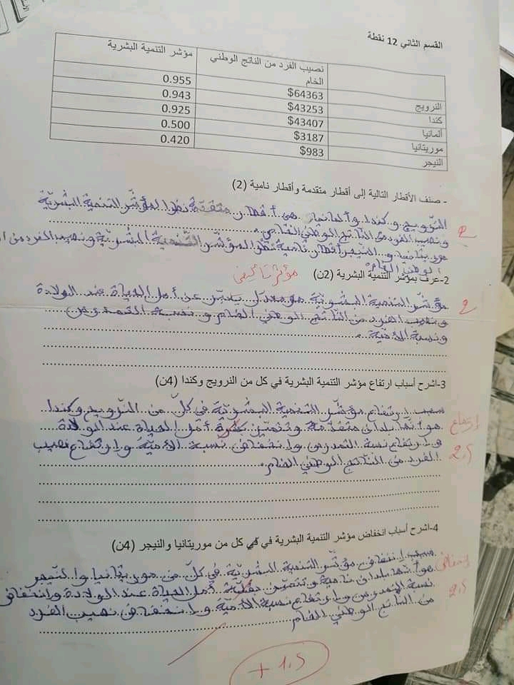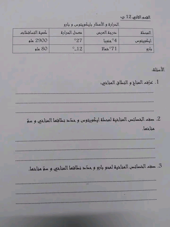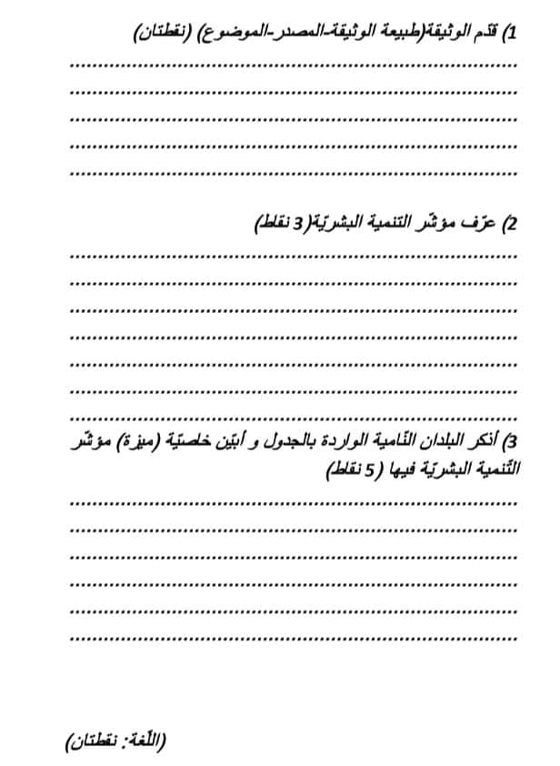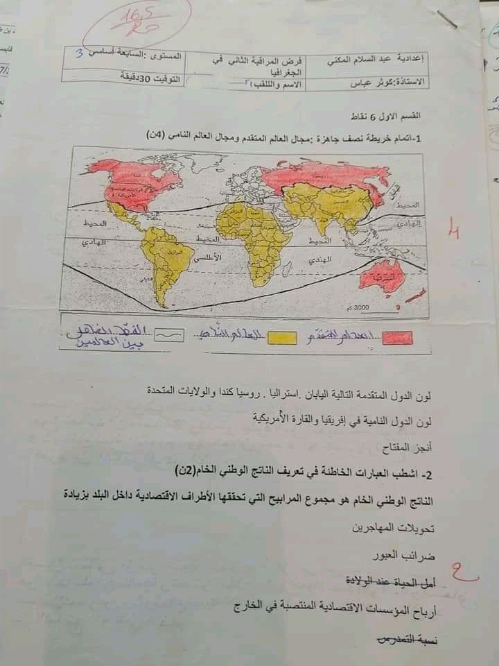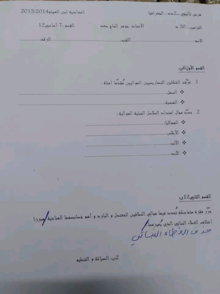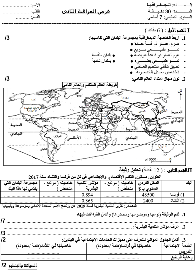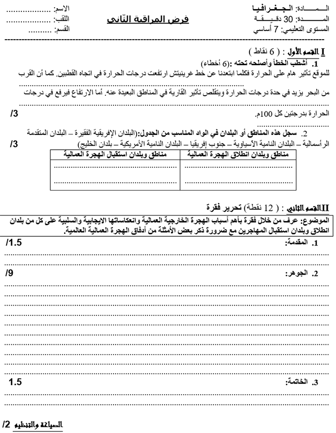 فروض مراقبة عدد 2 جغرافيا سابعة اساسي