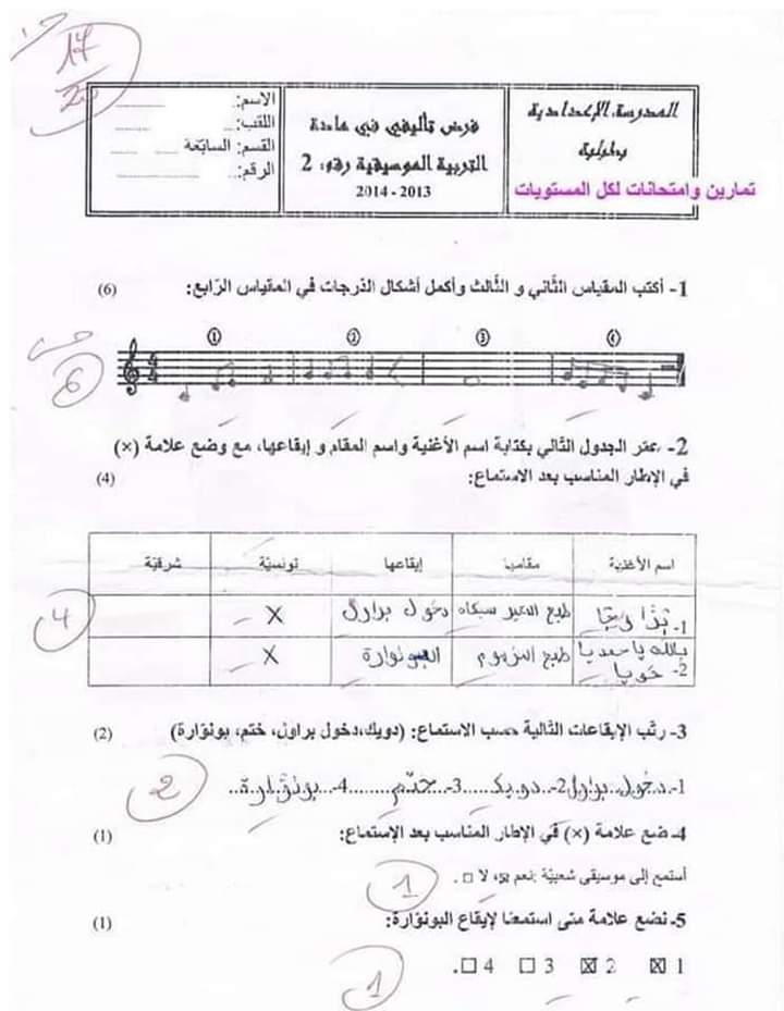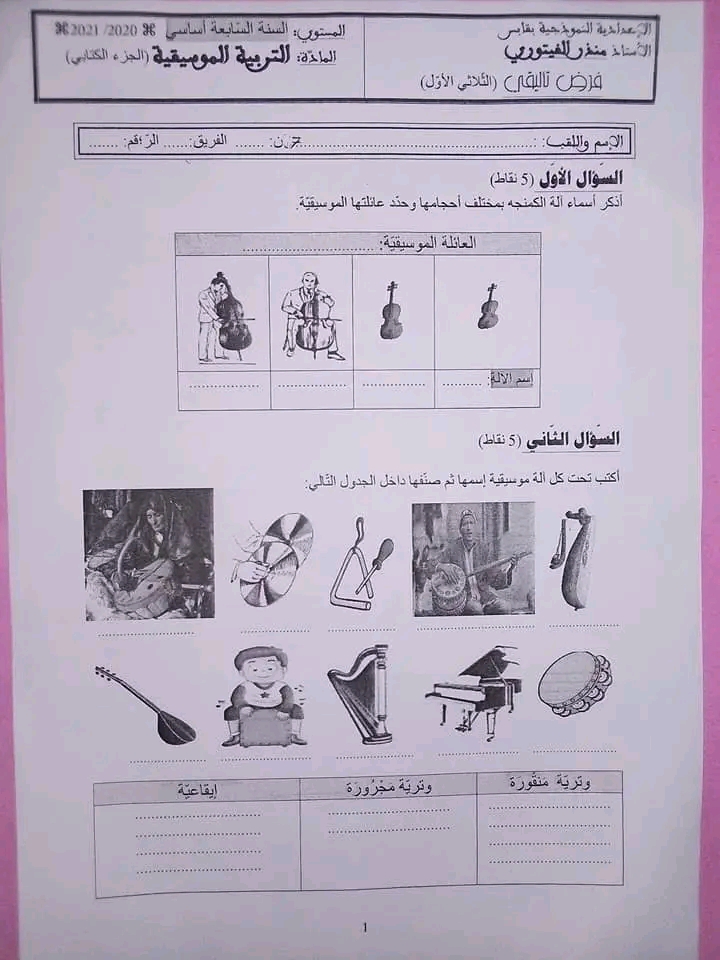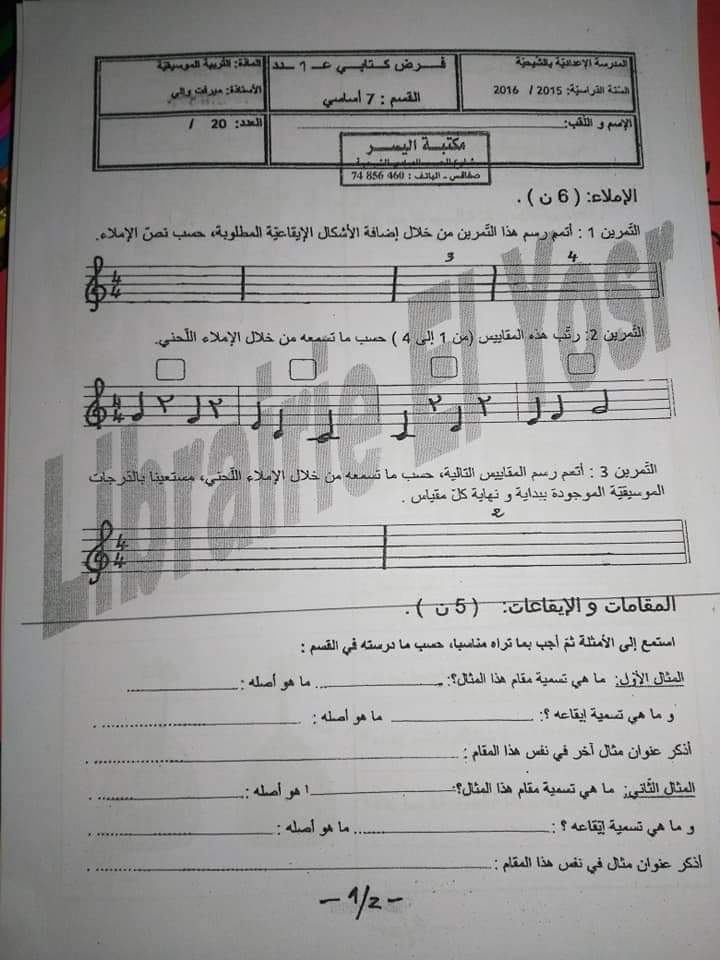 فرض تاليفي عدد 1 مع الاصلاح