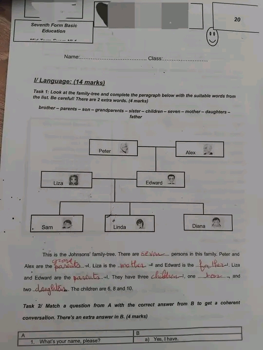 📘 **Anglais – Examen complet pour les élèves de 7e année**+Correction