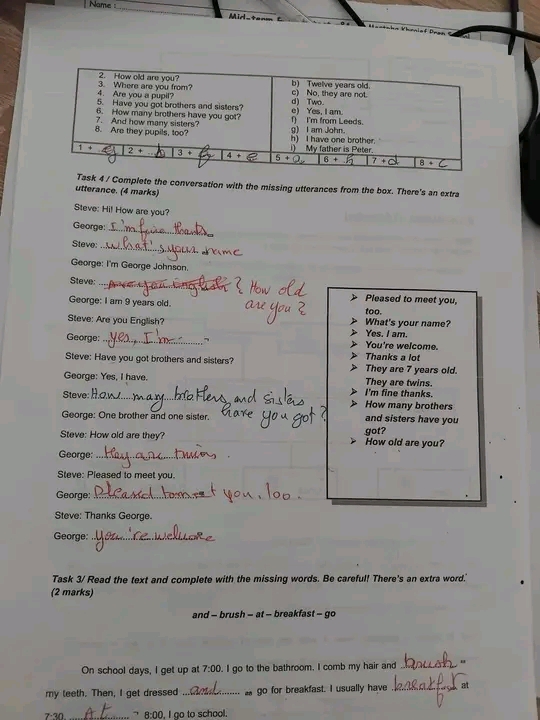 فرض انجليزية تاليفي عدد 3 مع الاصلاح