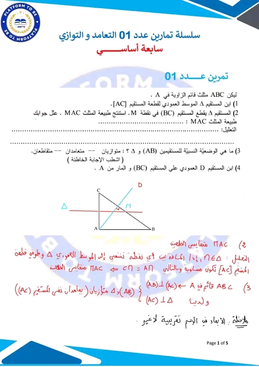 سابعة: مراجعة عامة التعامد و التوازي