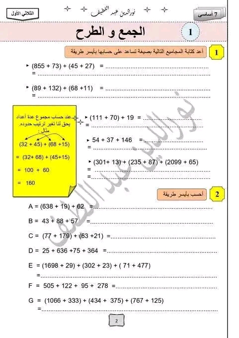 سلسة تمارين رياضيات عدد 1 سنة سابعة