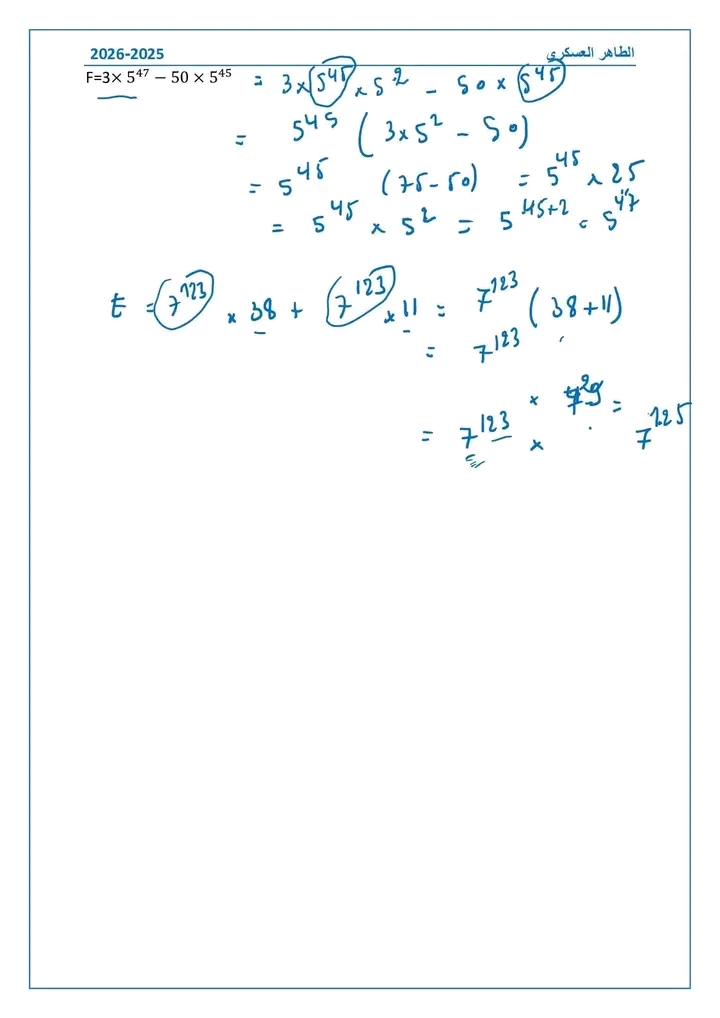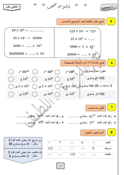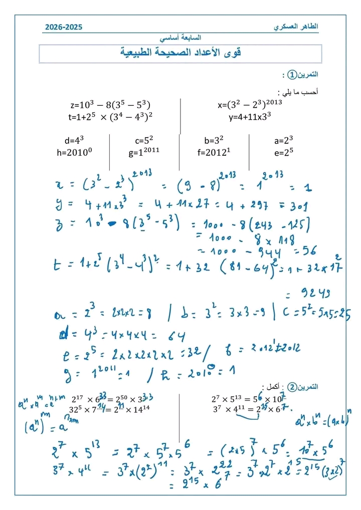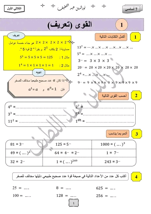سلسة تمارين ( القوى) 7اساسي
