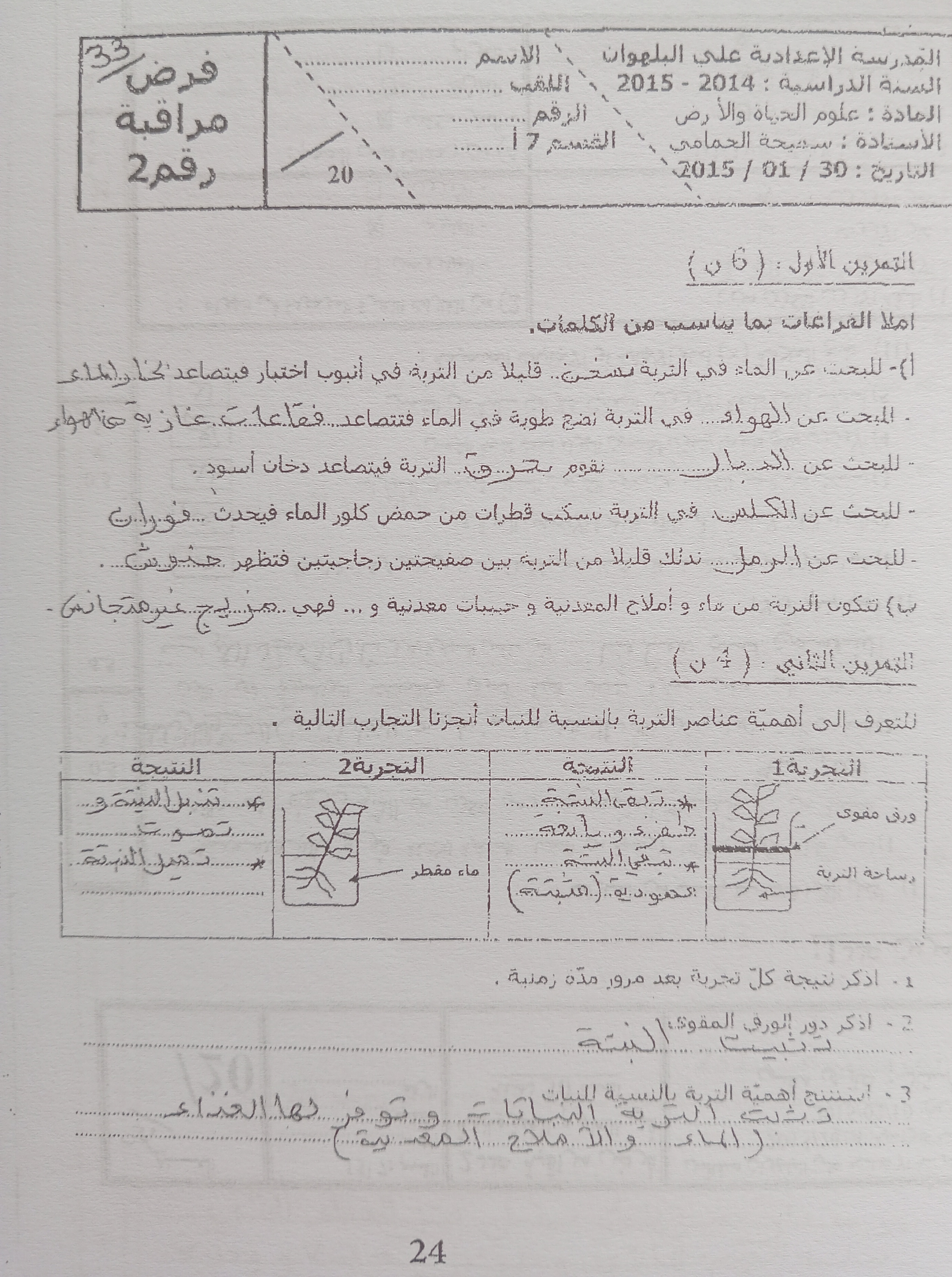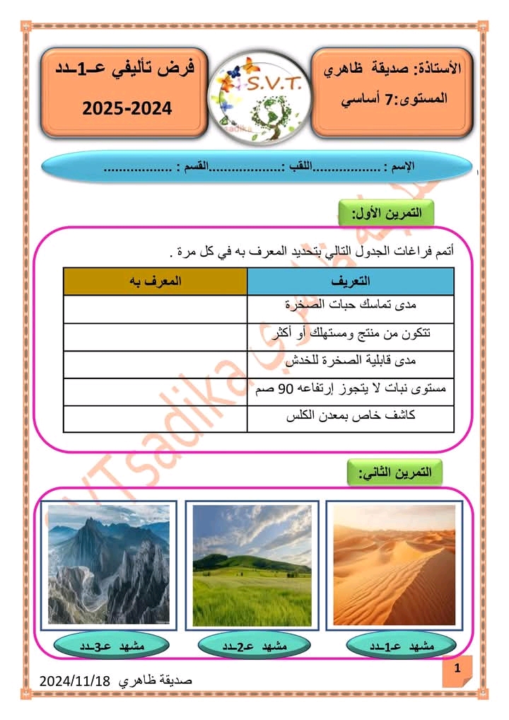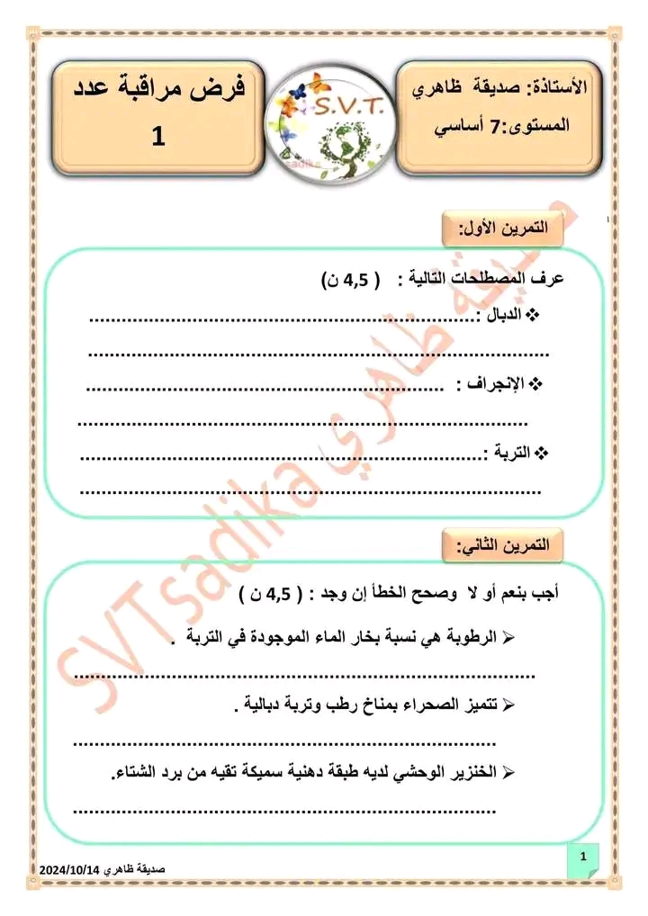 فرض تاليفي عدد 1 سنة سابعة علوم طبيعية مراجعة طيبة للجميع 🥰🤩😍🍓