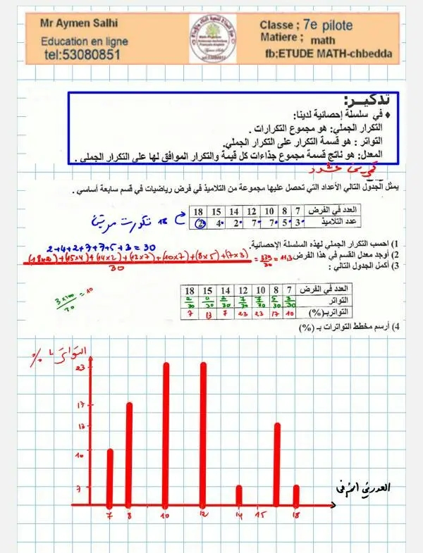 تلخيص لدرس التناسب الطردي و الاحصاء مع تمارين تطبيقية بالاصلاح سابعة أساسي نموذجي