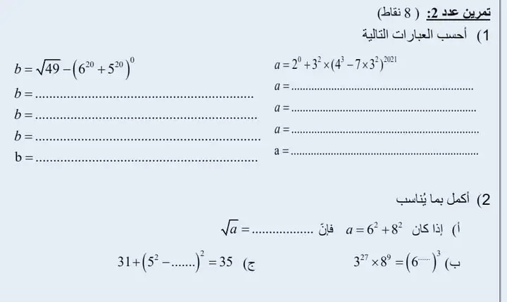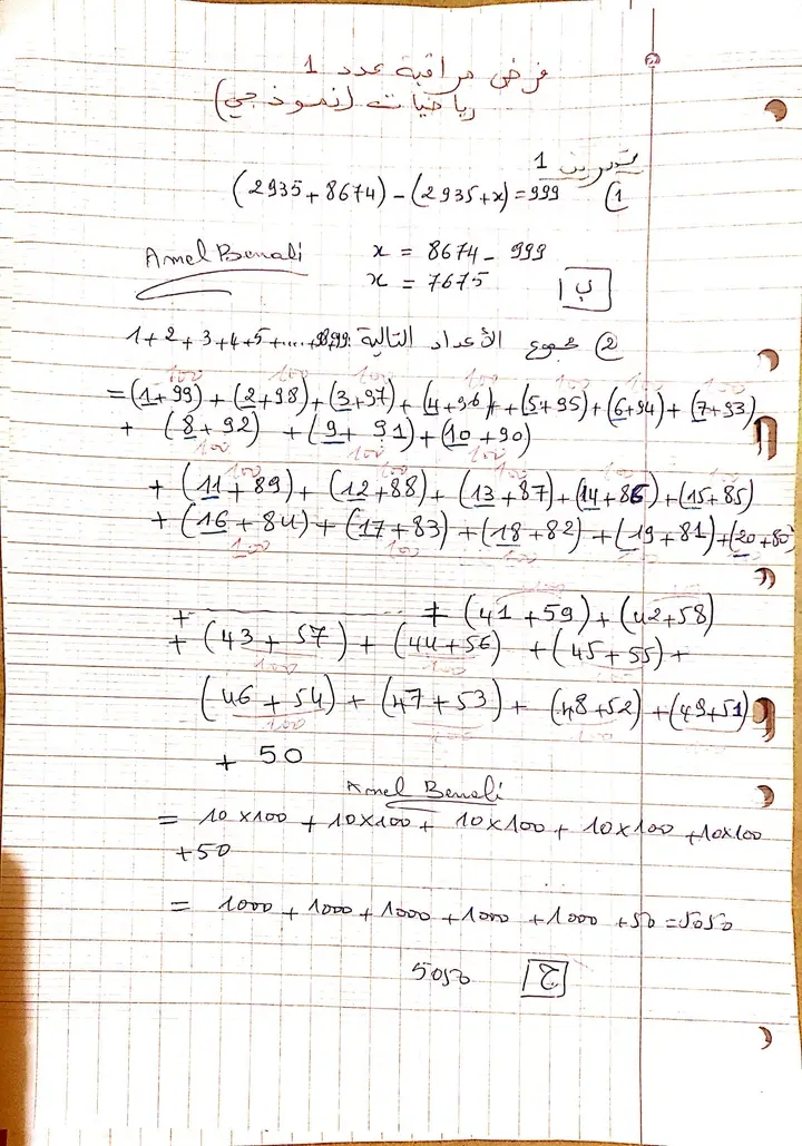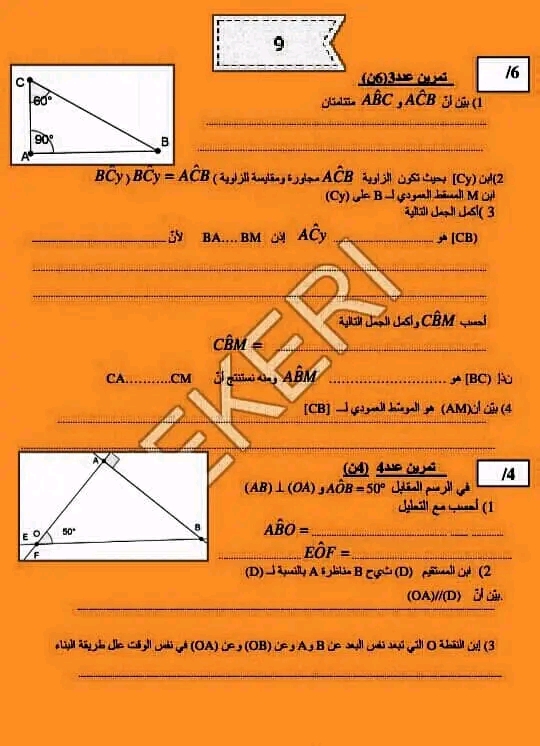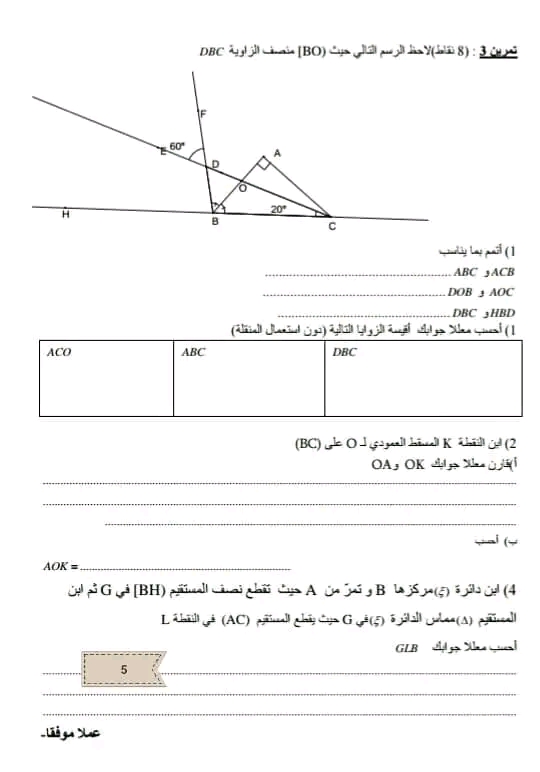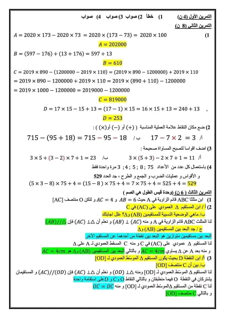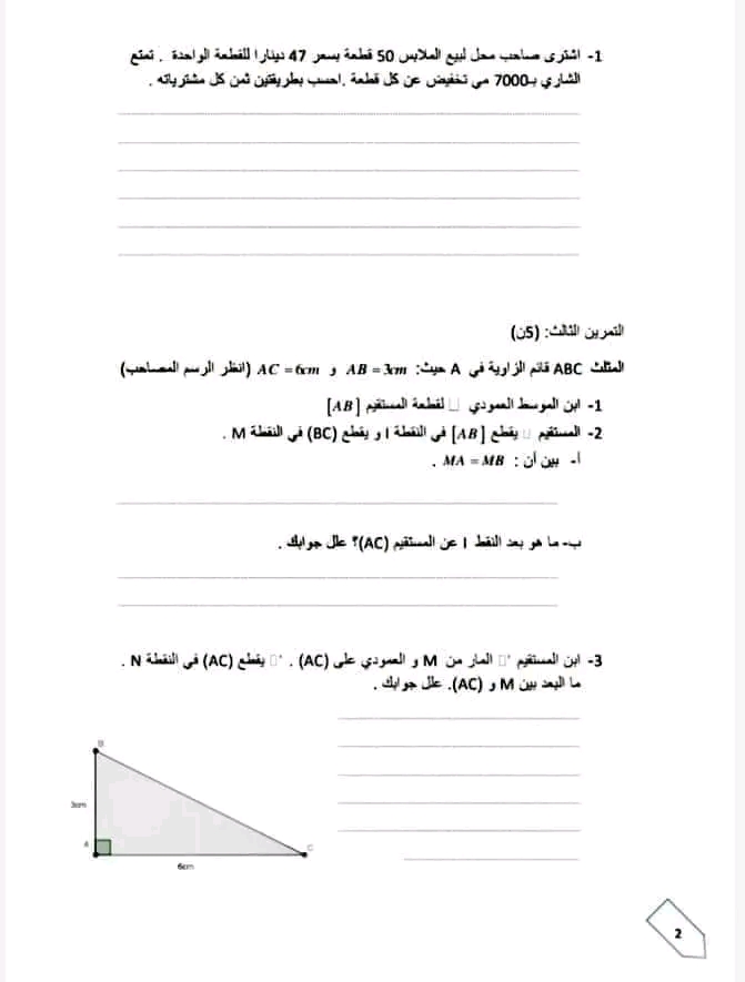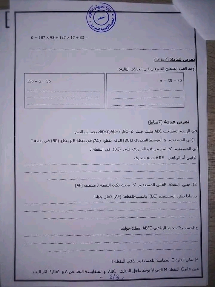 فرض مراقبة رياضيات عدد 01 مرفق بالاصلاح