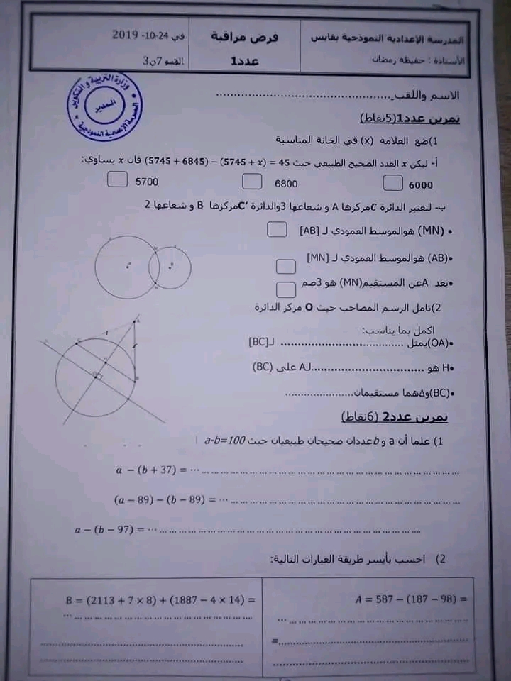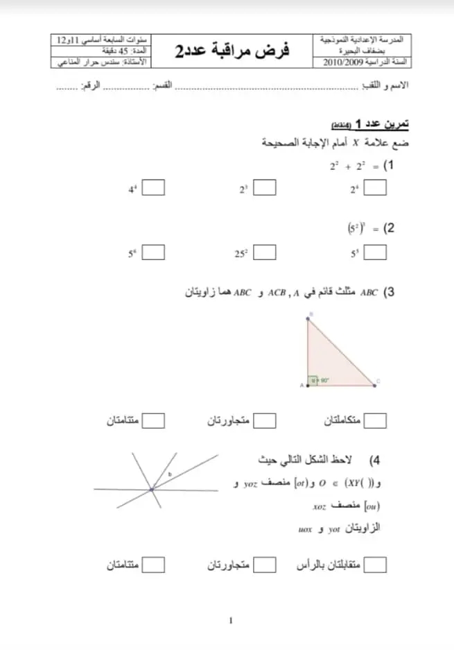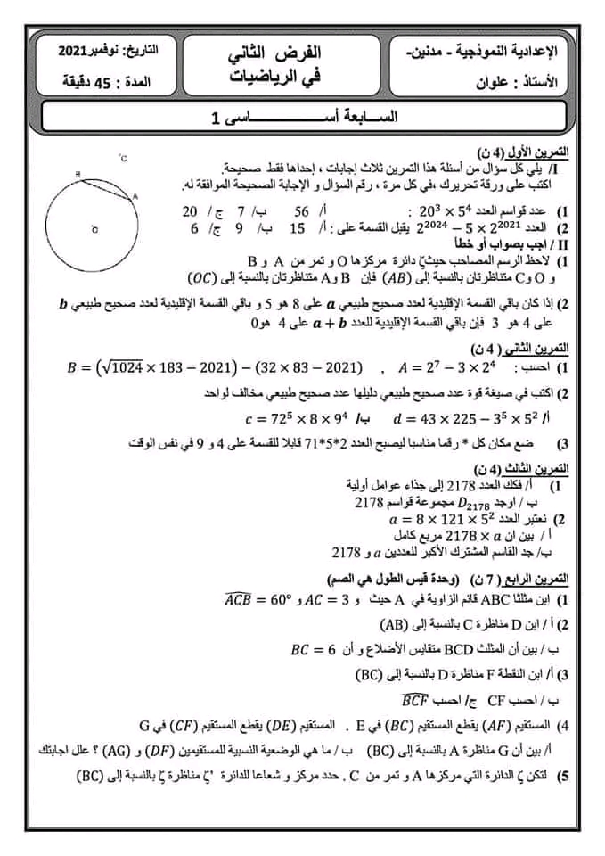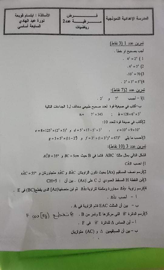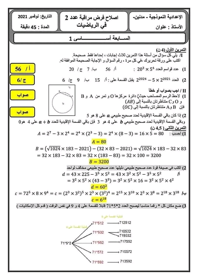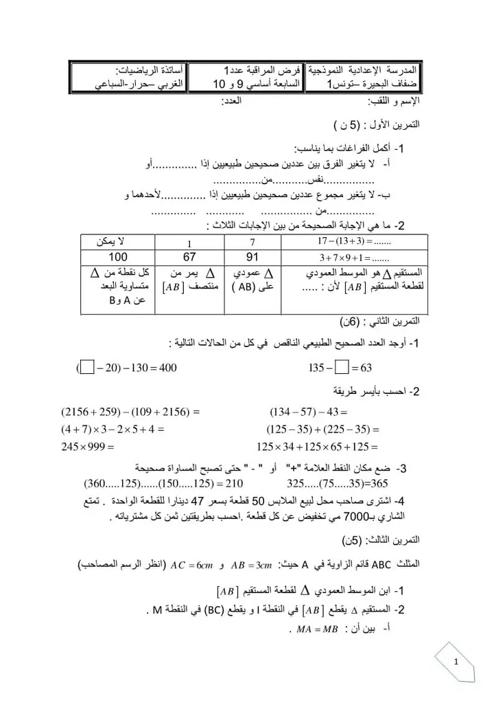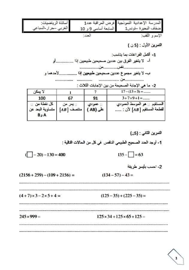 اصلاح فرض مراقبة عدد 1 نموذجي صفاقس