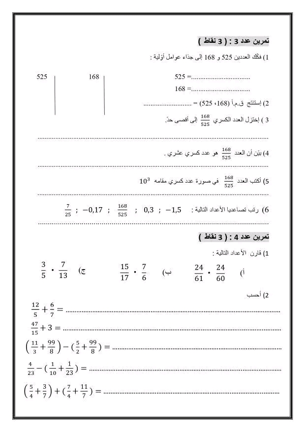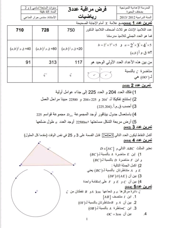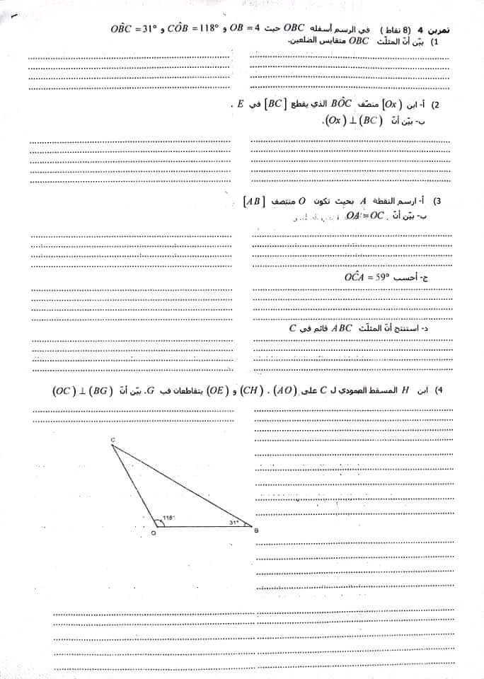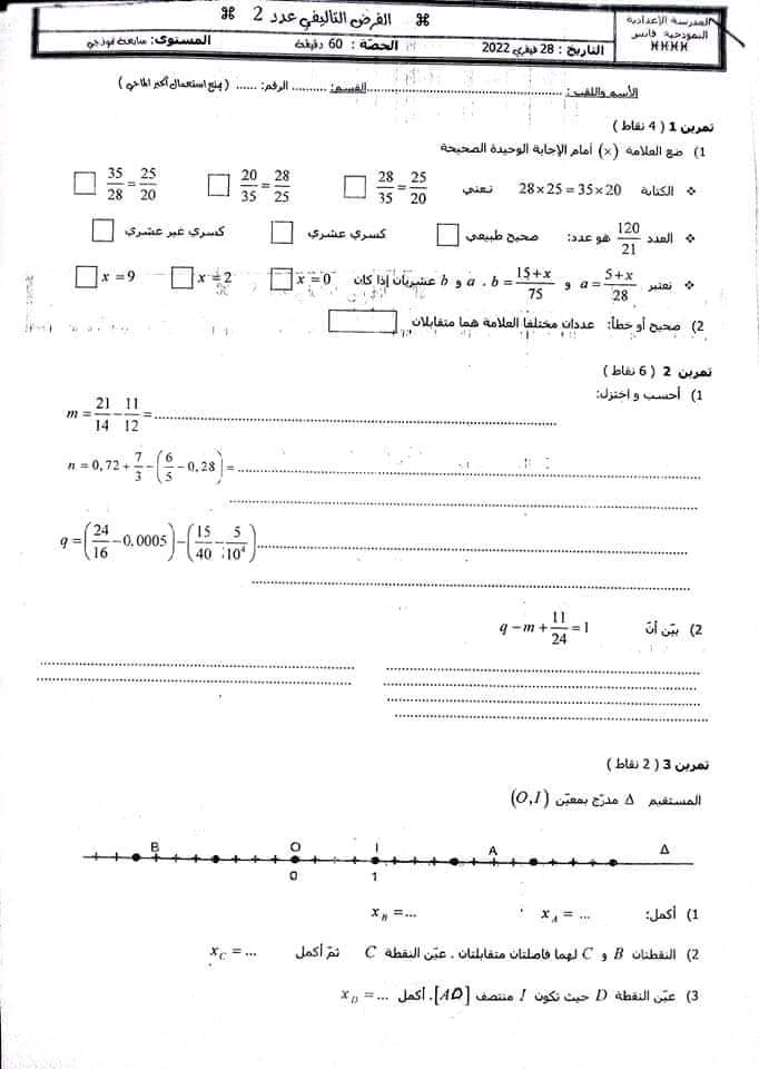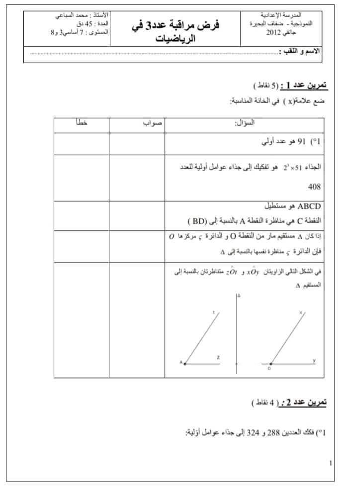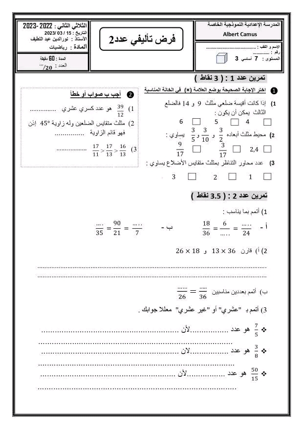 الفرض التأليفي عدد رياضيات بالاصلاح 2 بالإعدادية النموذجية
