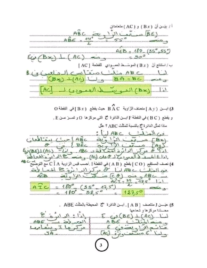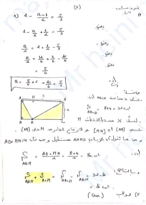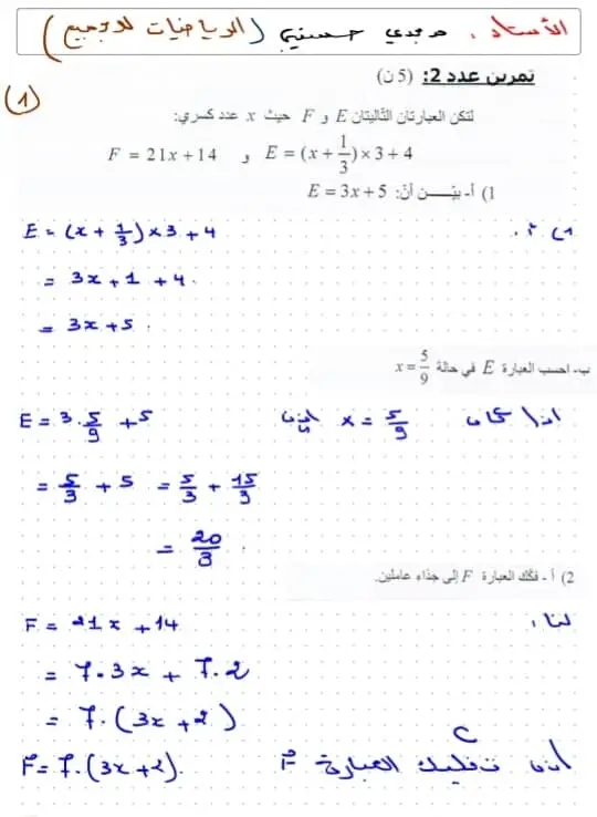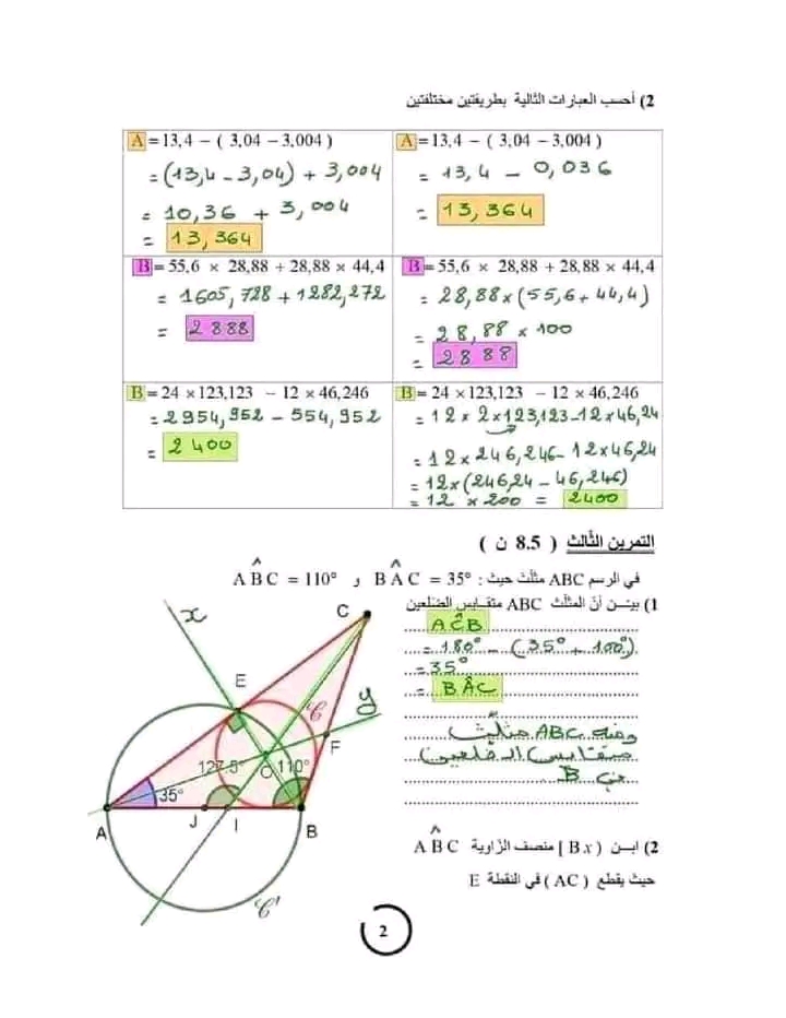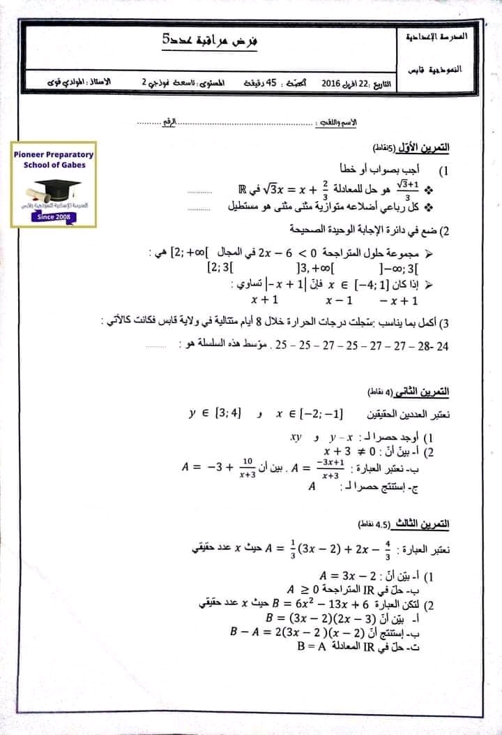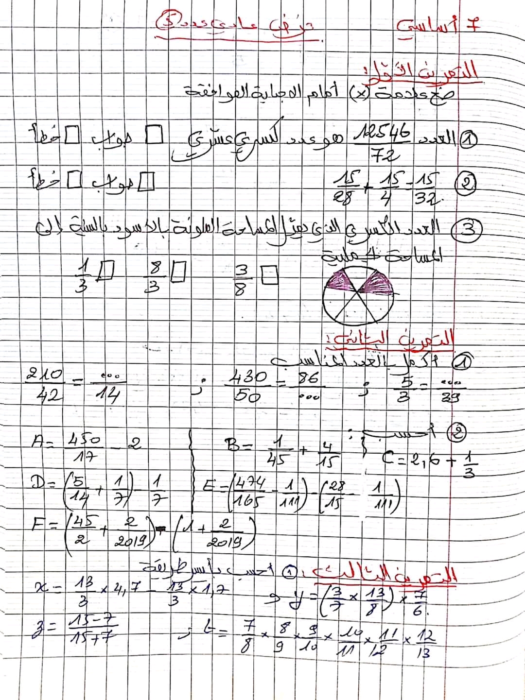 فرض مراقبة عدد 3 الثلاثي الثاني في مادة الرياضيات