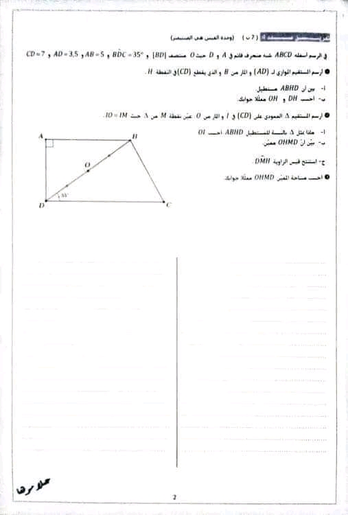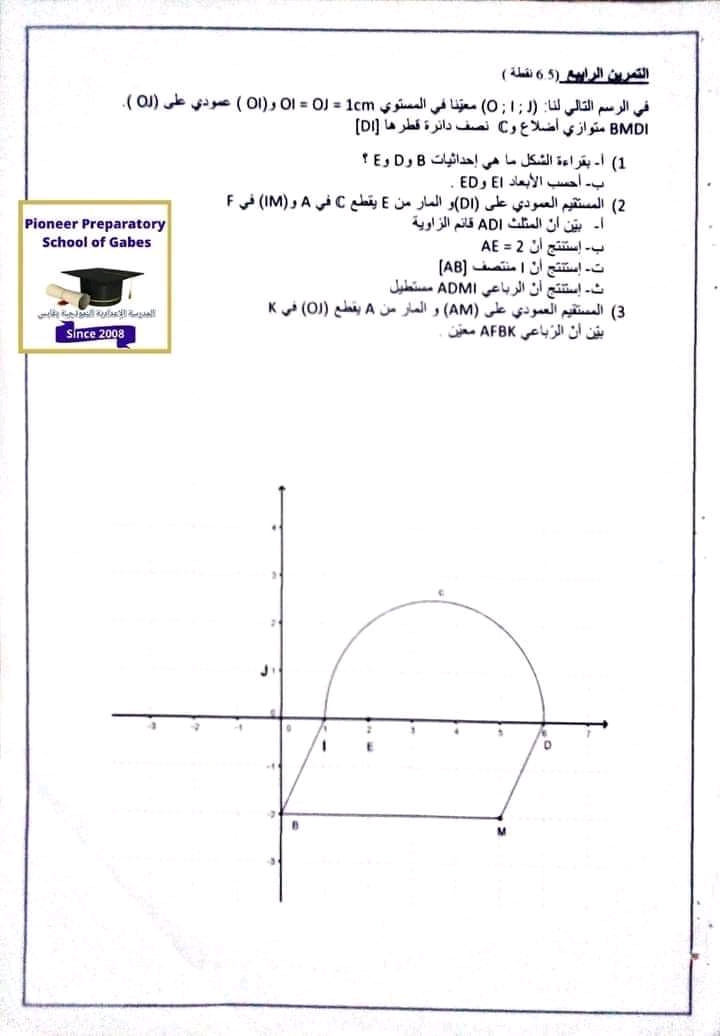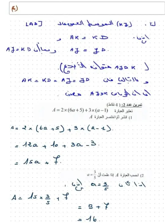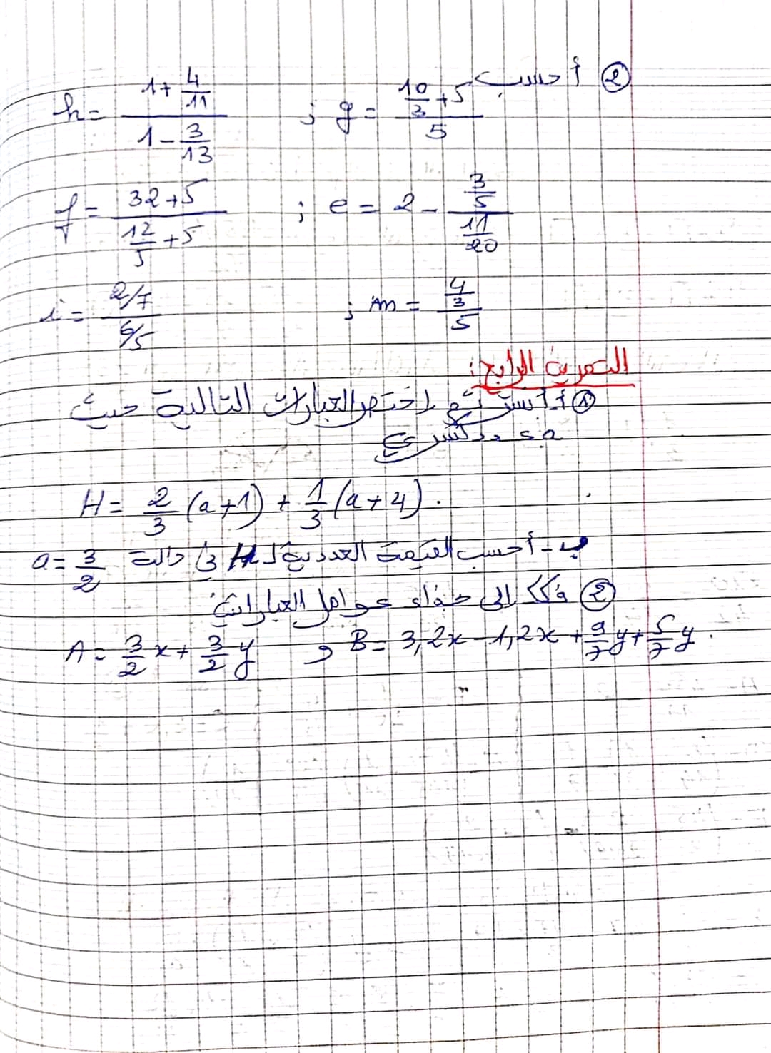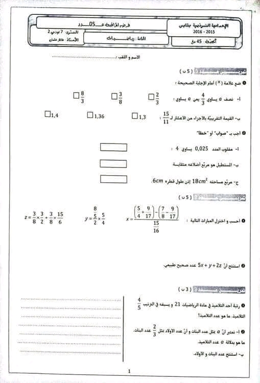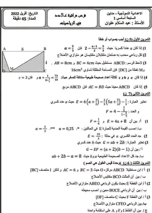 فرض مراقبة عدد4 في مادة الرياضيات بالاصلاح