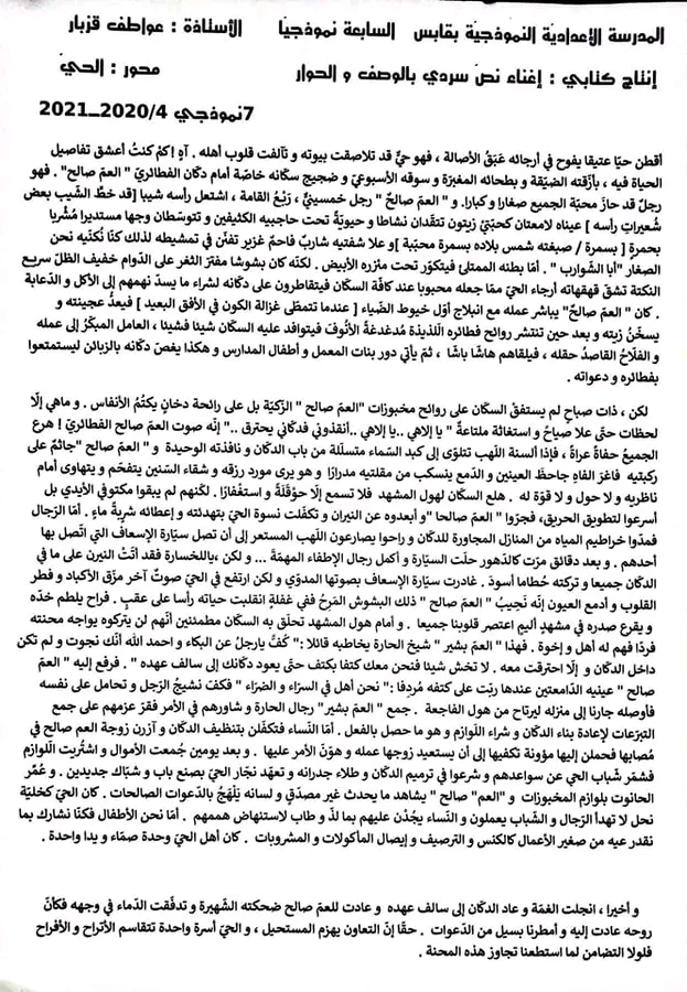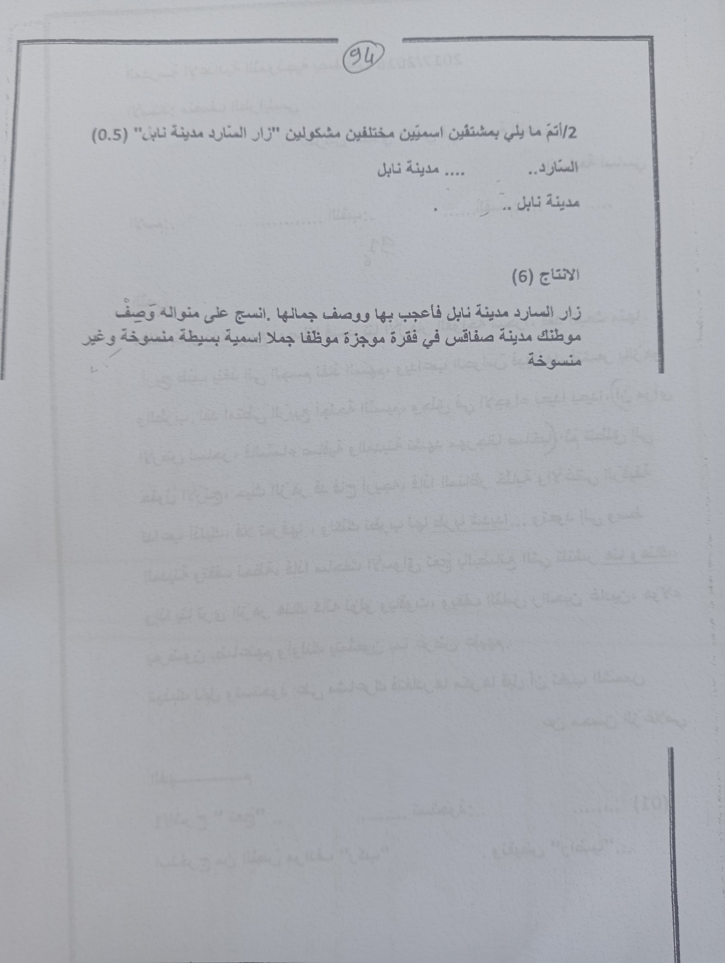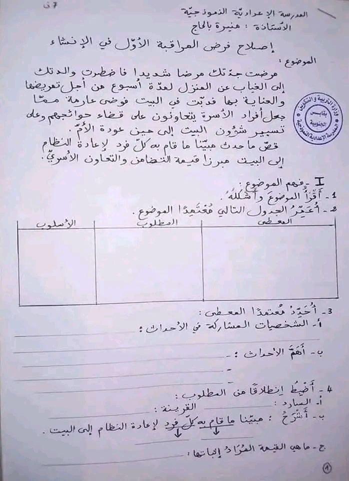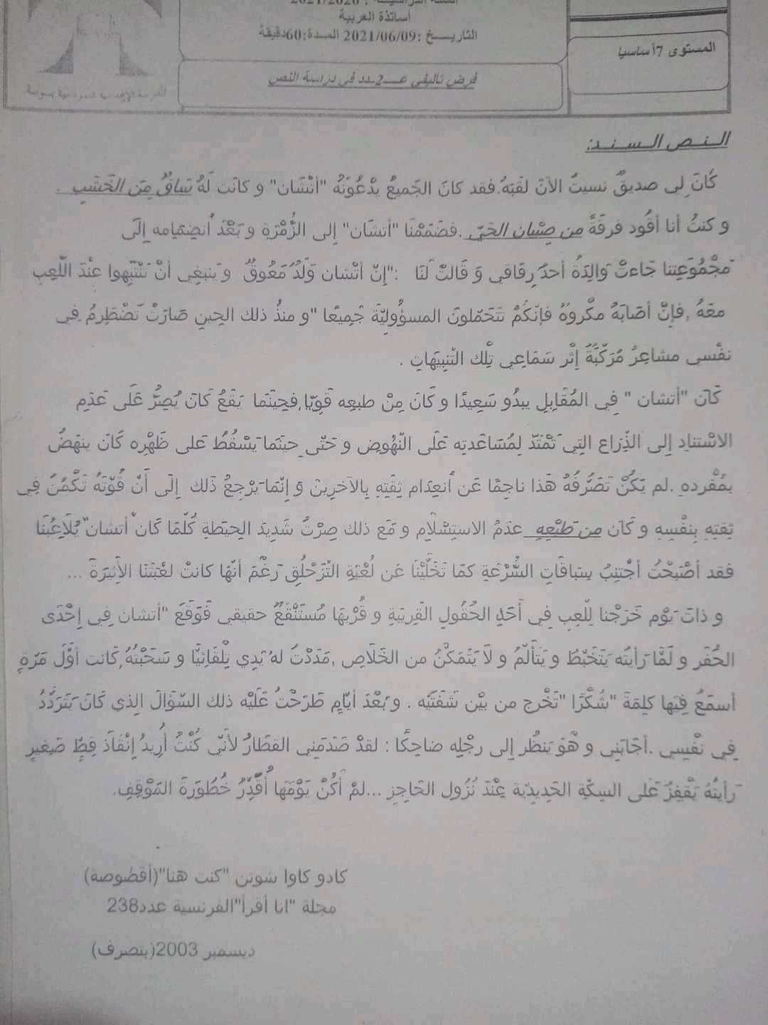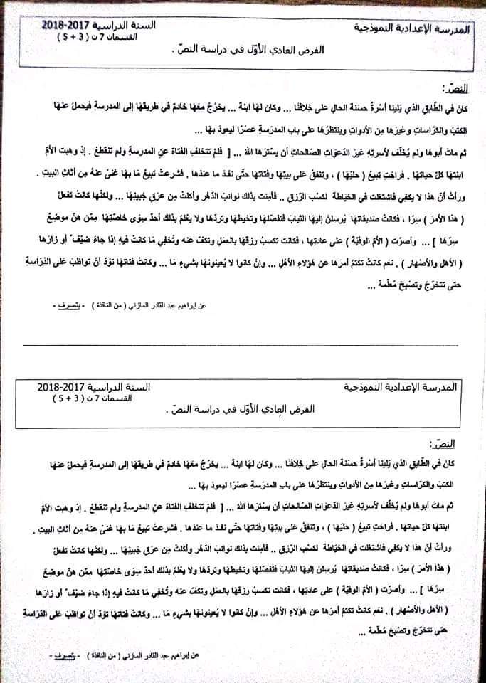 فرض مراقبة عدد 2 في مادة دراسة النص