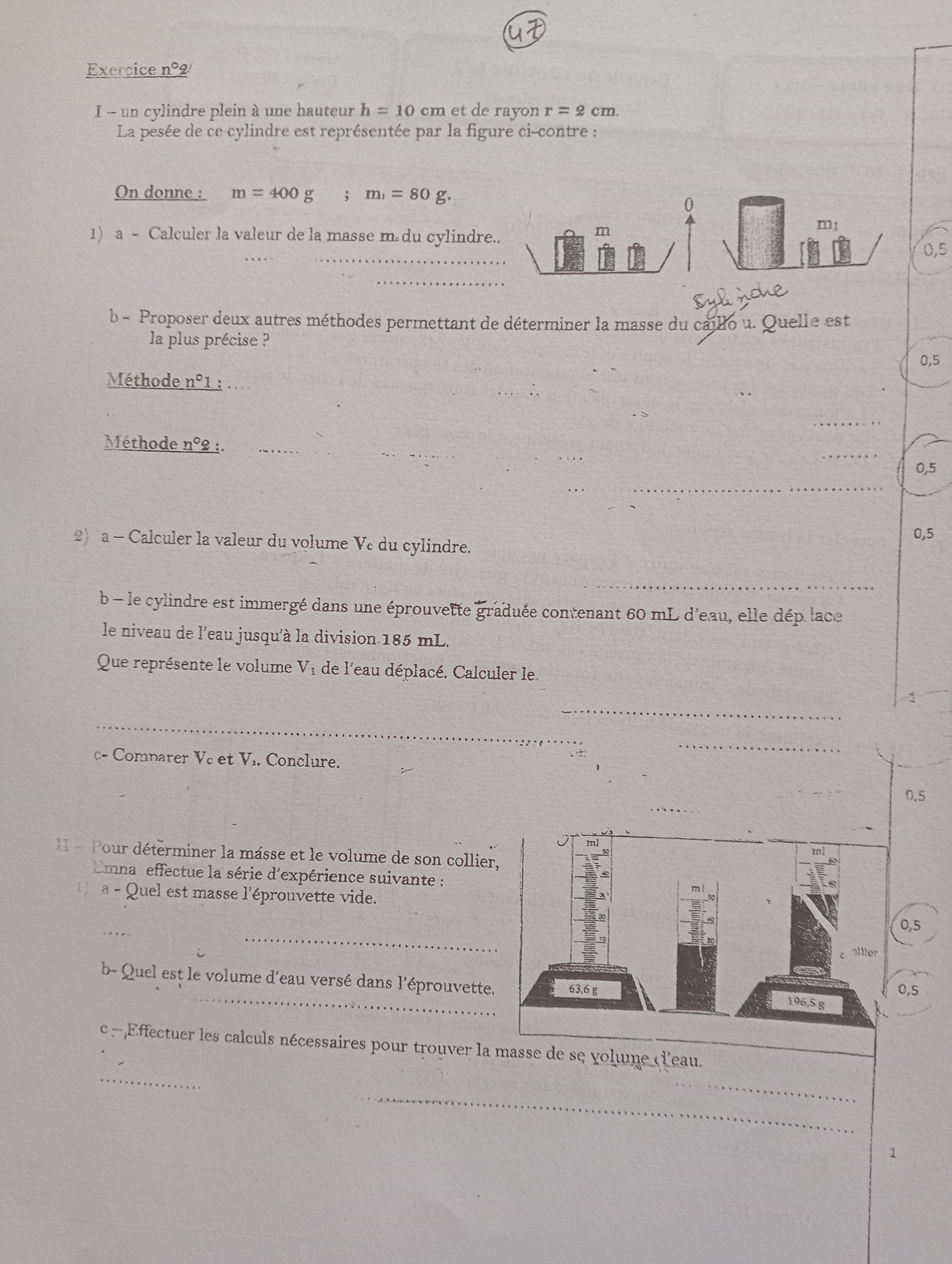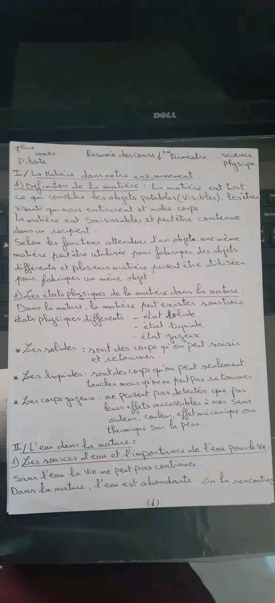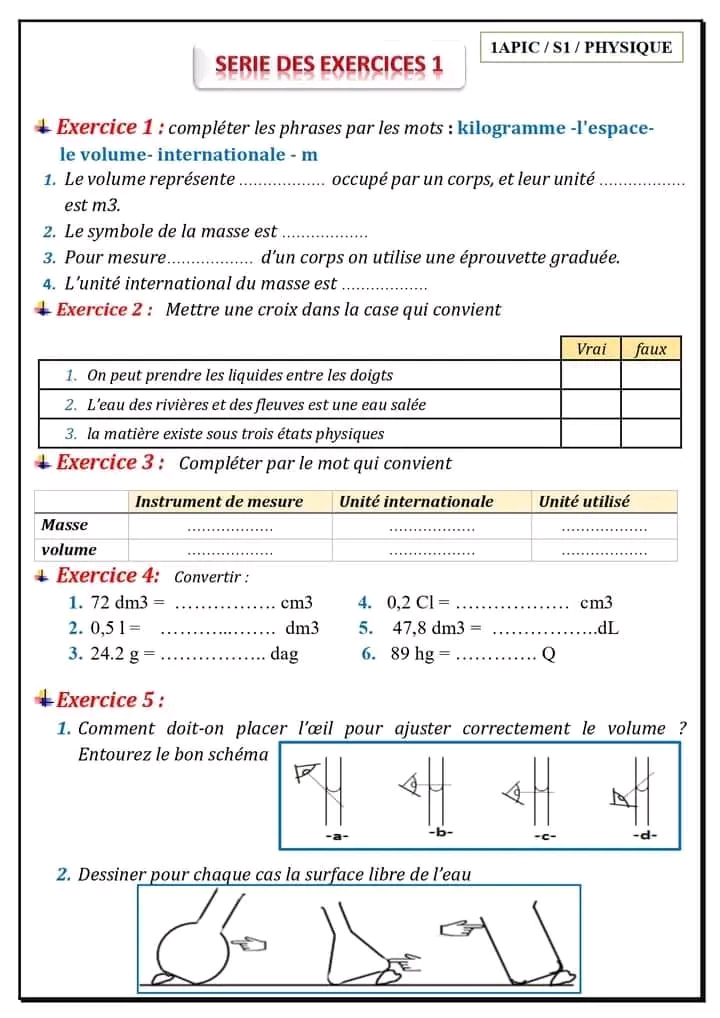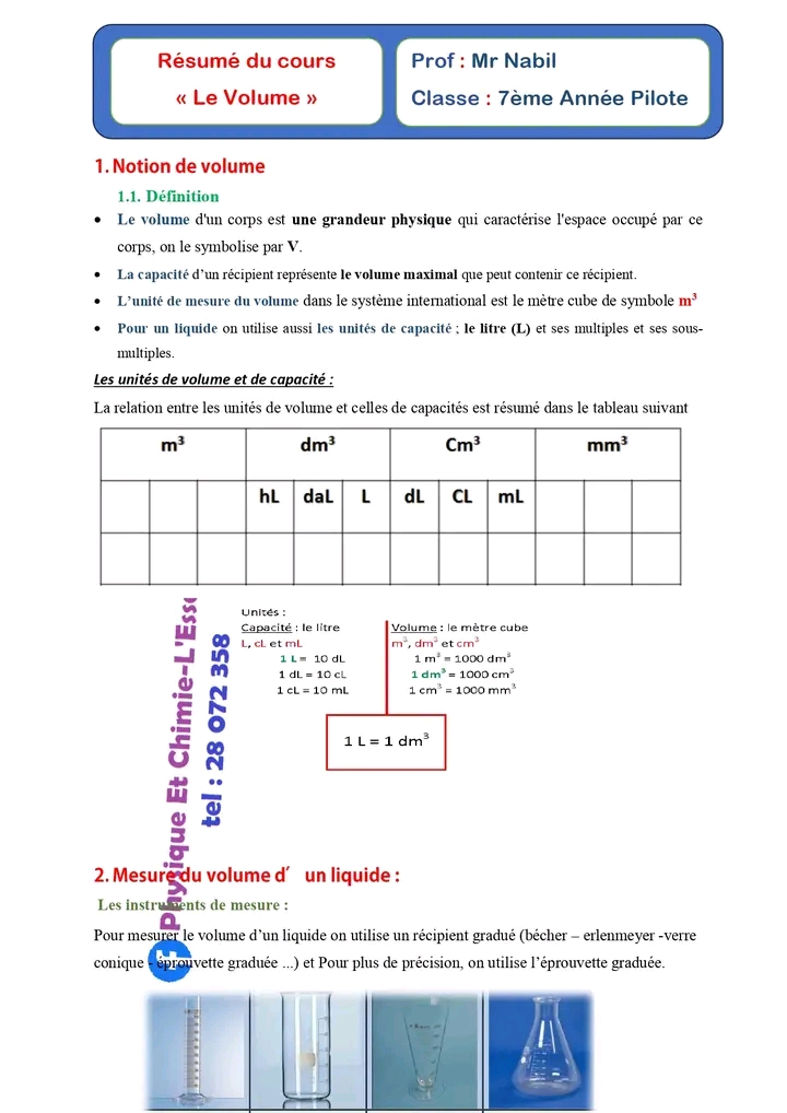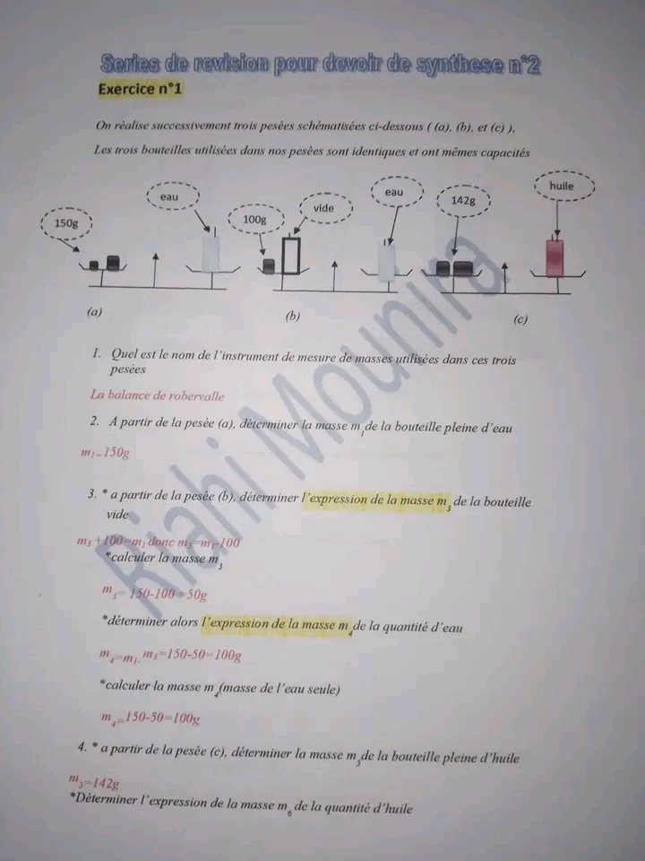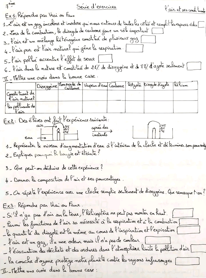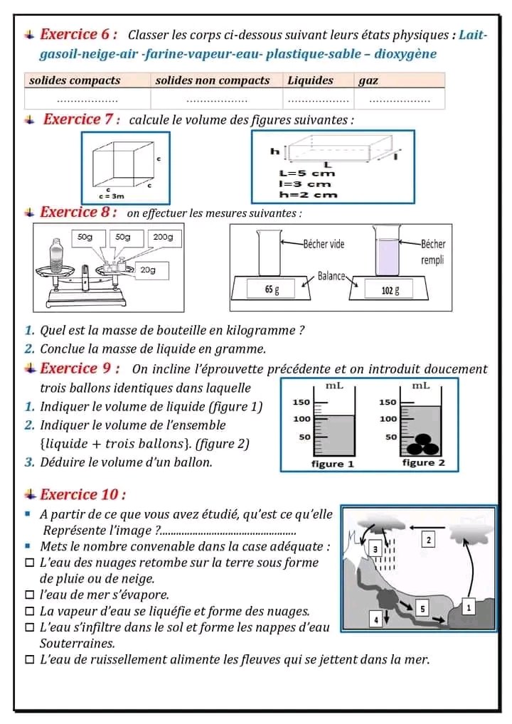 Devoir de synthèse n 3 sciences physiques 7ème année pilote