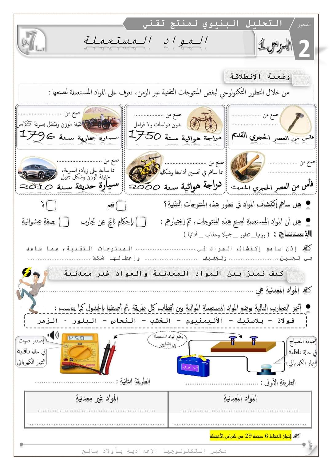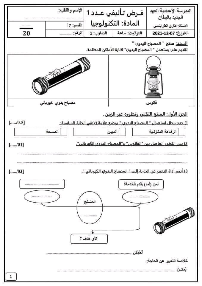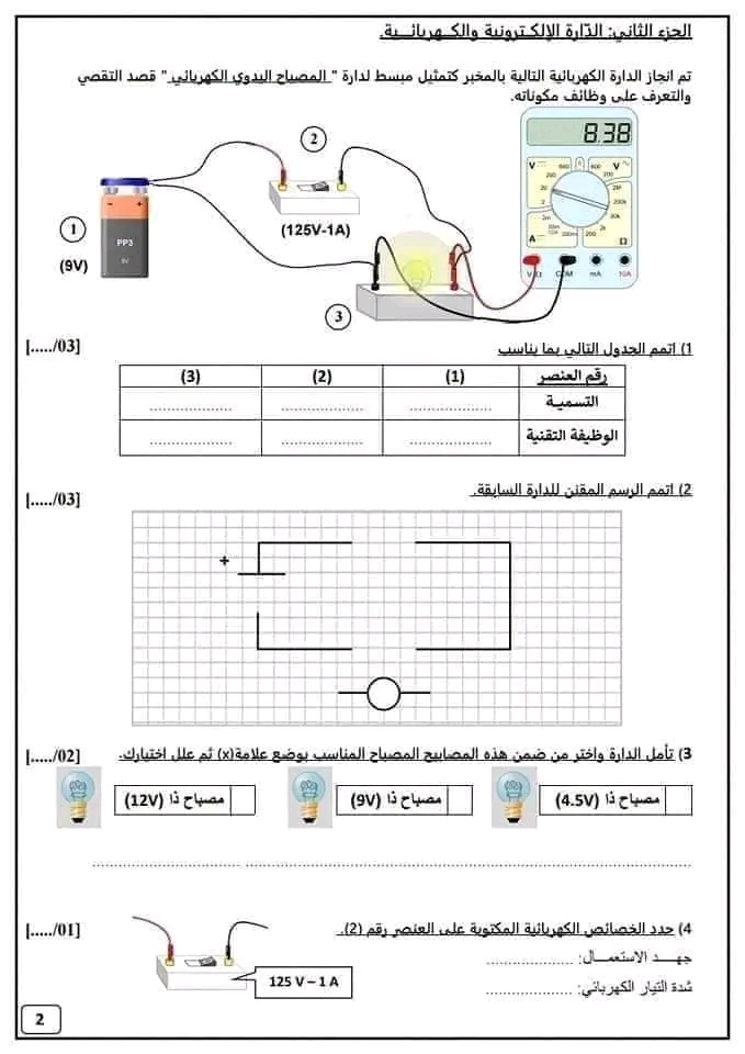 اختبار كتابي عدد 2 في مادة التربية التكنولوجية بالاصلاح