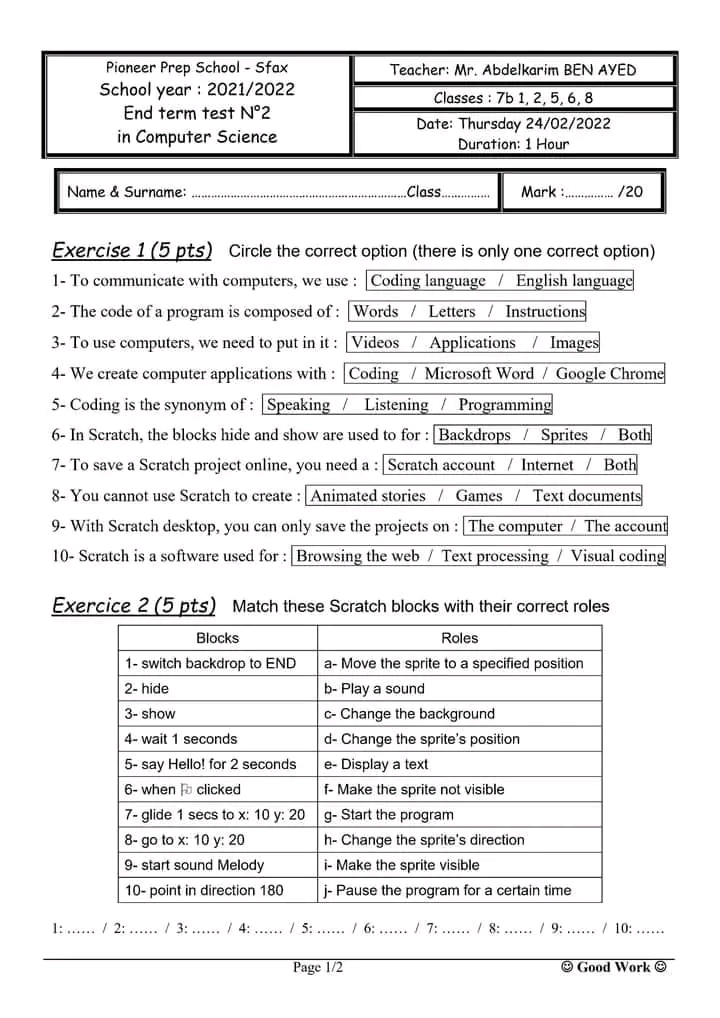 devoir de synthese N2 Informatique avec corrige