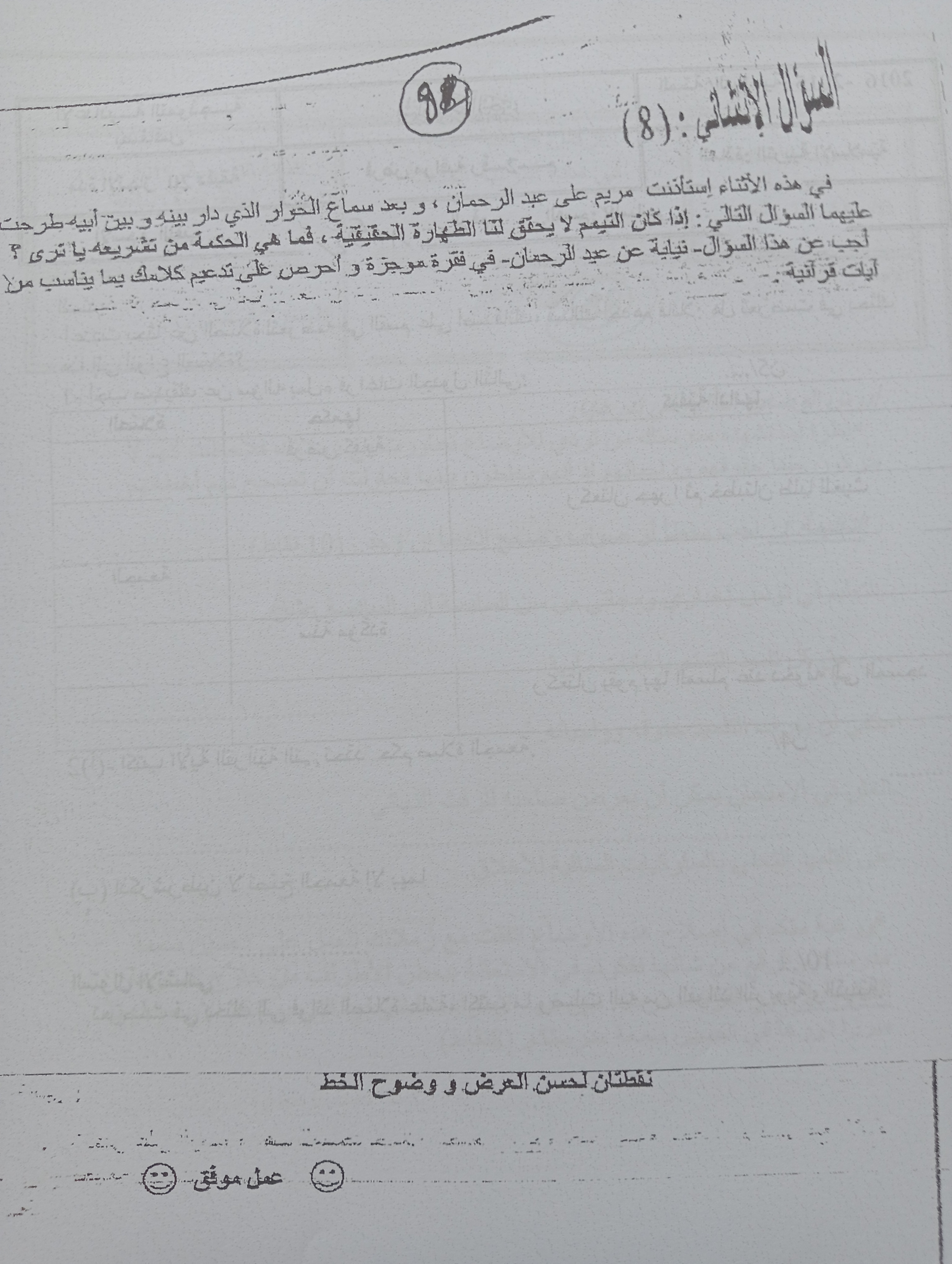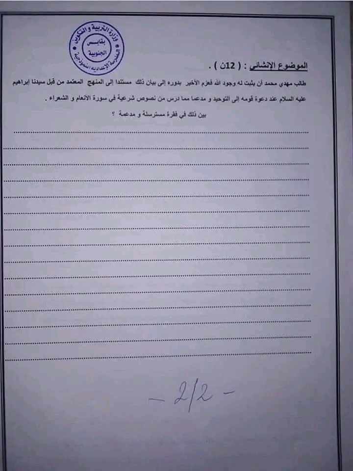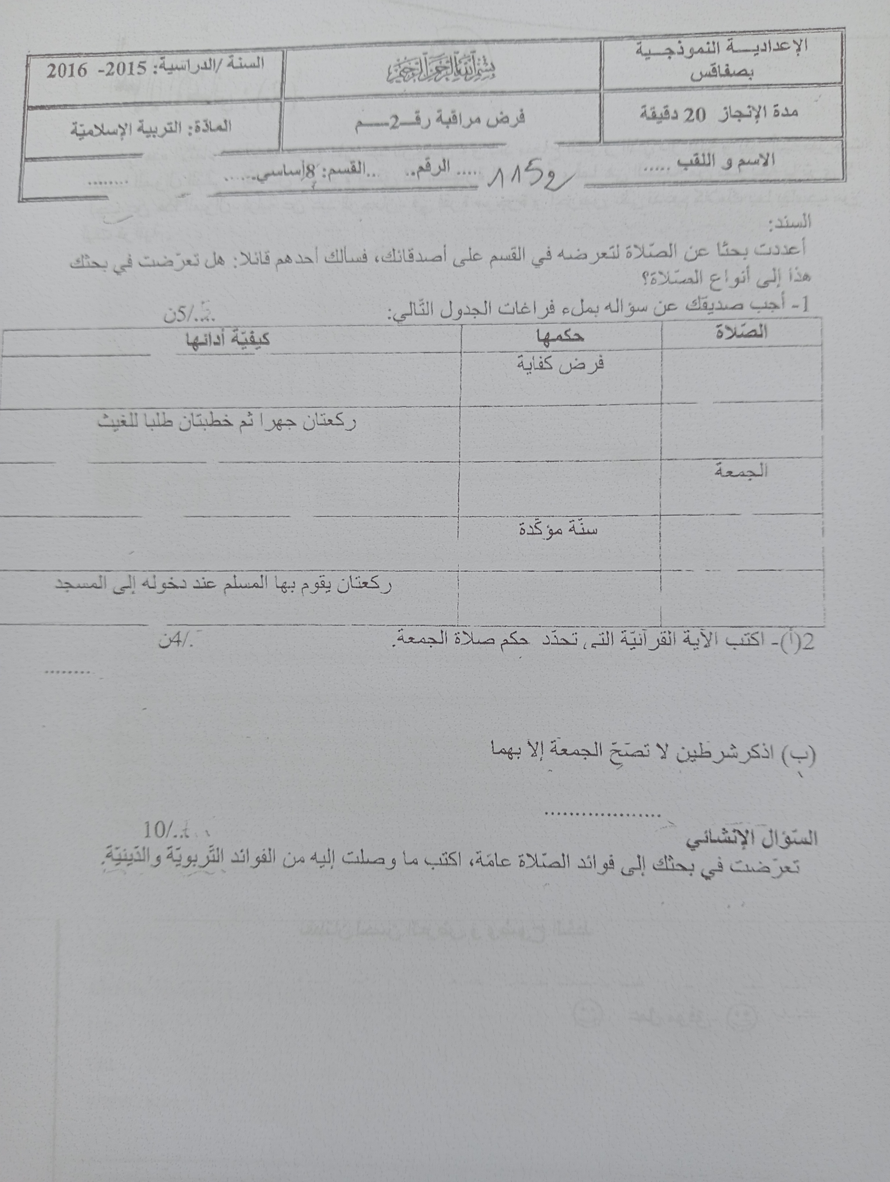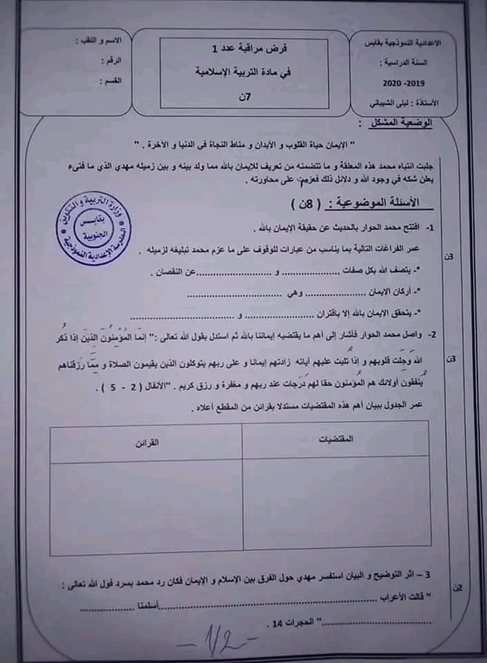 فرض مراقبة في مادة التربية الاسلامية