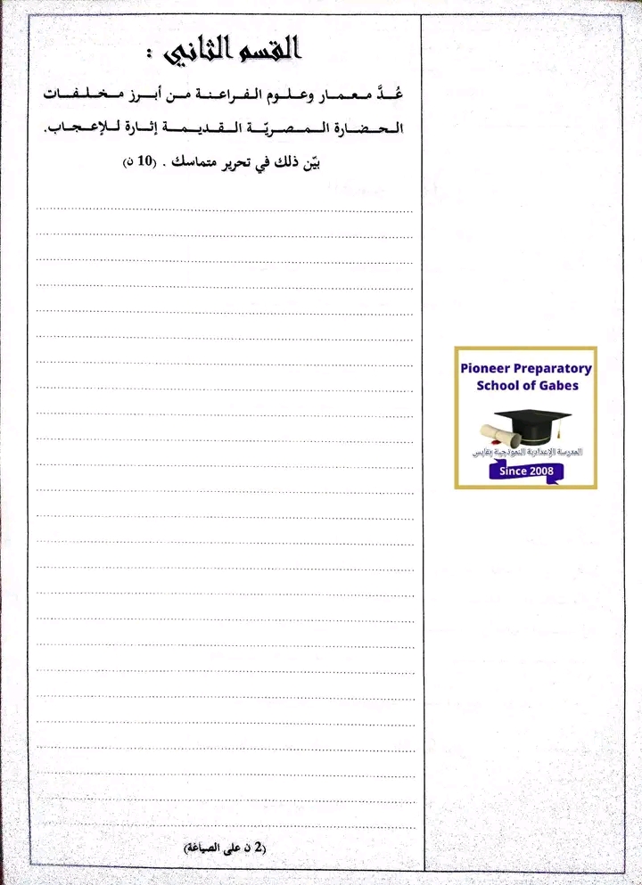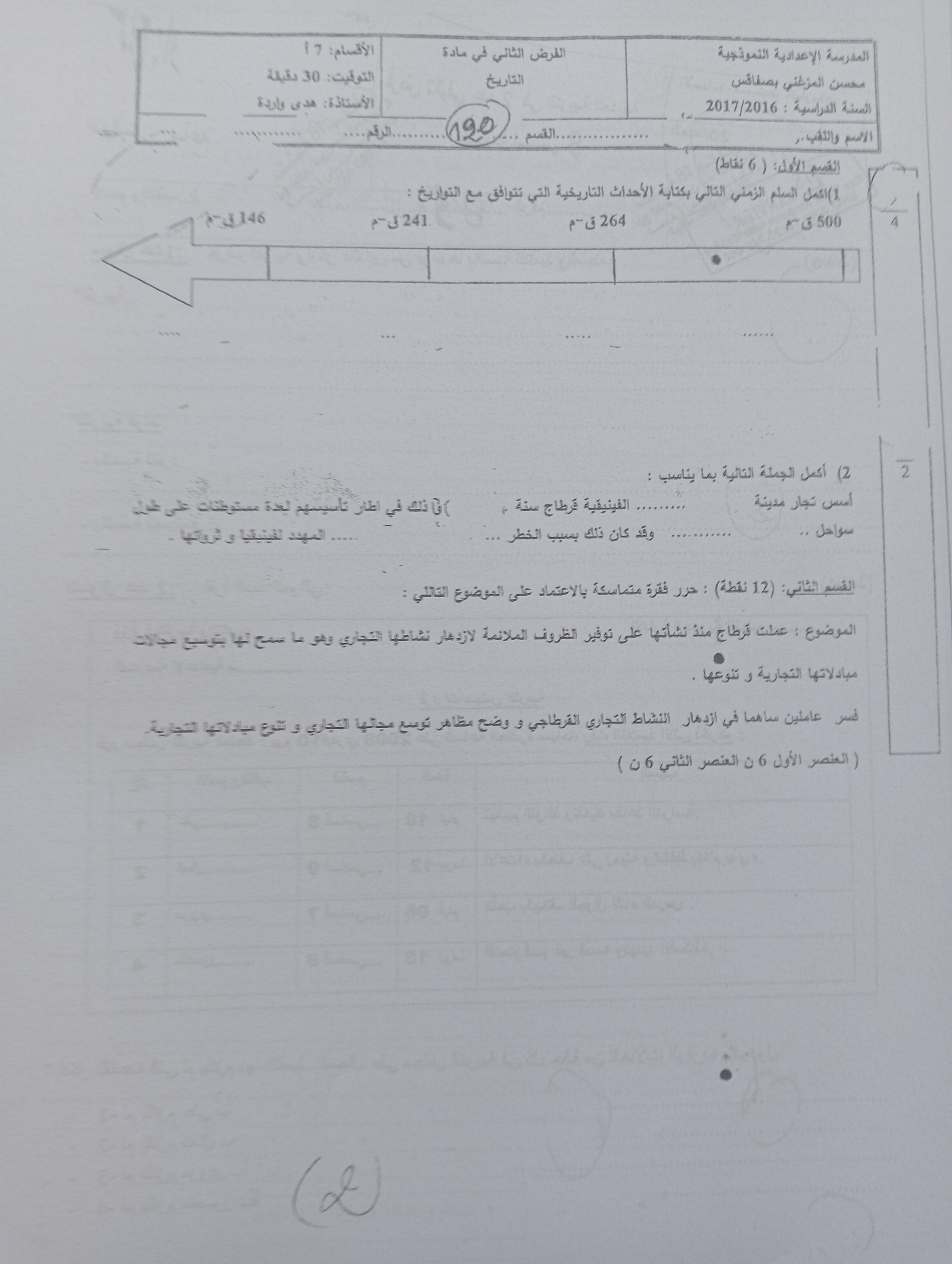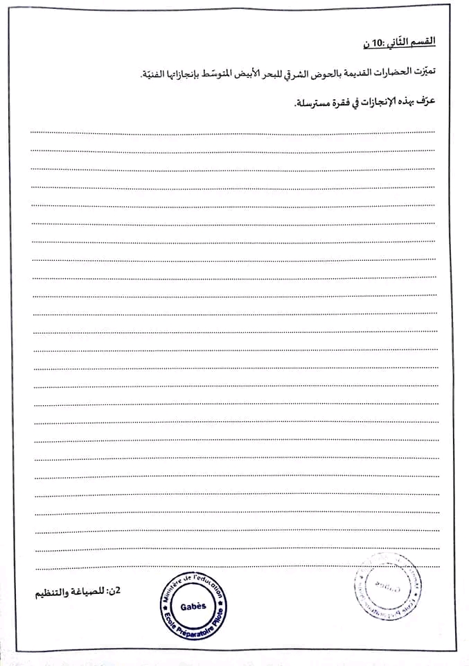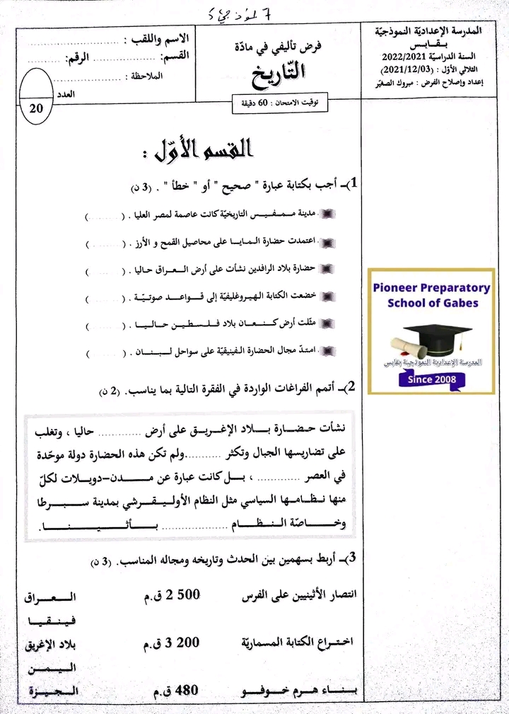 فروض تأليفية عدد 1 ، في التاريخ للسنوات 7 .