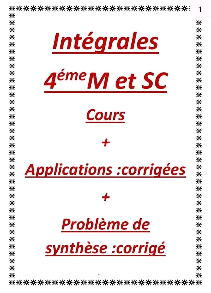 Intégrale : cours + application corrigés ✅🤛
