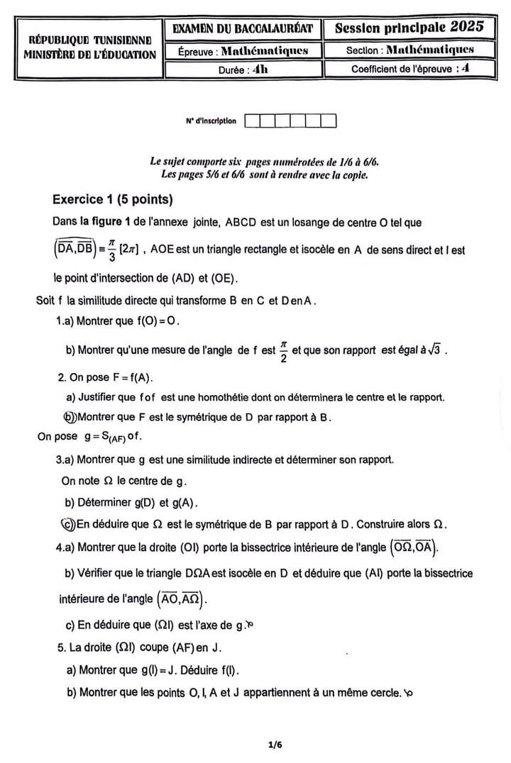 امتحان الرياضيات لشعبة الرياضيات - الدورة الرئيسية للبكالوريا 2025