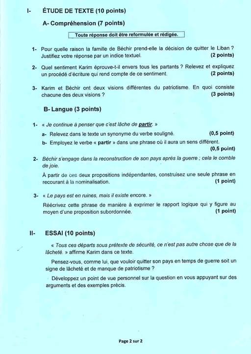Devoir controle 2 en anglais - Pilote Sfax - toute les sections+Correction