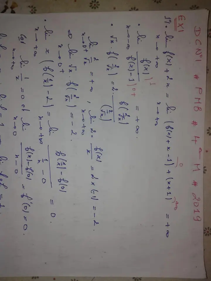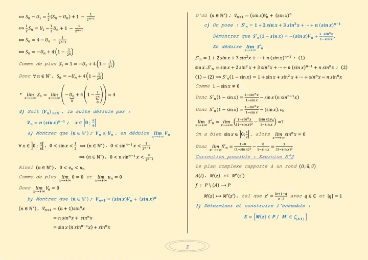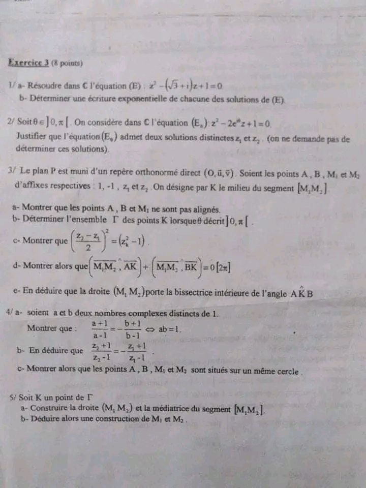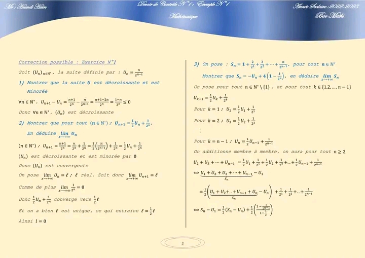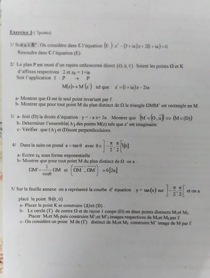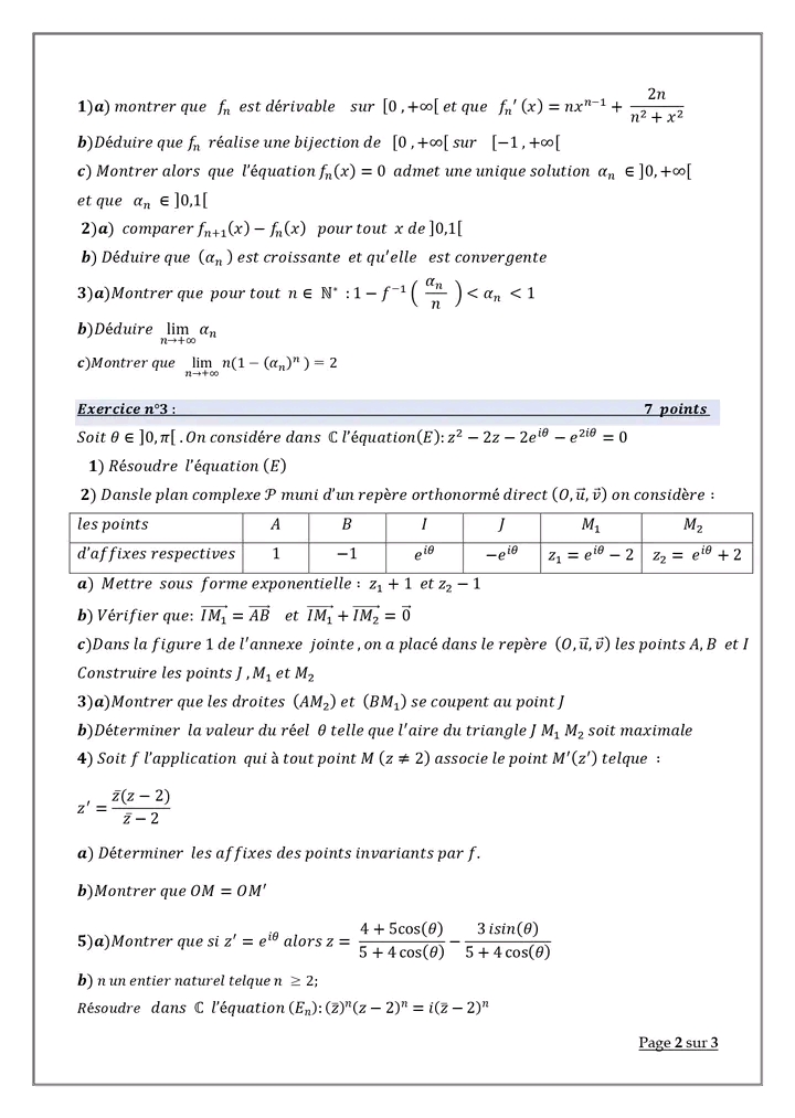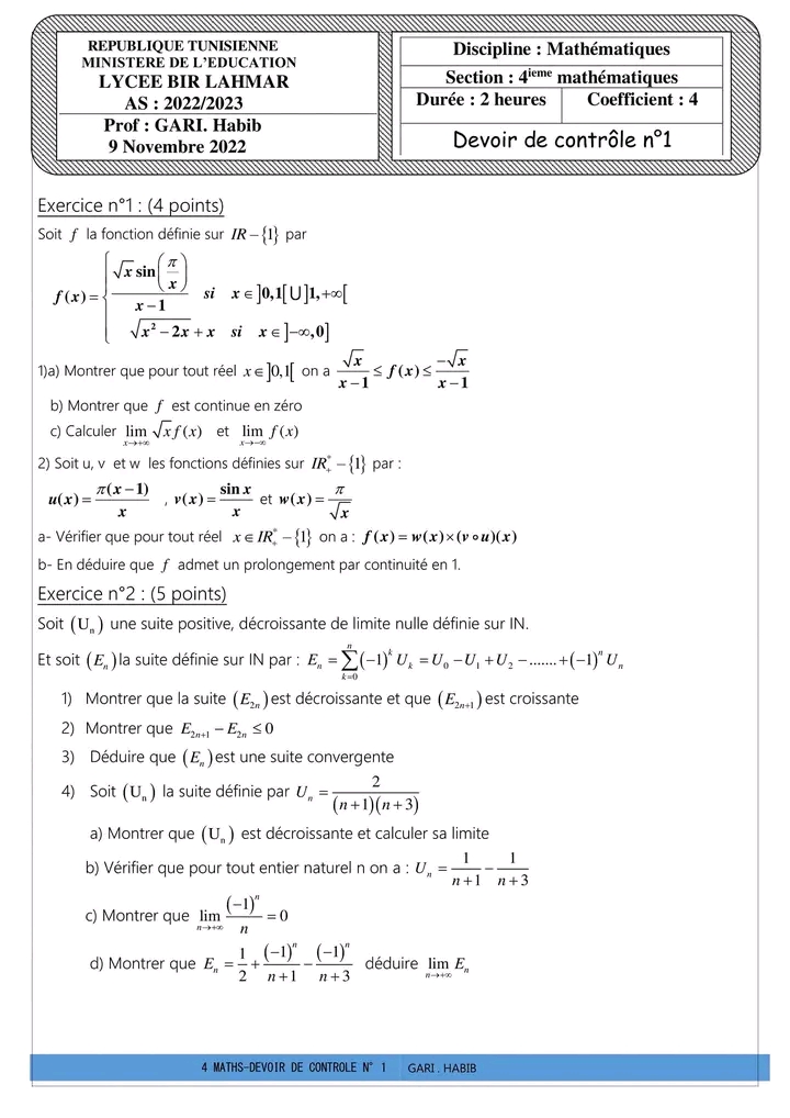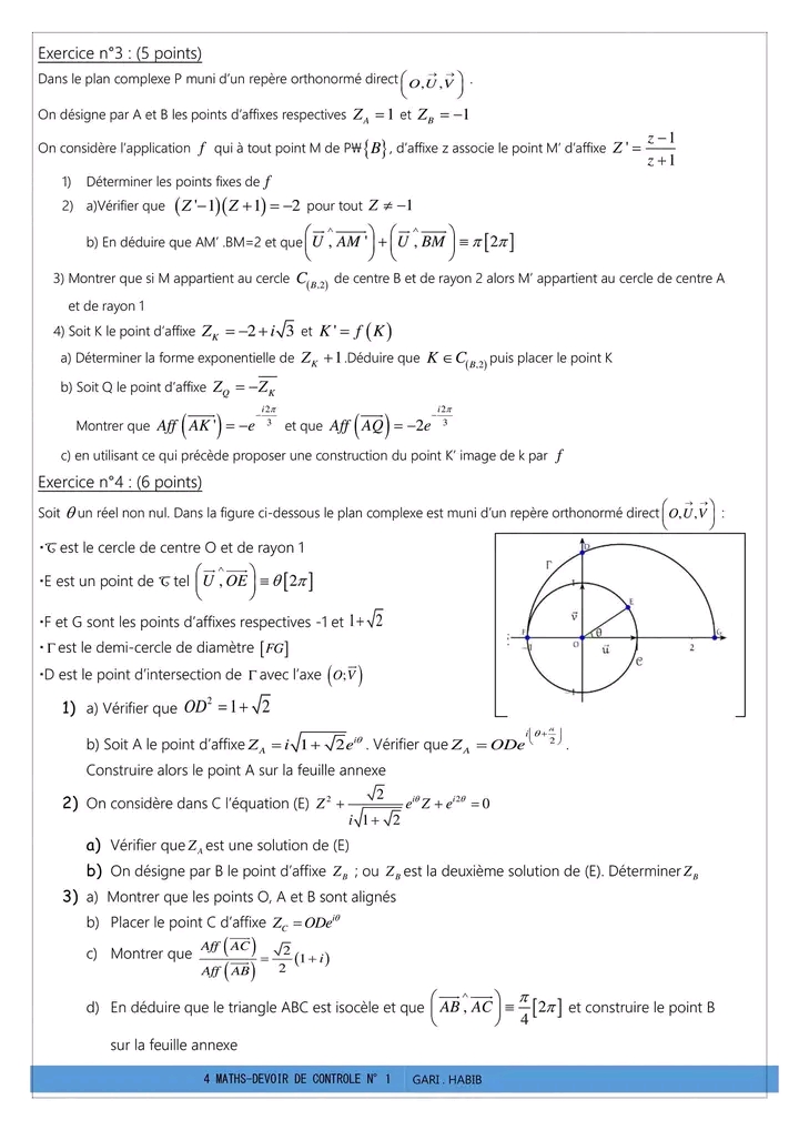 Deux devoirs.de contrôle nr 1 corrigés bac math .. lycée pilote menzah8