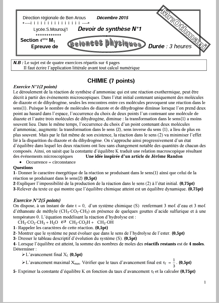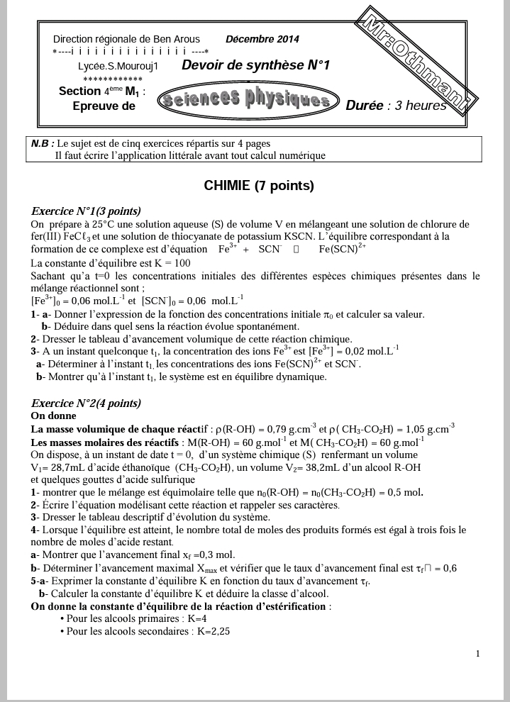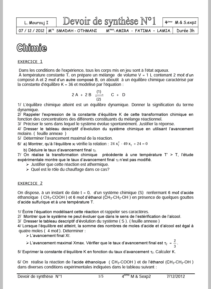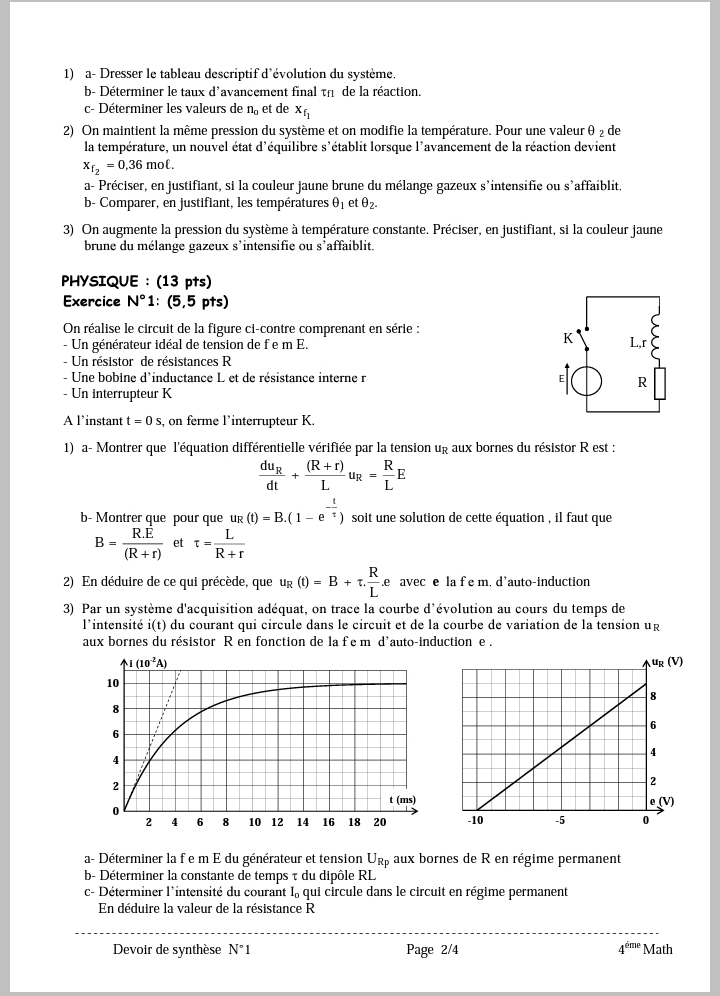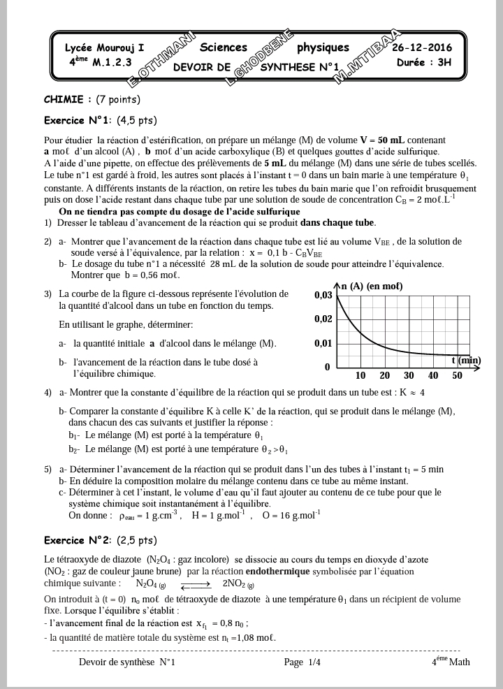 DEVOIR A LA MAISON Corrigé 1ERE TRIMESTRE 4Math