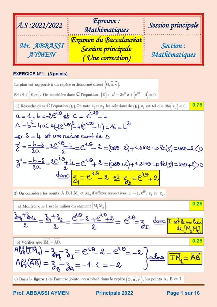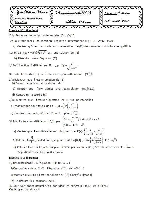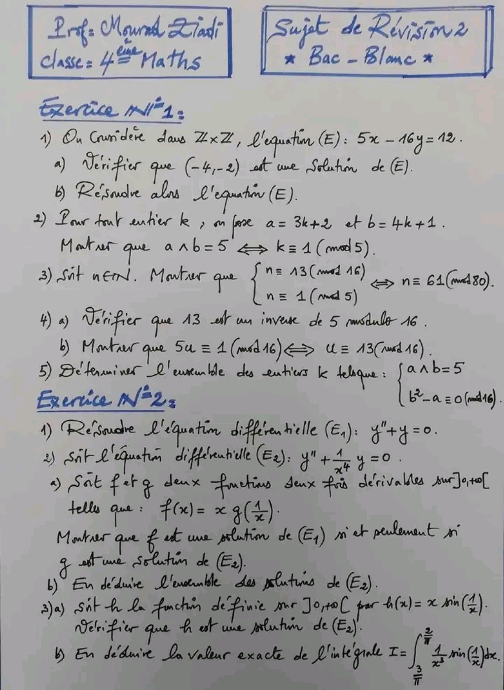 امتحان الرياضيات لشعبة الرياضيات - الدورة الرئيسية للبكالوريا 2025