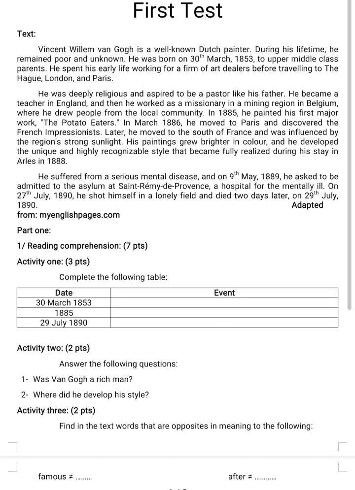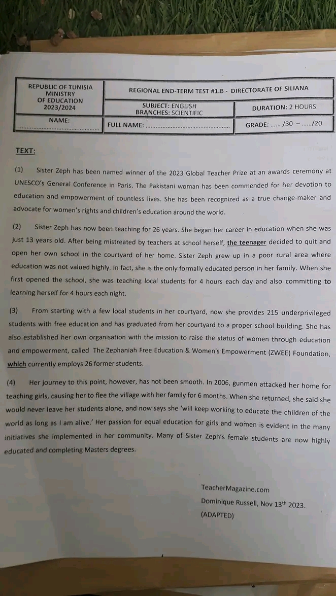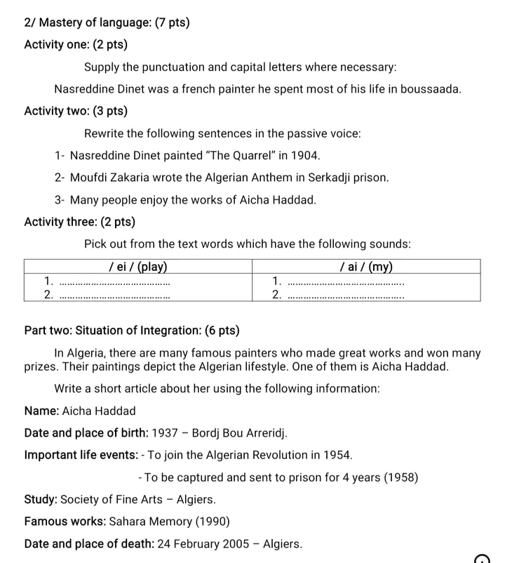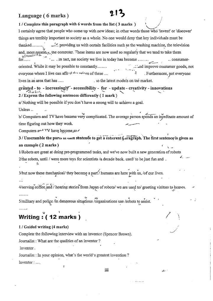 Devoir controle 2 en anglais - Pilote Sfax - toute les sections+Correction