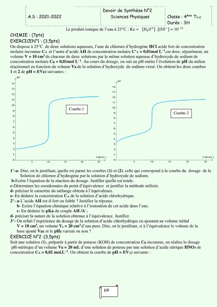 Devoirs de synthèse Physique trimestre 2 ( 2 )