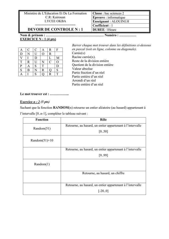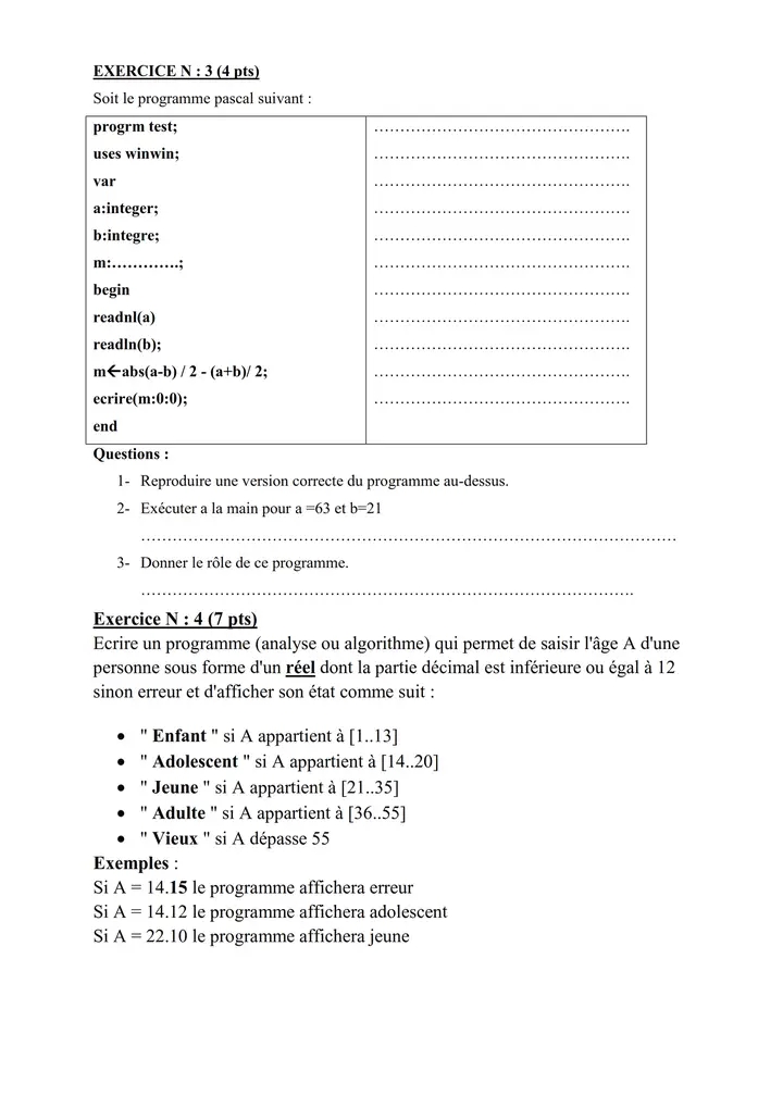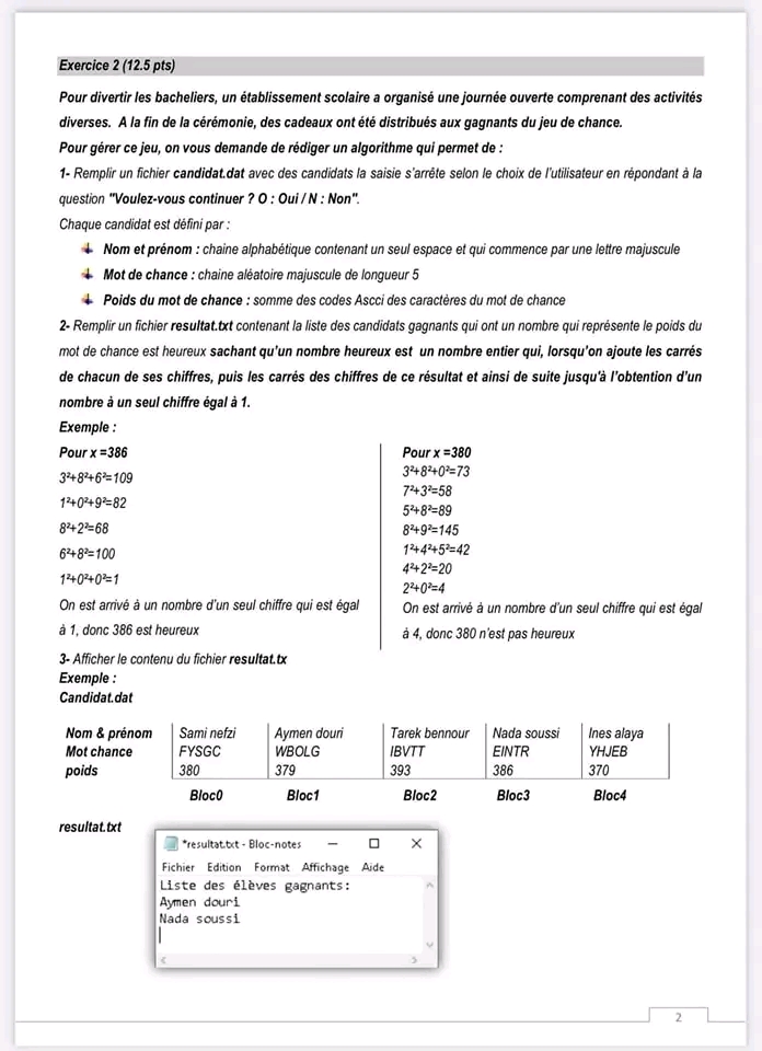 Section : Informatique,devoir algorithmique théorique avec correction🔥