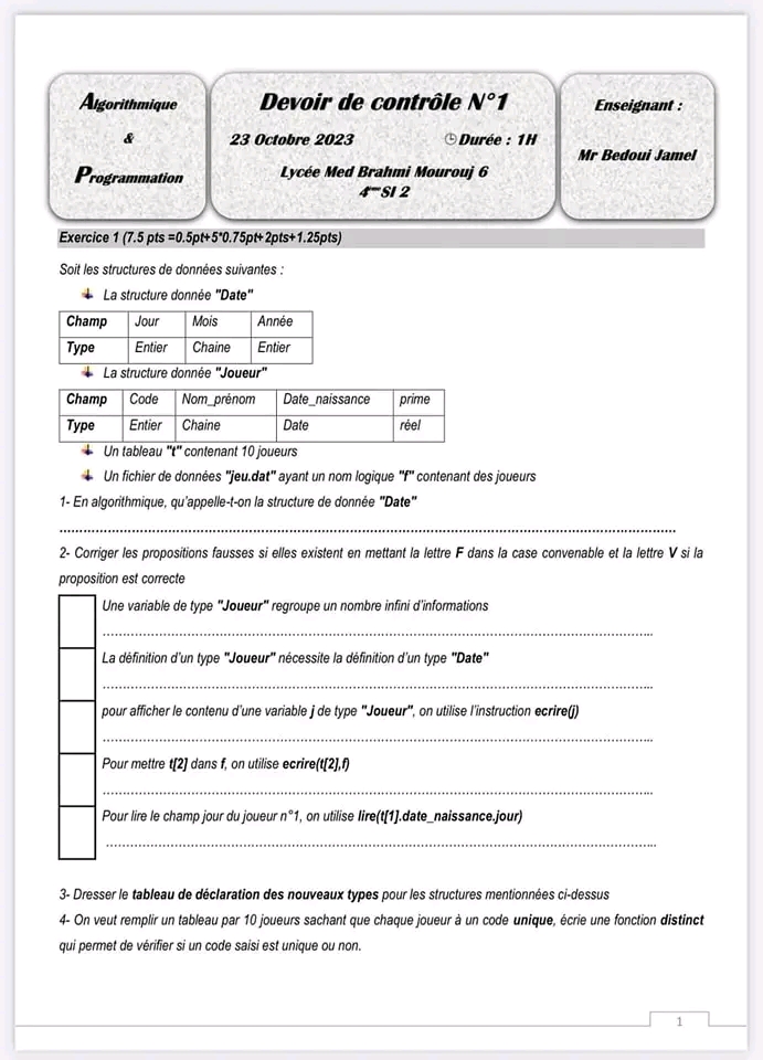 Matière : algorithmique