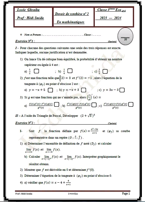 Sujet corrigé (proposé pour 3ème éco aujourd'hui )