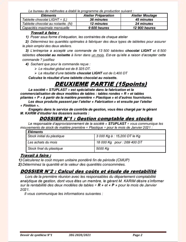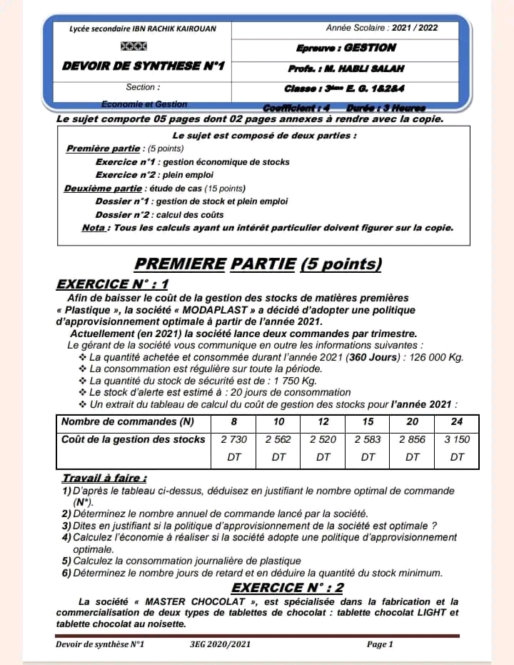 Devoirs de synthèse Gestion trimestre 1 ( 3 )